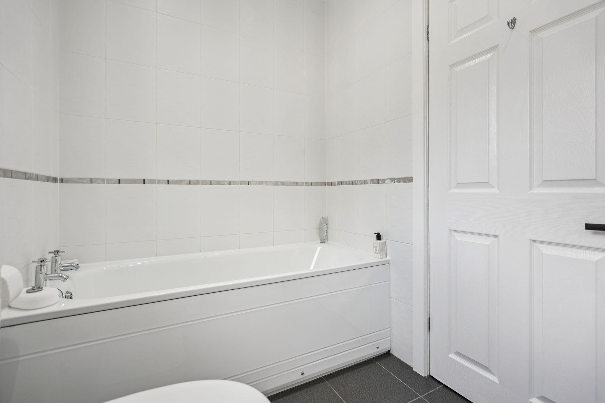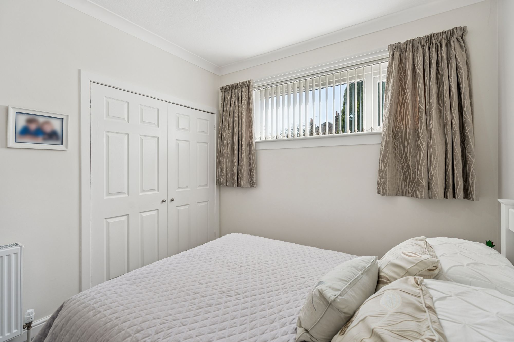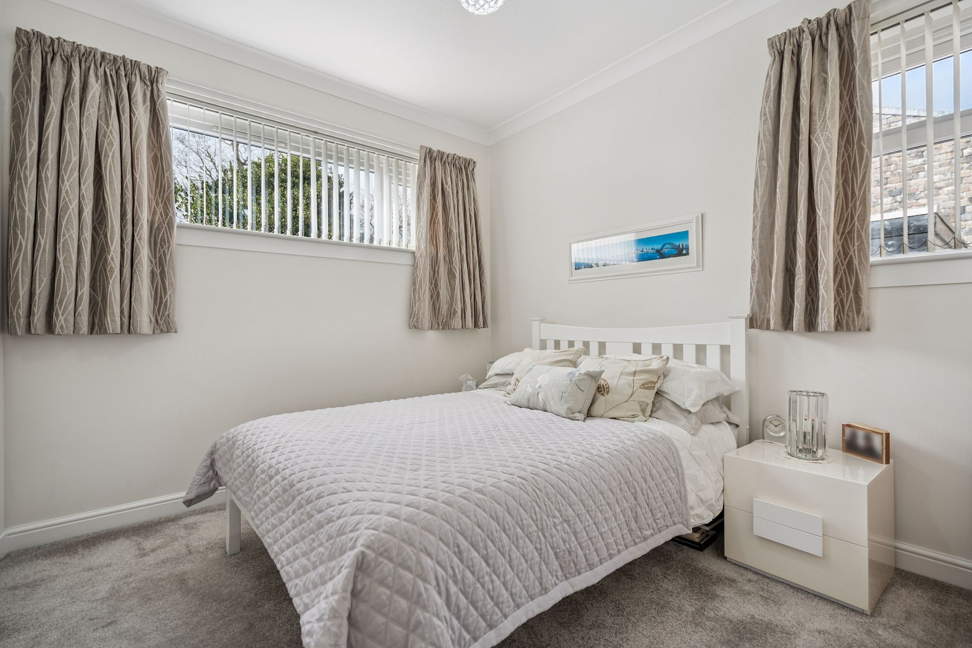 The property offers two well-proportioned bedrooms, both presented in neutral tones, along with a modern bathroom completing the accommodation.