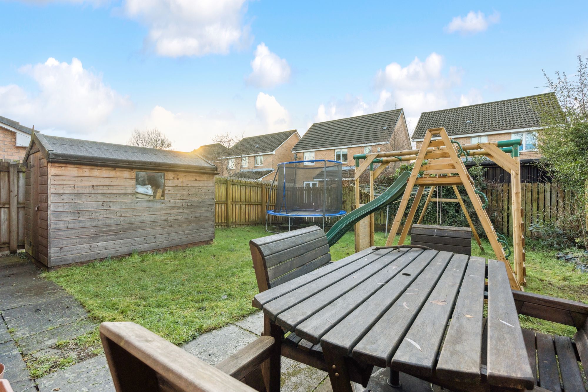 Externally, the property enjoys garden areas to both the front and rear, providing private outdoor space for relaxation, play or gardening. The boundaries are formed by timber fencing, enhancing privacy and definition. A driveway to the front of the property provides off-street parking, adding to the overall convenience and appeal of this well-balanced family home.