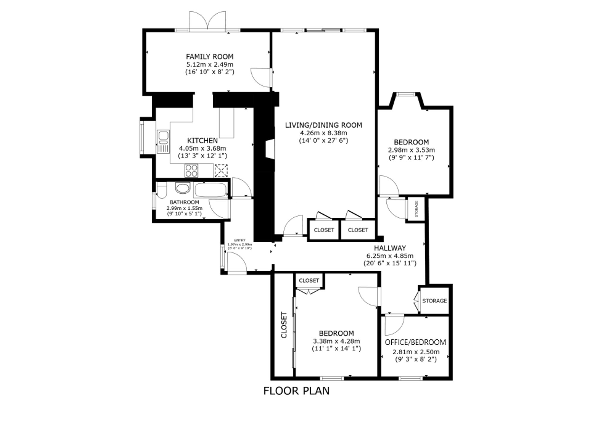 The apartment features two generously sized double bedrooms and a third versatile bedroom/study. Completing the accommodation is a well-appointed family bathroom and excellent storage throughout.
