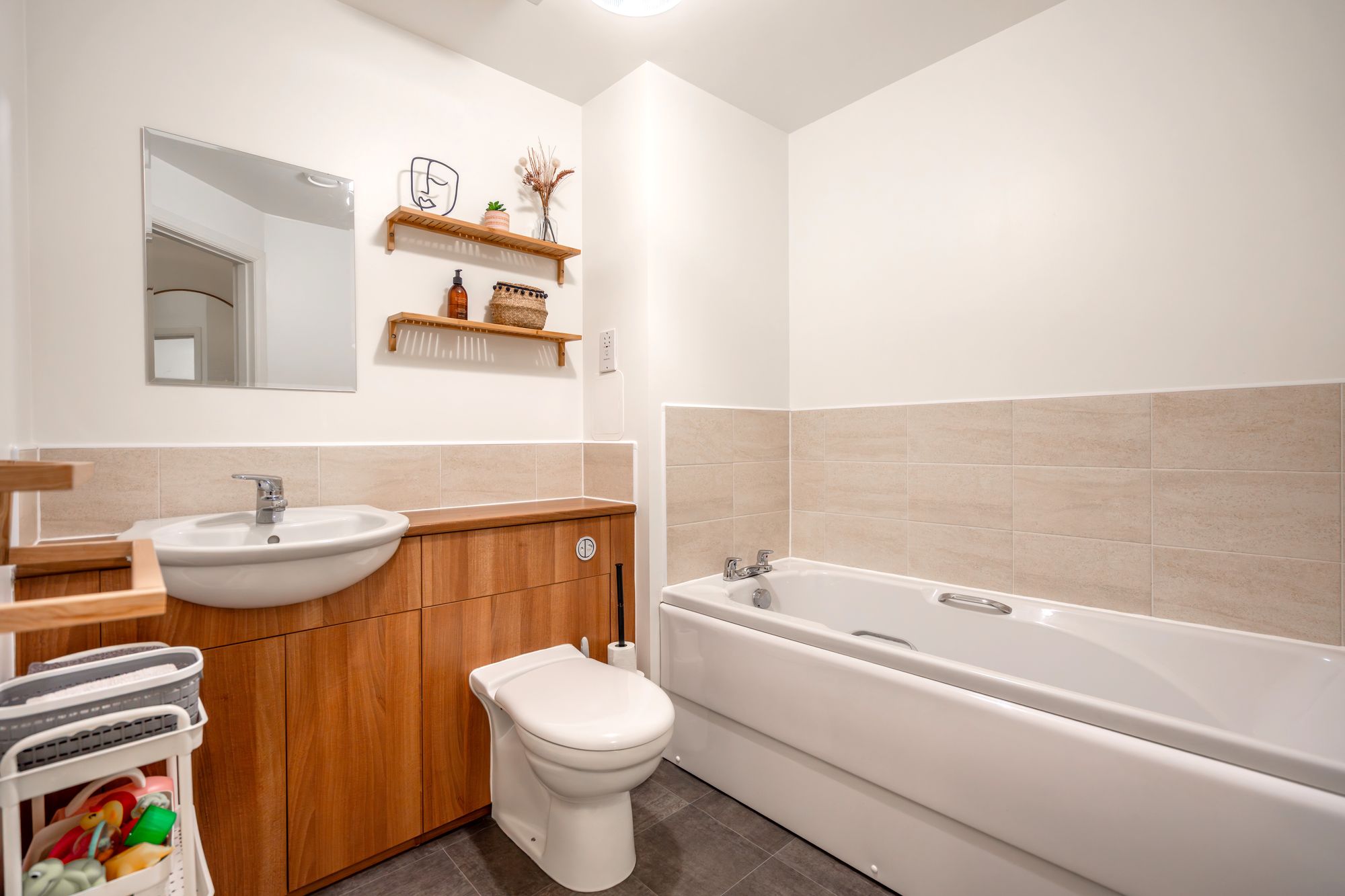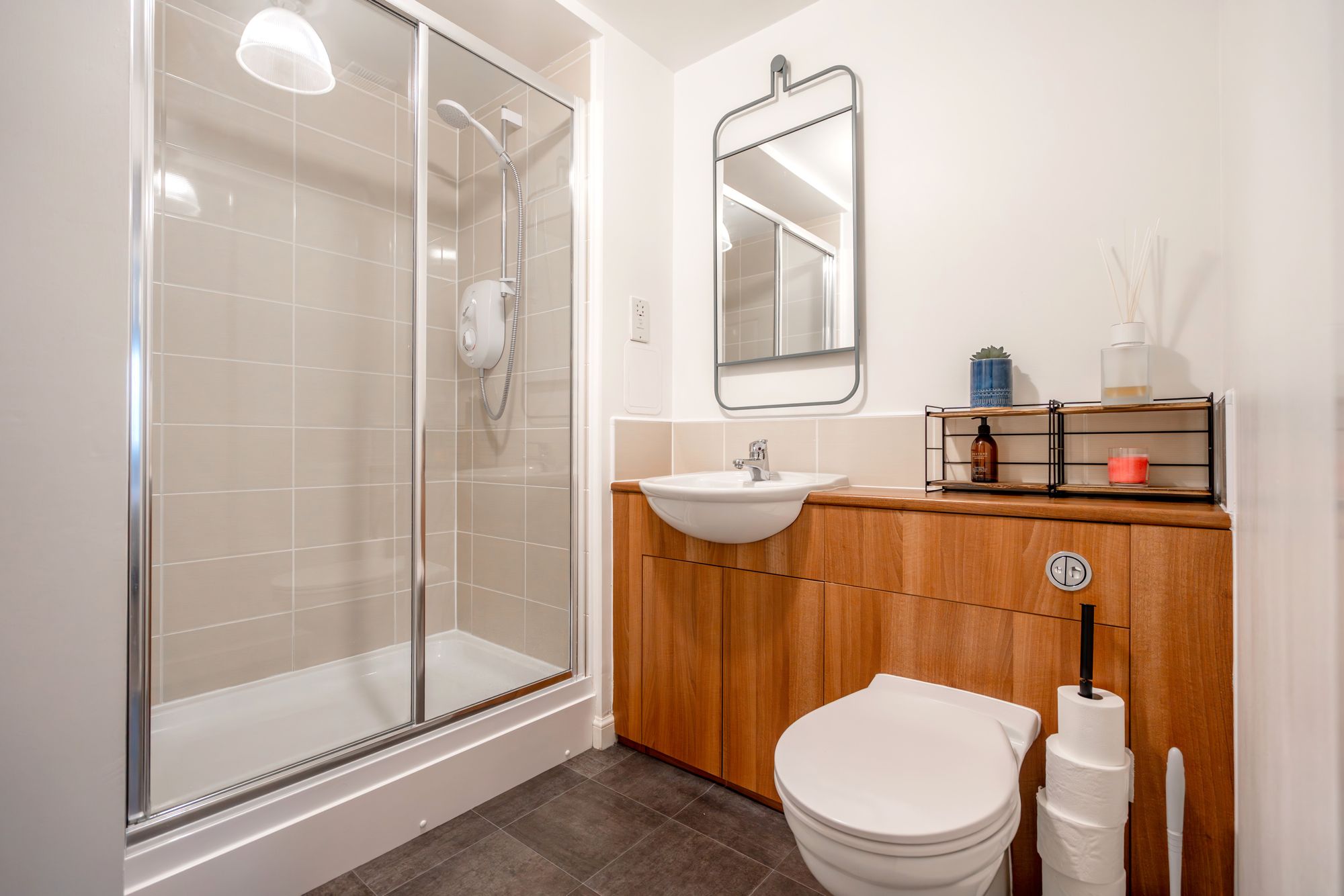 Both bedrooms are well proportioned, with the principal bedroom offering the convenience of an ensuite shower room, while the main bathroom provides a three-piece suite to serve the rest of the accommodation. The overall layout is well-balanced, making the property suitable for a range of buyers including first-time purchasers, downsizers, or buy-to-let investors.