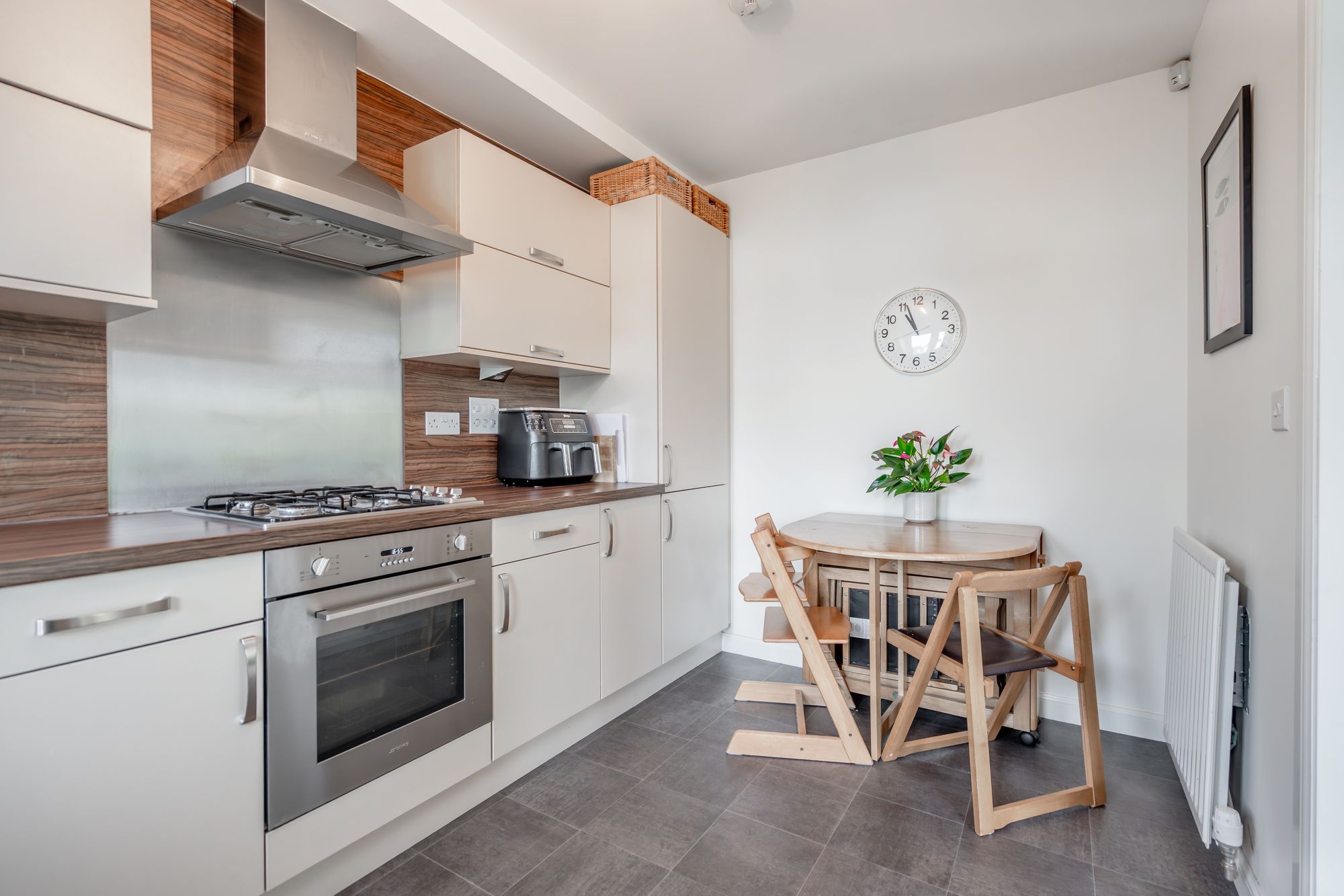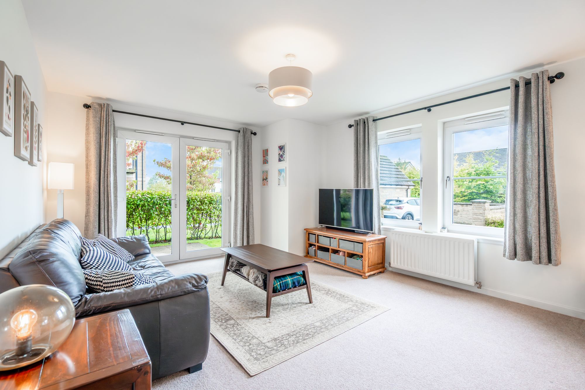 The property sits within a modern three-storey block and enjoys a quiet, established residential setting. Internally, the flat has been designed with practical living in mind, featuring a spacious and bright lounge with direct access via patio doors to a private section of garden ground—perfect for enjoying outdoor space in a secure and peaceful environment. The adjacent kitchen is well laid out with ample storage and worktop space, ideal for everyday cooking and entertaining.
