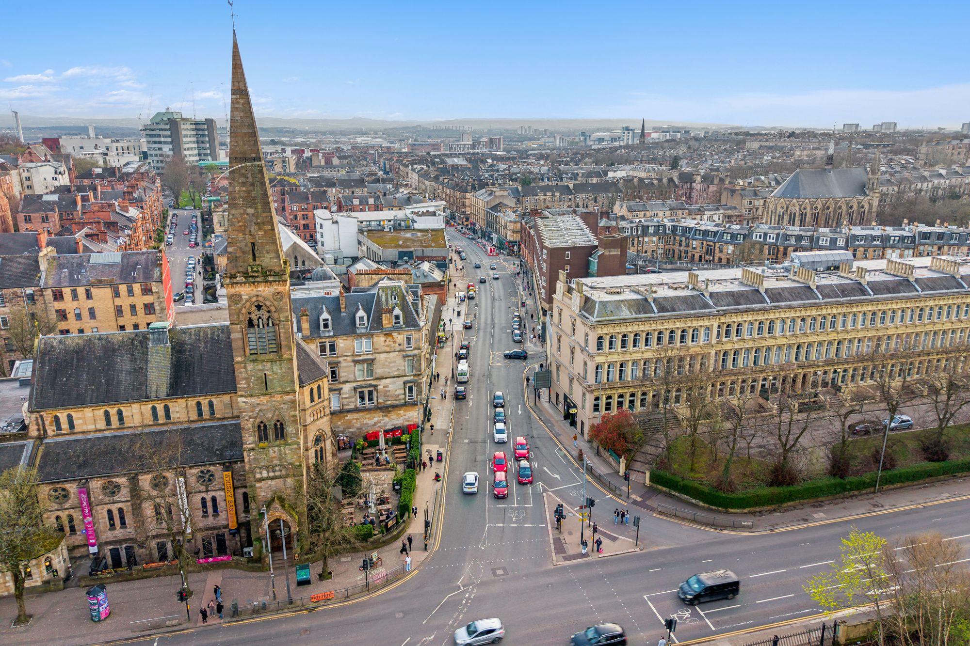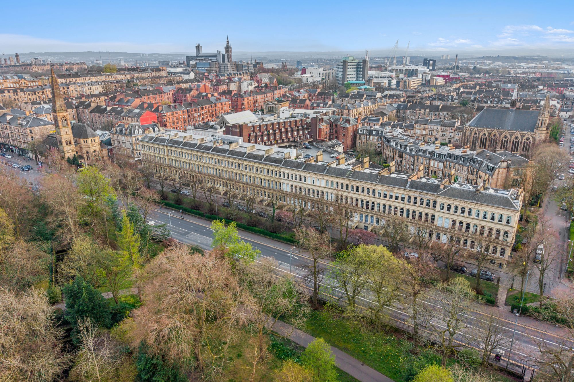 Designed in the Venetian Terrace Style by J T Rochead, Grosvenor Terrace was completed in 1858 and has since been regarded as one of the area's most iconic buildings. The address runs parallel with Great Western Road, facing towards the Botanic Gardens, into which access can be gained within minutes. Grosvenor Terrace joins with Byres Road and therefore the address offers extremely easy access to a fabulous collection of amenities. The area is filled with popular bars, restaurants and coffee shops, as well as a tremendous range of shops, supermarkets and boutiques.