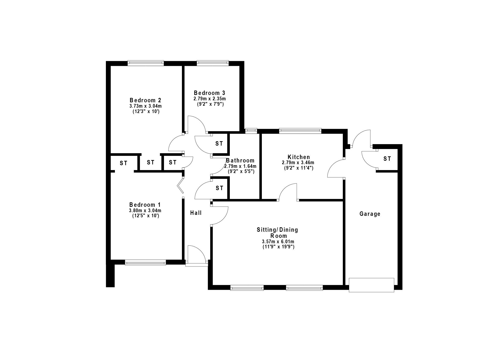 Bedroom Three 9’2” x 7’9” 2.79m x 2.36m