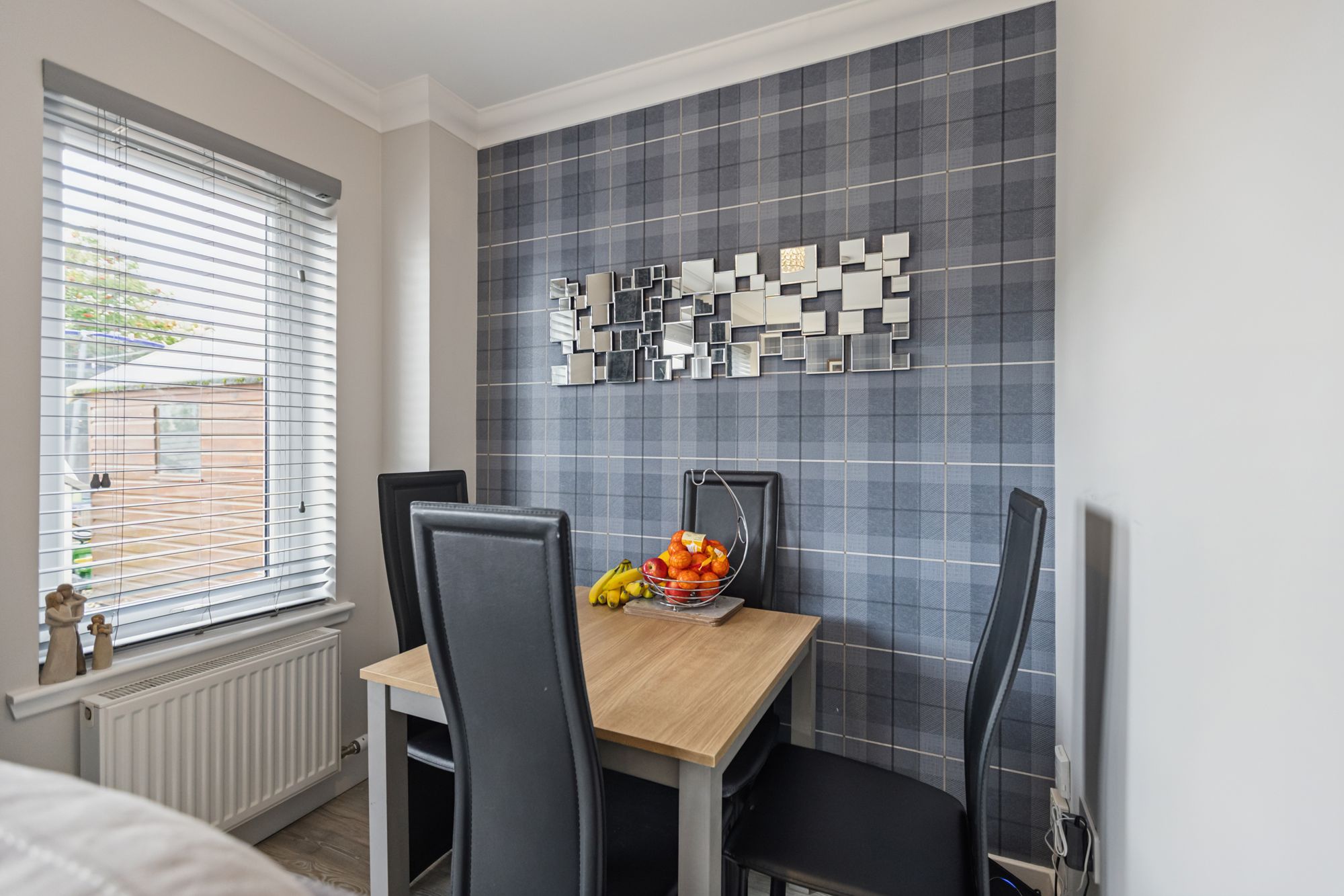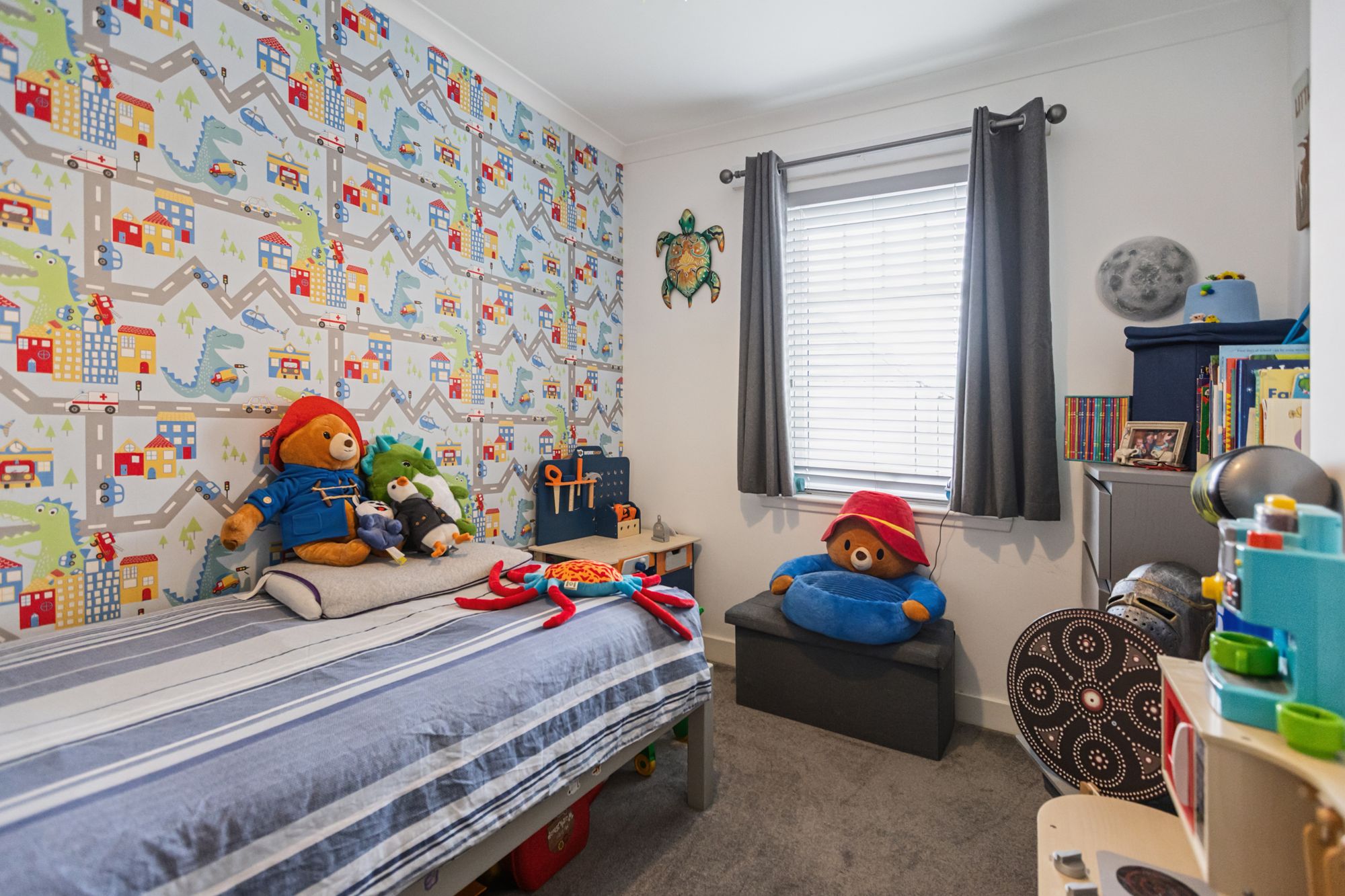 On the upper level, the landing leads to three well-proportioned bedrooms, each offering flexible space for use as sleeping quarters, a home office, or nursery, depending on your needs. The family bathroom is fitted with a three-piece suite including WC, wash hand basin, and bath with overhead shower, providing a comfortable and stylish finish.