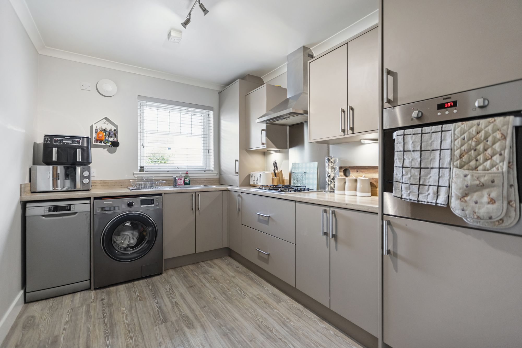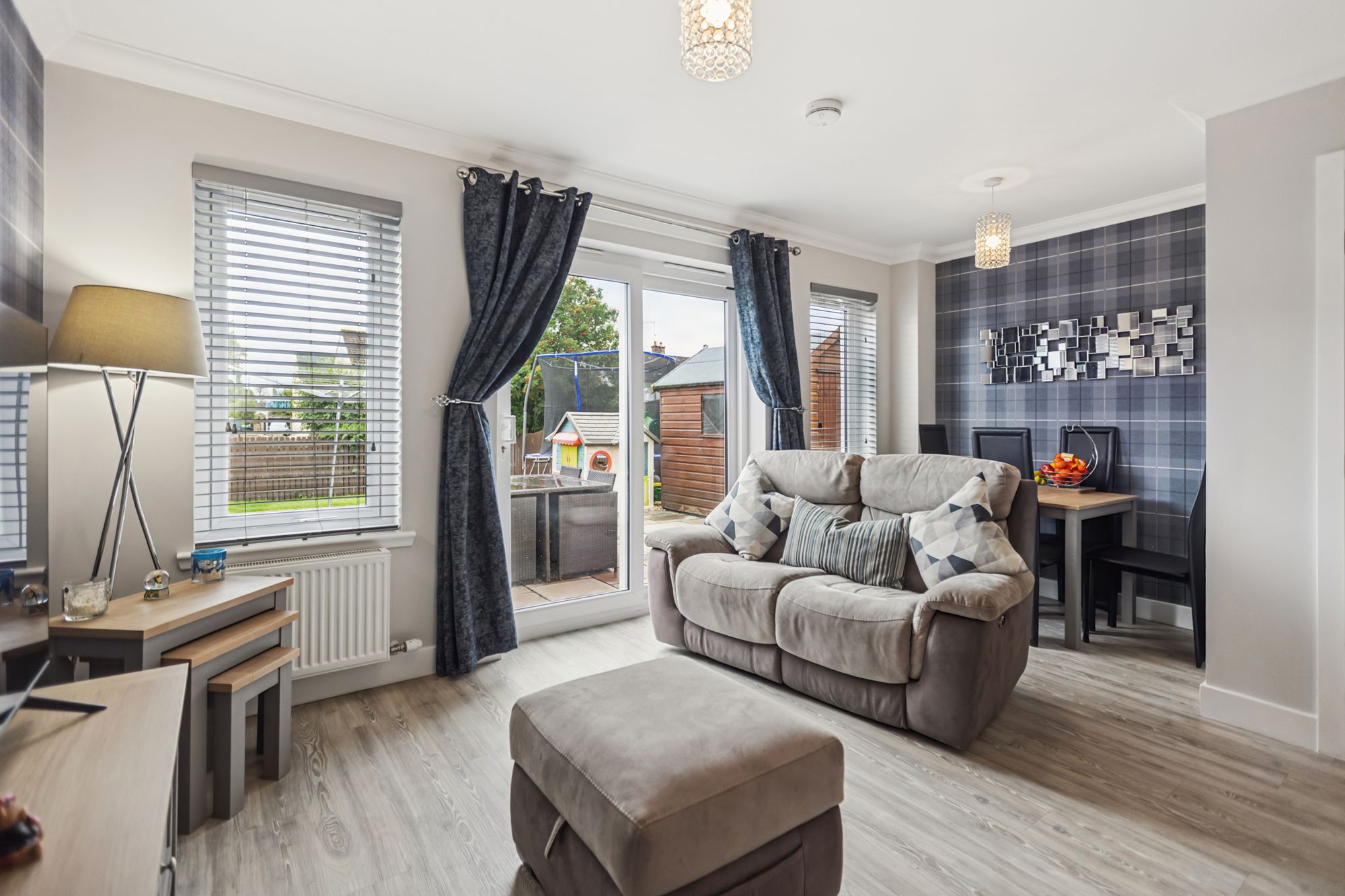 The property is thoughtfully laid out to provide practical living space. Upon entering, a welcoming hallway provides access to the main ground floor accommodation. The generous lounge, located to the front of the home, is bright and airy, offering ample space for relaxation and family gatherings. To the rear, the modern fitted kitchen overlooks the garden and offers a good range of base and wall units, making it a functional and sociable space for everyday living and entertaining. Completing the ground floor is a useful cloakroom with WC, adding convenience for guests and residents alike.