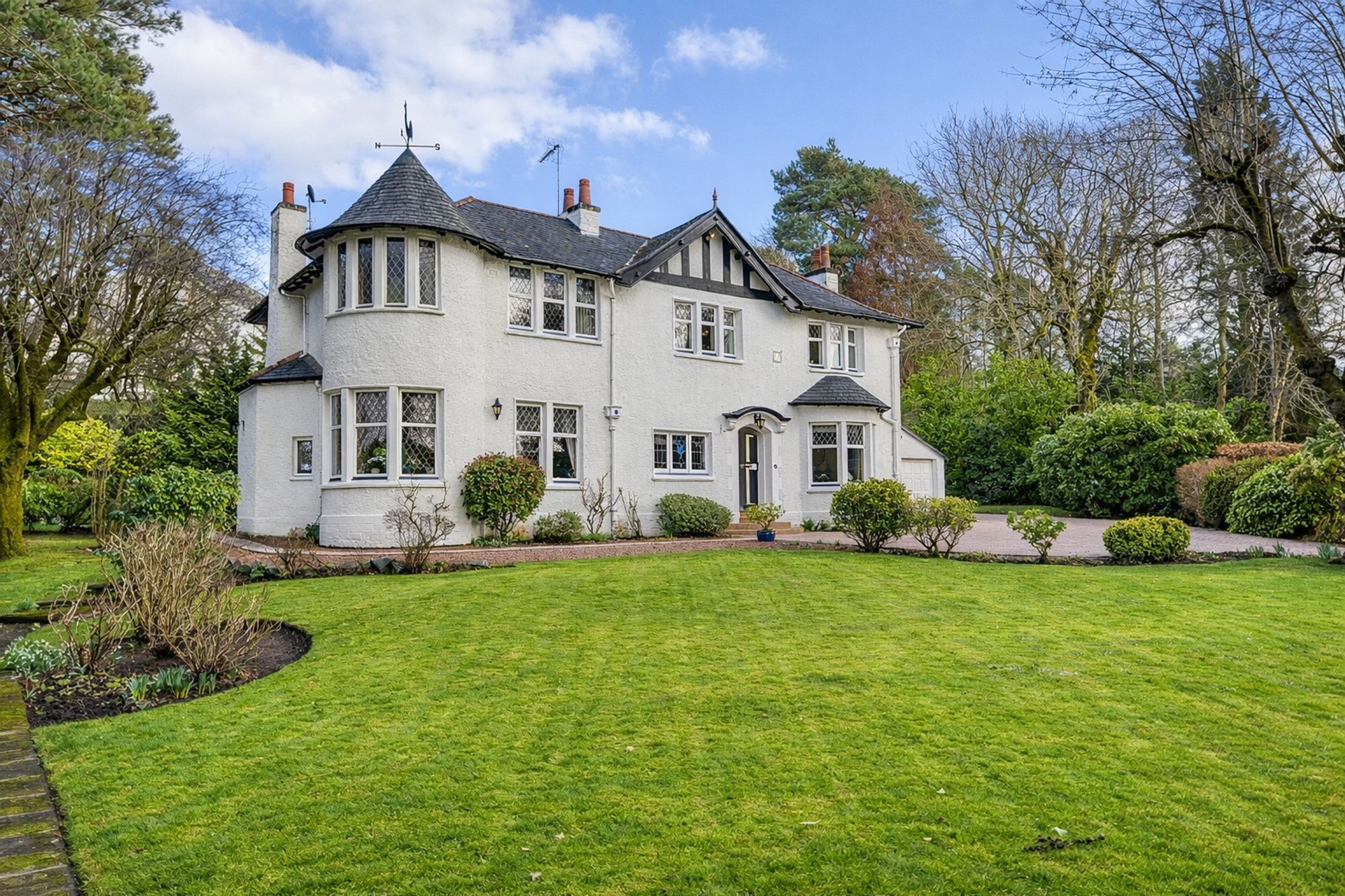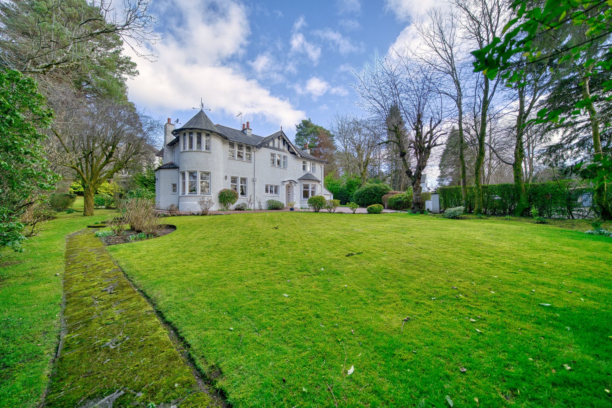 Situated within private and sheltered garden grounds on the highly desirable Roddinghead Road, this delightful 1911 built detached house pre-dates most of the neighbouring properties and exudes more traditional charm and character throughout its circa 4000 sqft interior which provides flexible and well proportioned accommodation.