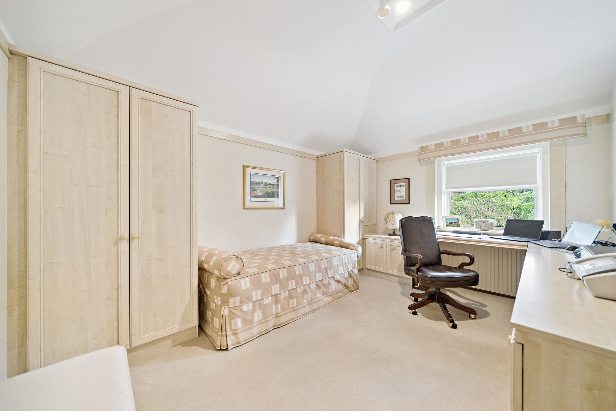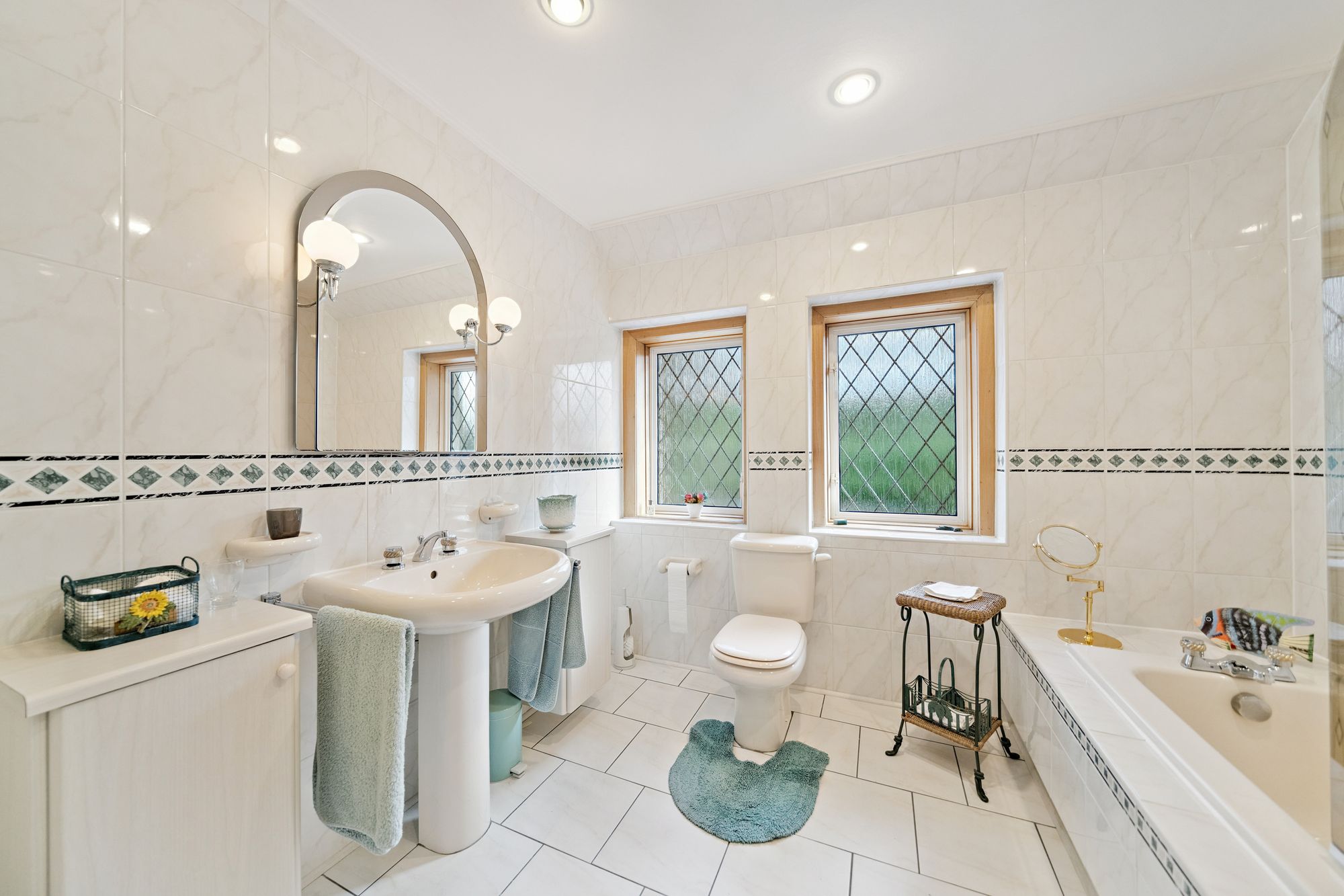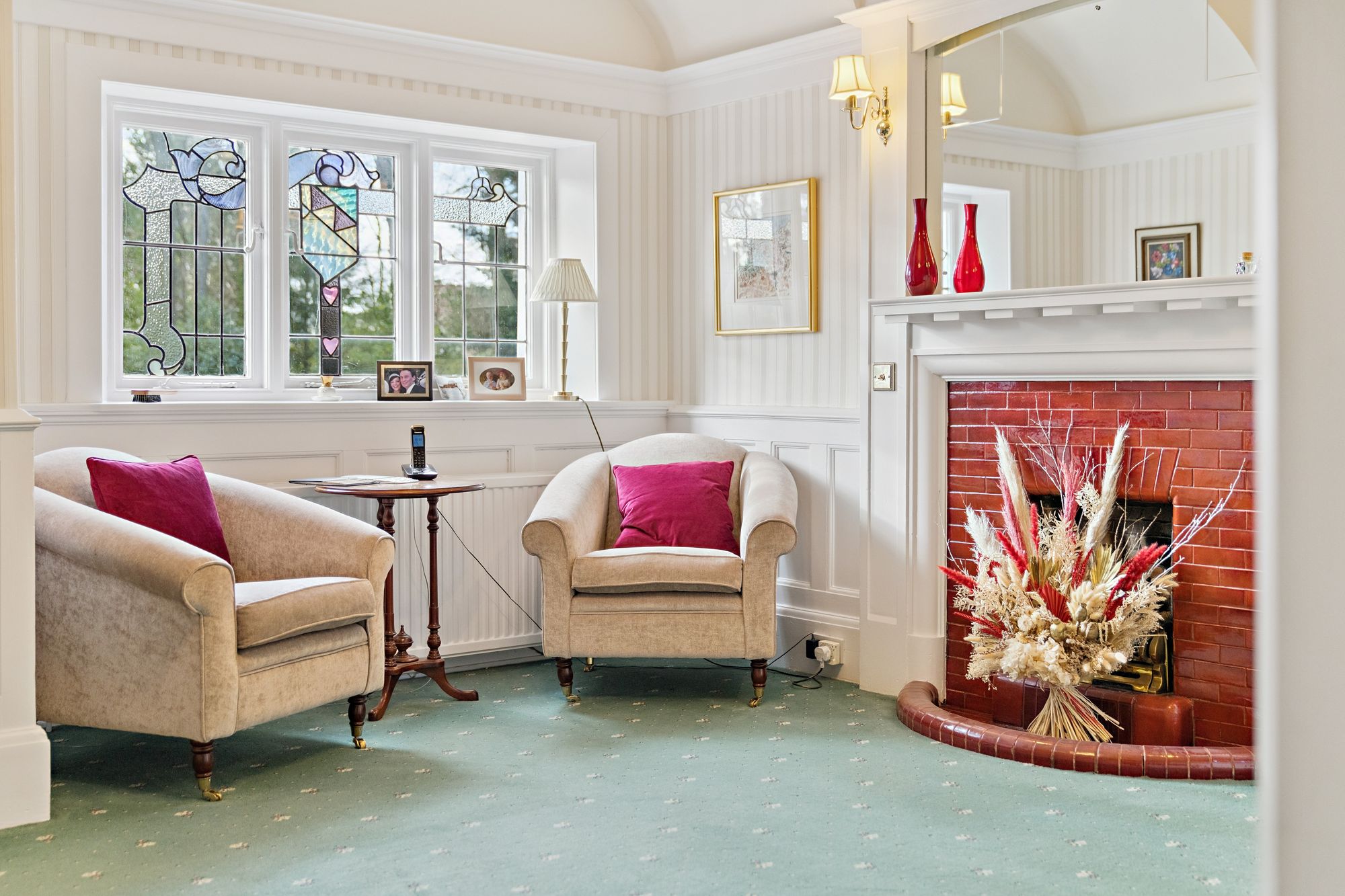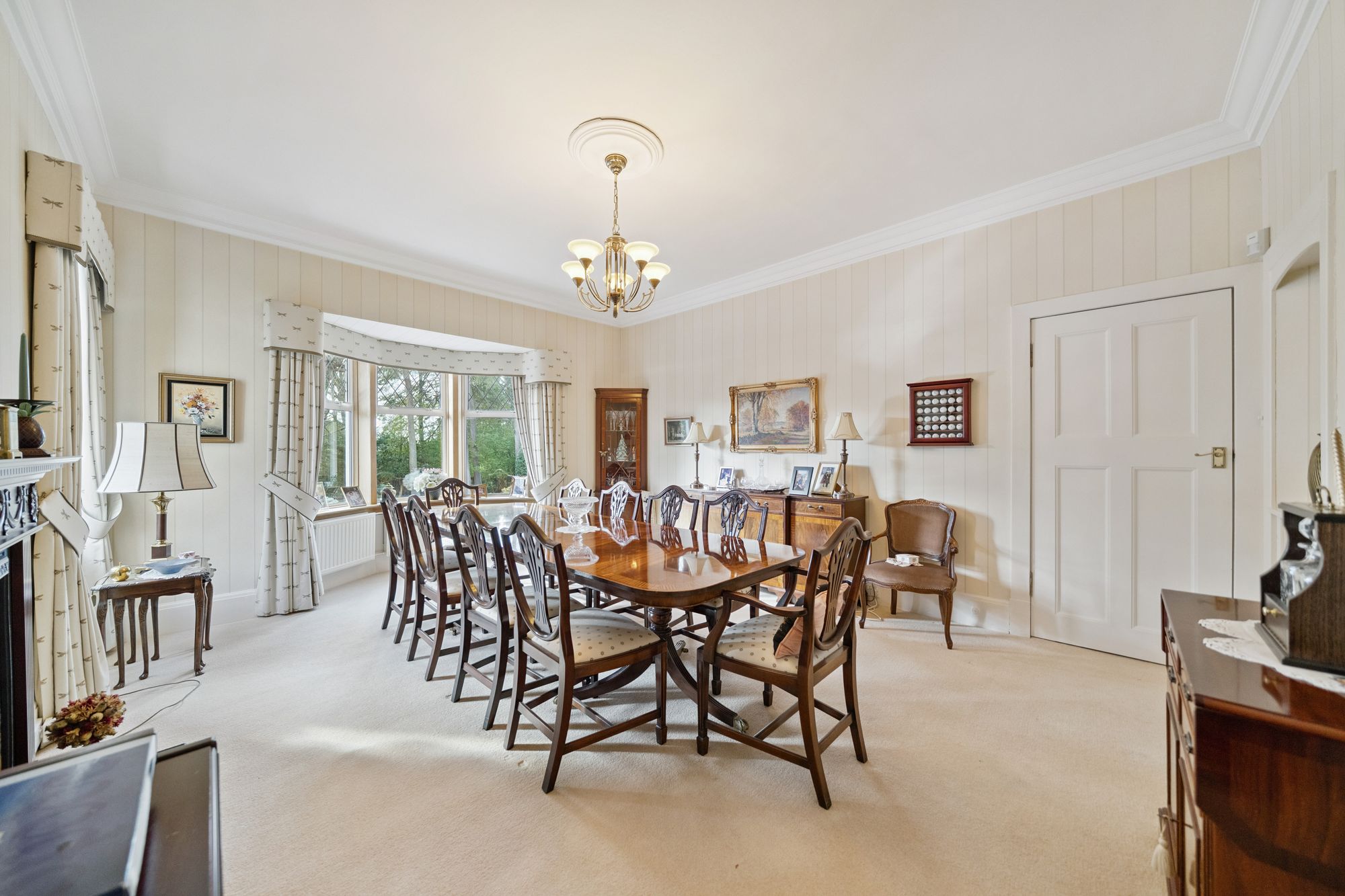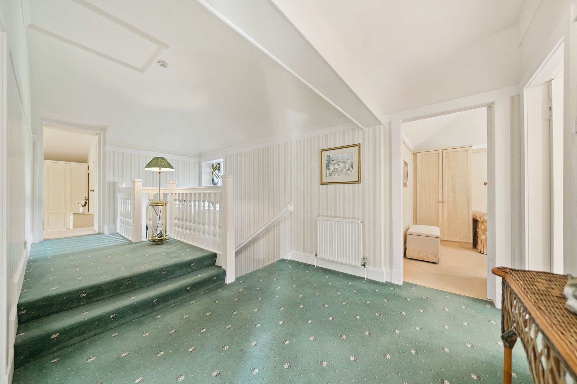 The house is double glazed throughout with the exception of the stained-glass window formation in the entrance hallway and staircase, has gas central heating and, as the floorplan shows, has a number of fireplaces and numerous doors providing direct access to the gardens.
