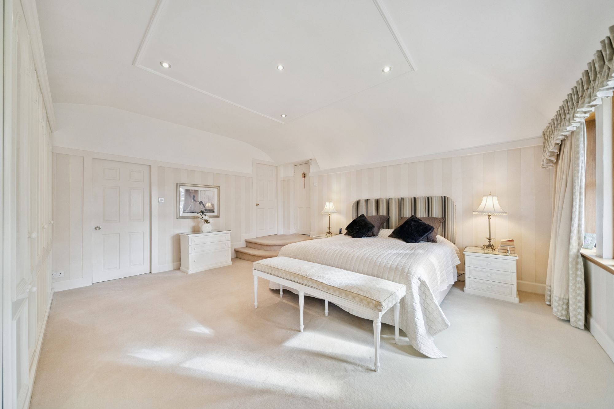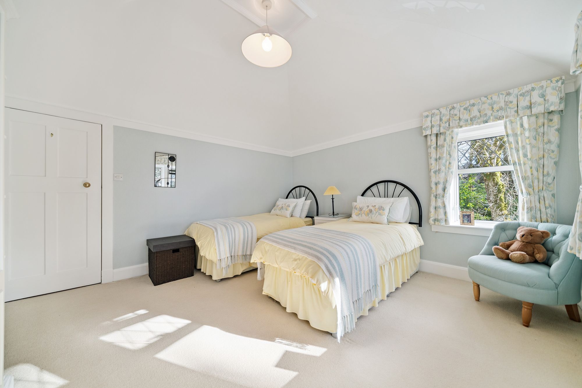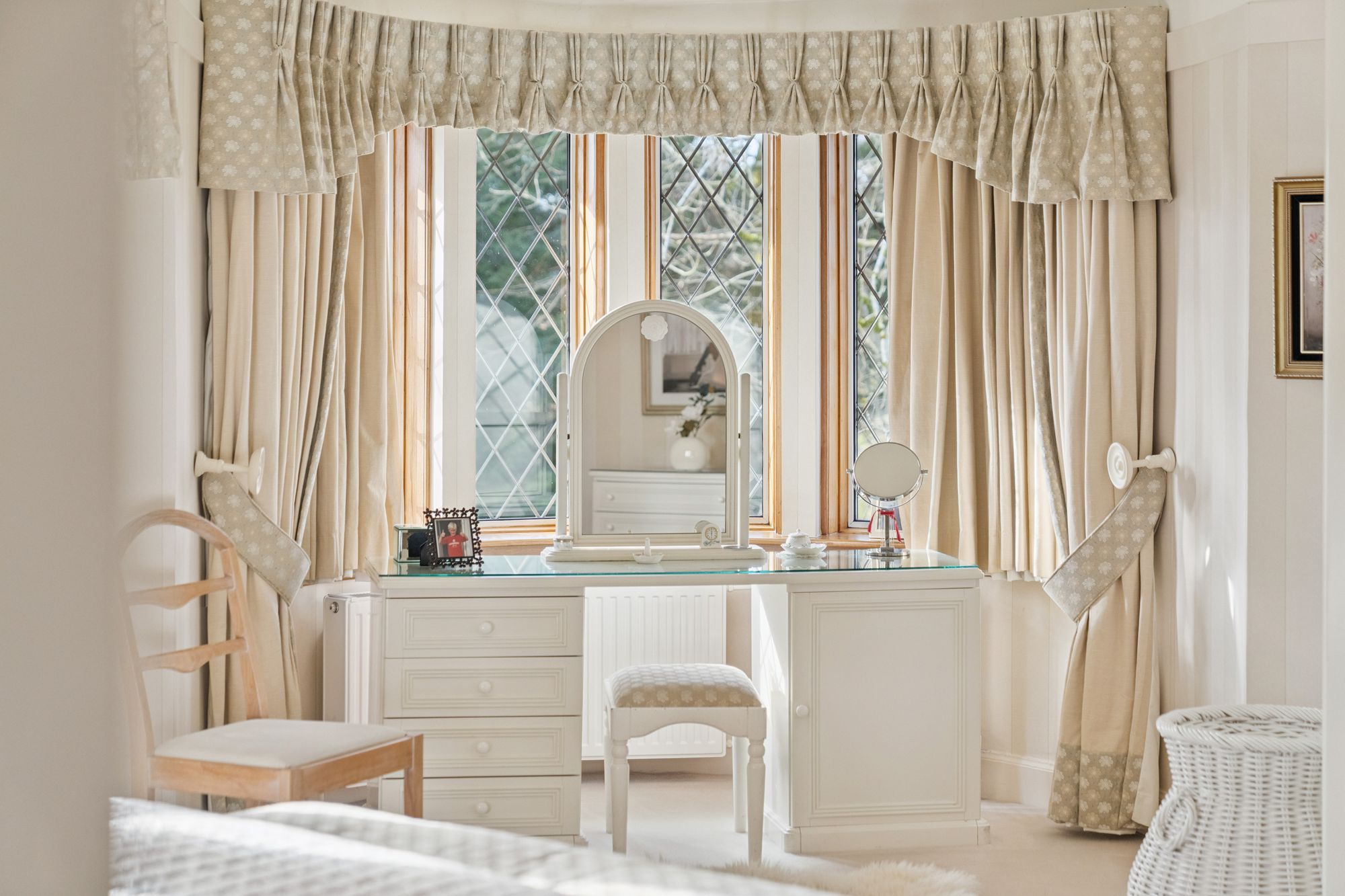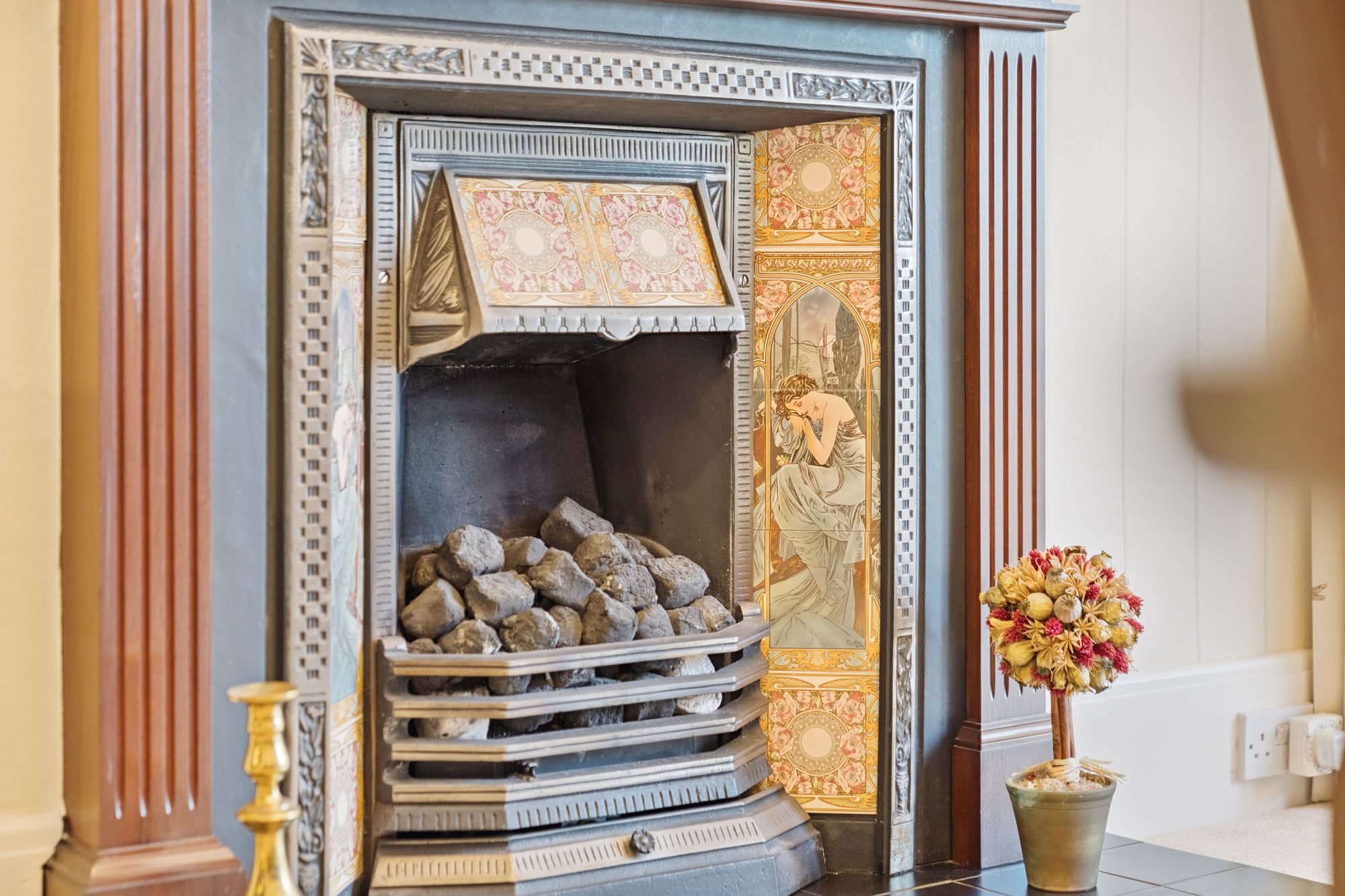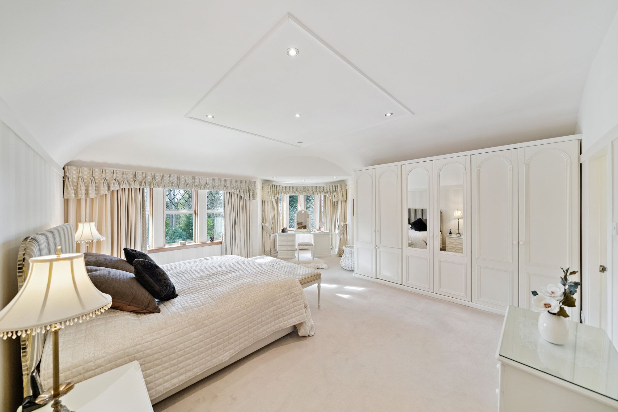 The house is double glazed throughout with the exception of the stained-glass window formation in the entrance hallway and staircase, has gas central heating and, as the floorplan shows, has a number of fireplaces and numerous doors providing direct access to the gardens.
