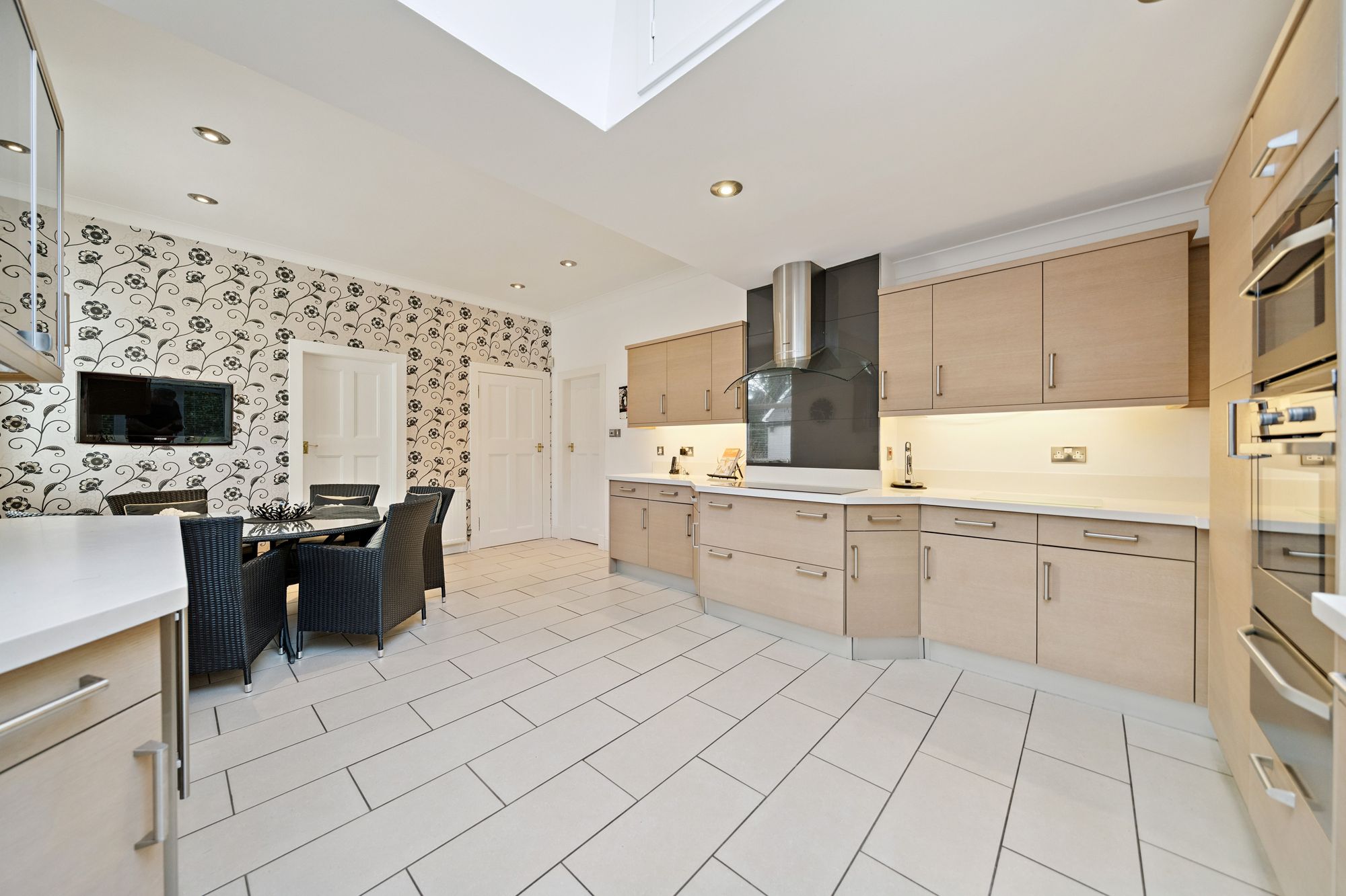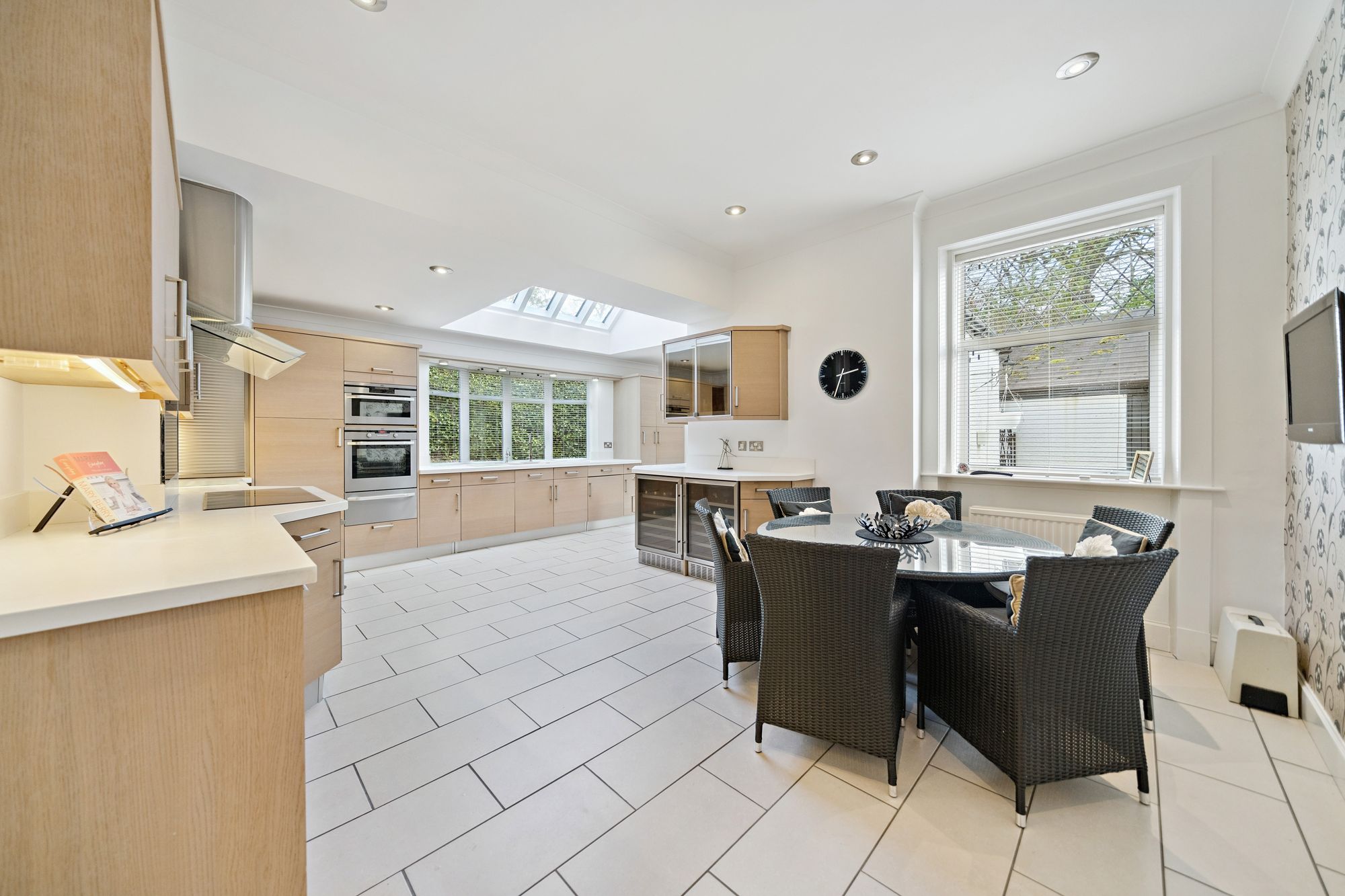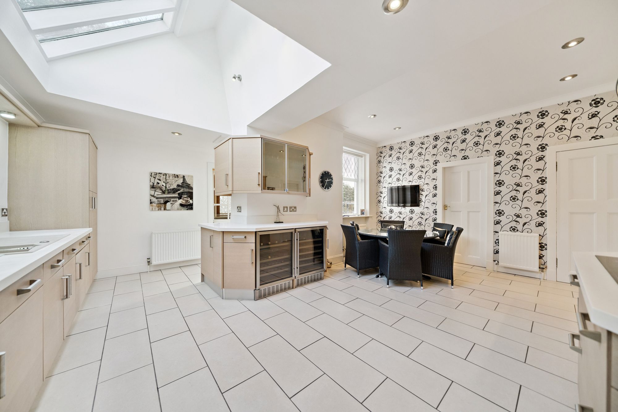 A striking Edwardian façade welcomes visitors in to this property with its entrance marked by a practical vestibule porch. Once inside, an elegant ‘beamed’ hallway with feature fireplace and broad ascending staircase immediately sets the tone of this remarkable home with a ground floor layout comprising of a generous formal drawing room formed around multiple window and patio door formations with opportunity for a designated music or reading area, separate family room with ‘French door’ access to the private rear garden, spacious dining room with traditional fireplace at its focal point, comprehensively fitted kitchen hosting a significant range of base and wall mounted units along with ample family dining space and adjacent utility room and, completing the ground floor layout, a highly practical two-piece cloakroom.