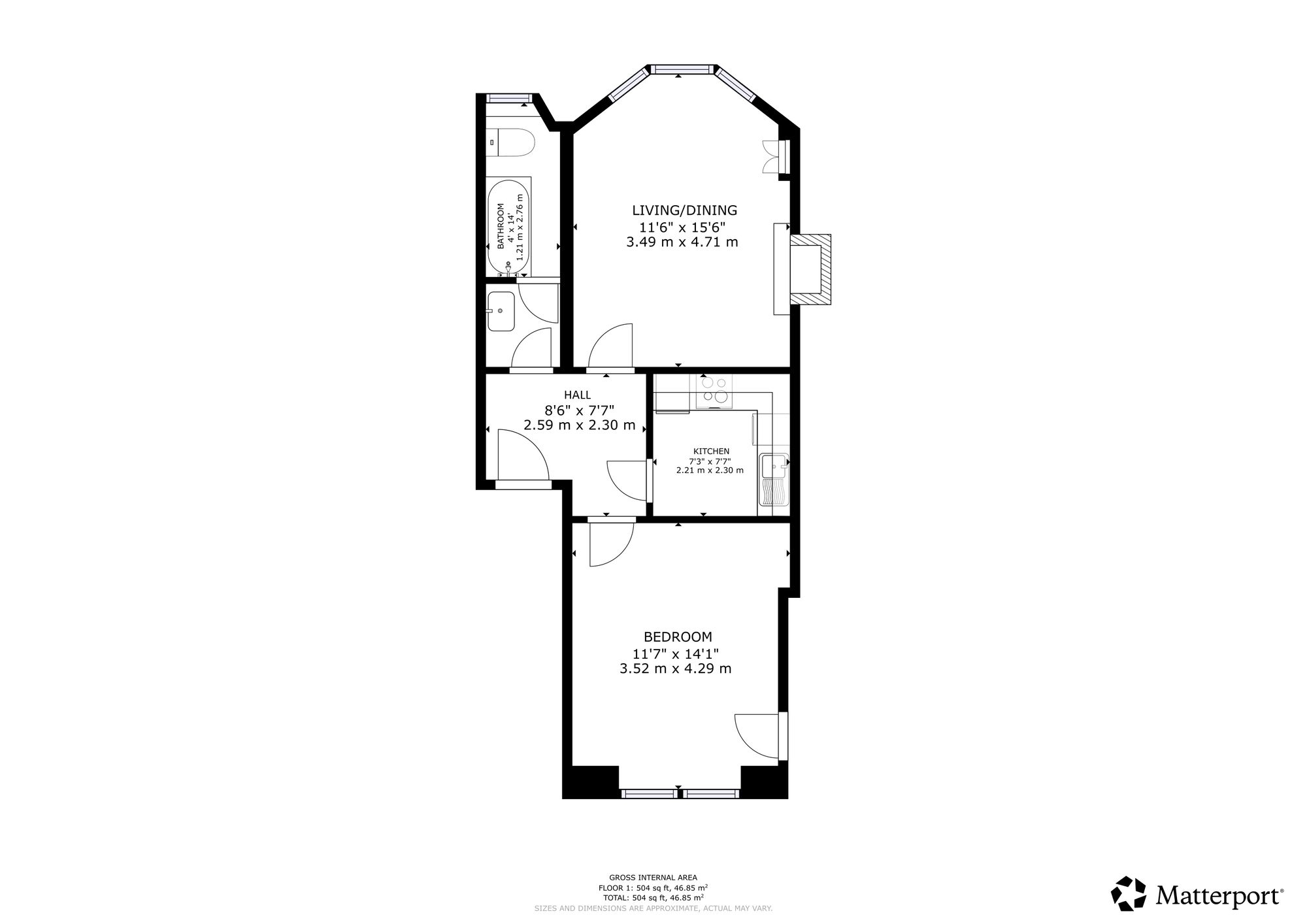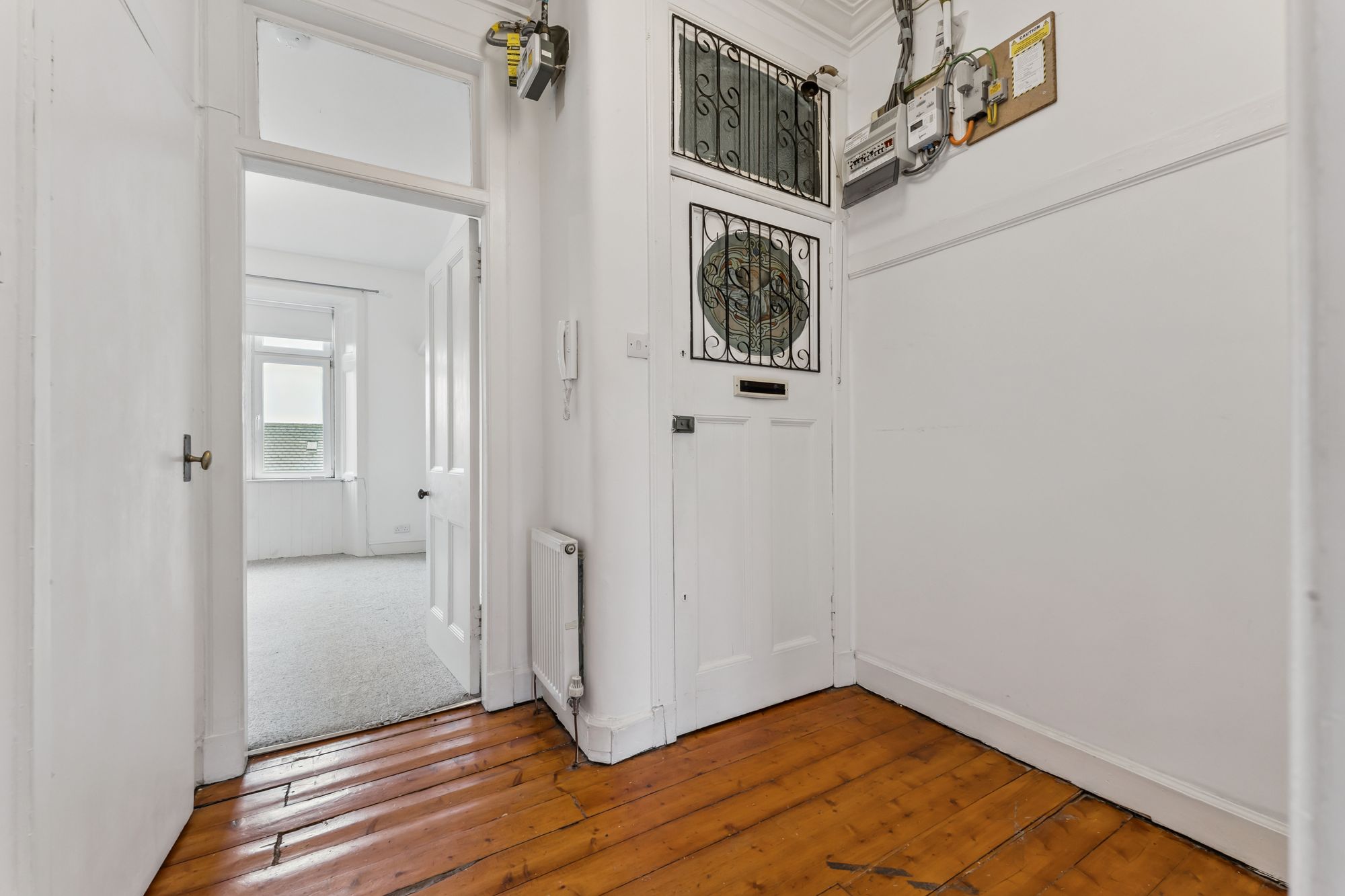 The home for sale is located top (third) floor and offers bright and spacious accommodation throughout. The attached photographs, floor plan and HD video tour will give an indication to the size and layout of the flat. However, in brief the accommodation extends to; welcoming entrance hallway, bay windowed living room with feature fire place, internal kitchen with white units, integrated hob, oven and extractor with space and pluming for additional appliances, a galley style bathroom with three piece suite and shower over the bath. The accommodation is completed by a comfortable double bedroom. Decorated in modern shades complimented by hard wood flooring. Warmth provided by gas central heating.