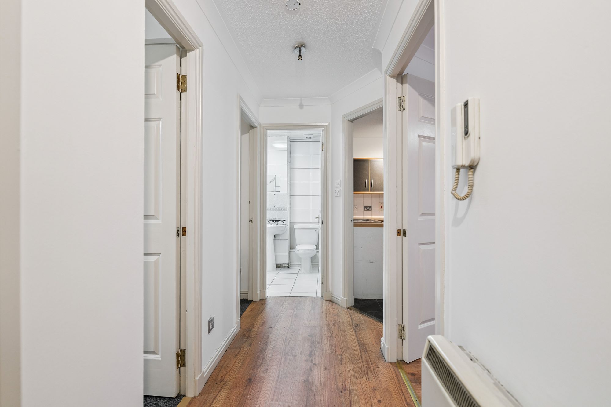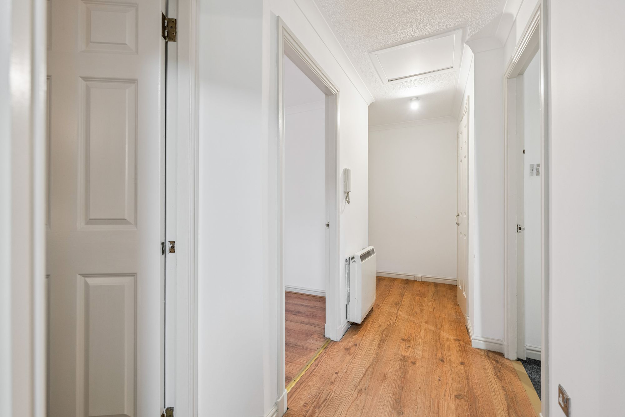 The property further benefits from a substantial attic space, accessed exclusively from within the home, which extends the full length of the property and offers excellent additional storage or potential for future use, electric heating and an allocated parking space within a secure underground car park, accessed via Carlton Lane, an increasingly valuable asset in such a central location.