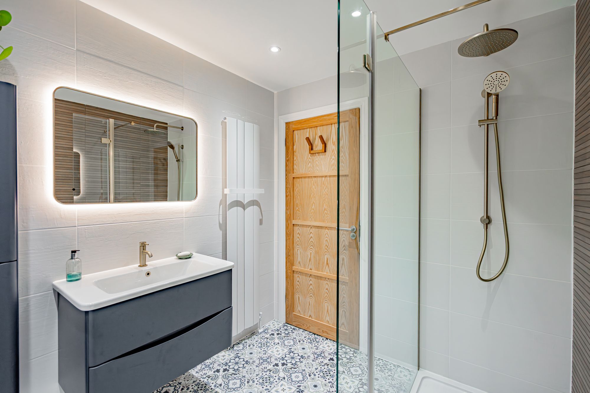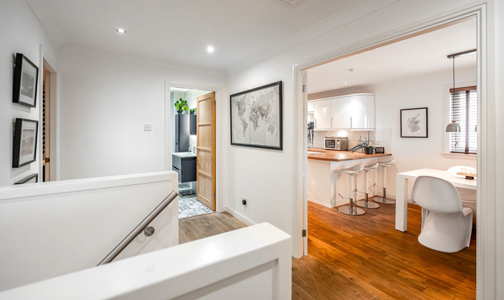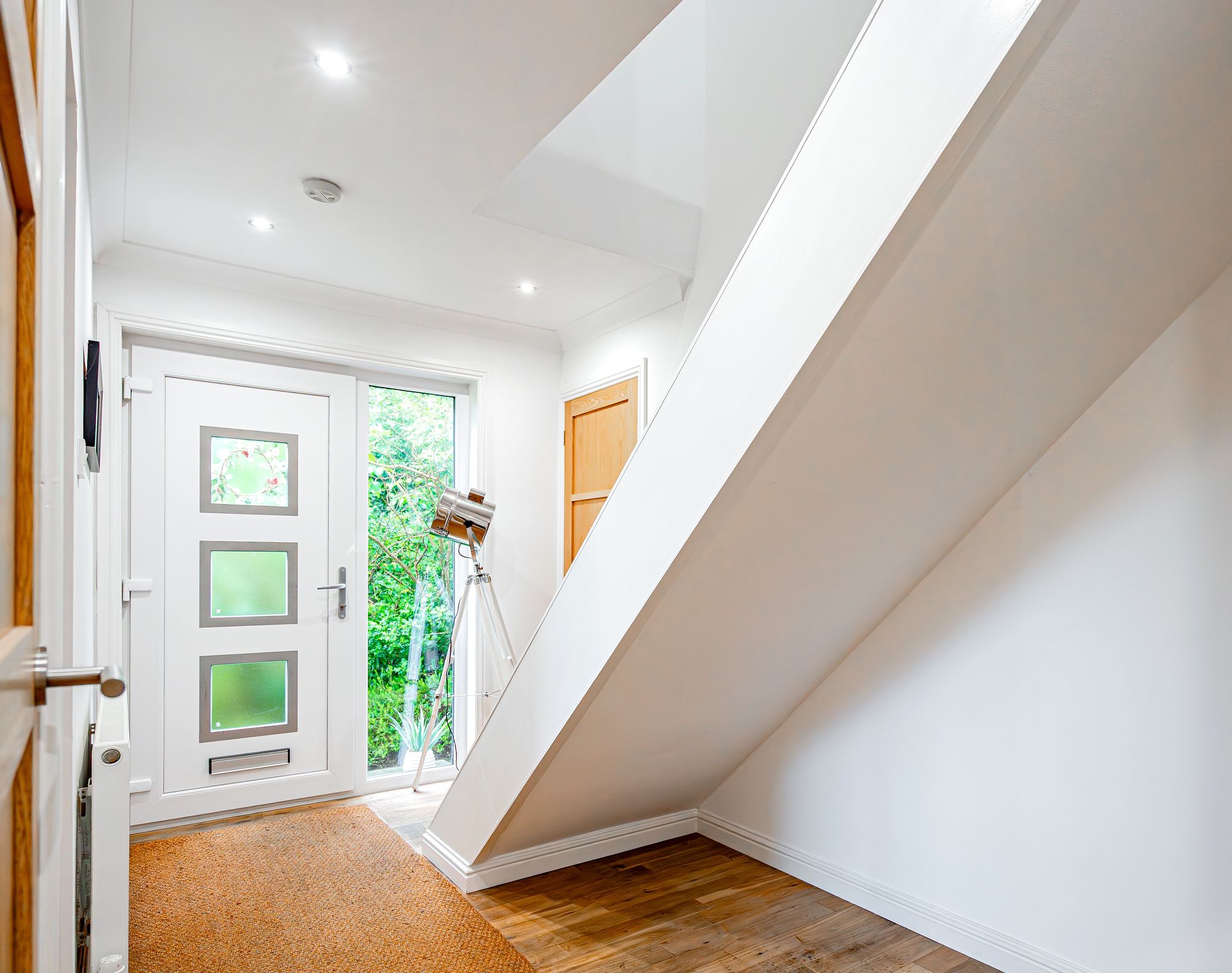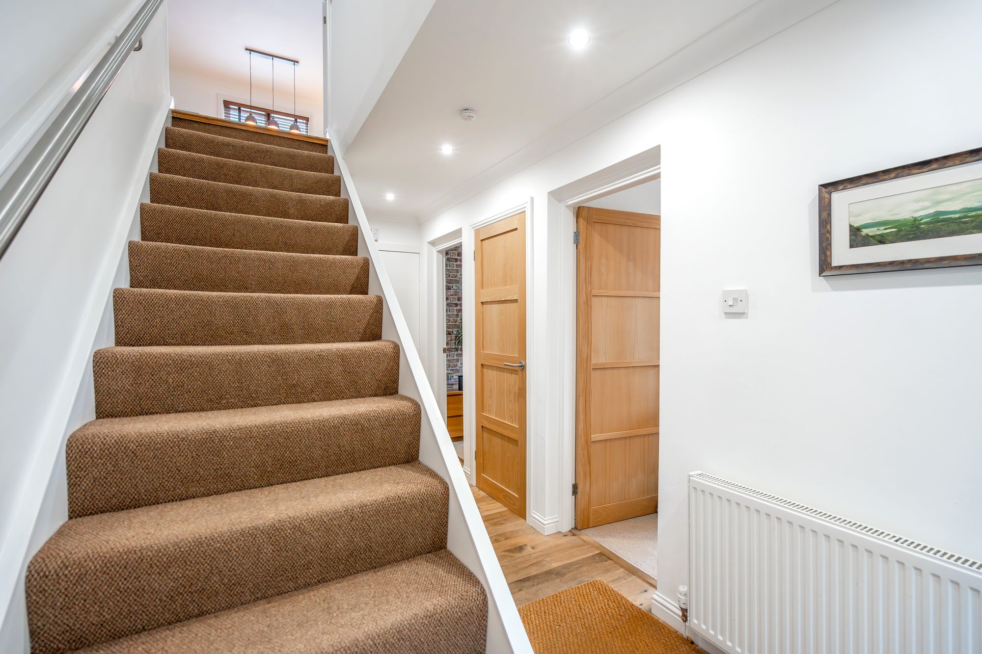 Upon entering, you are welcomed by a bright entrance hall that leads to two well-proportioned bedrooms and a convenient toilet, providing practical living space on the ground level. The upper floor features a spacious hall that opens into a bright, open-plan kitchen, dining, and sitting room—perfect for modern family living and entertaining. Additionally, there are two further double bedrooms and a beautifully finished contemporary shower room on this floor, offering stylish and spacious accommodation.