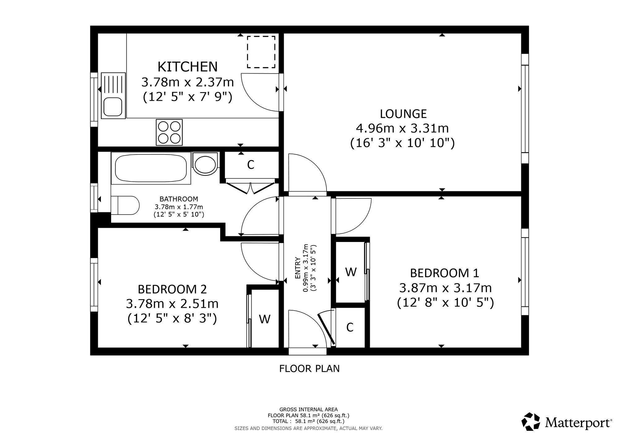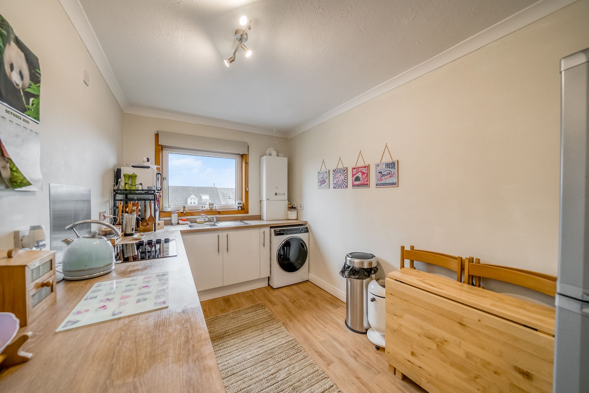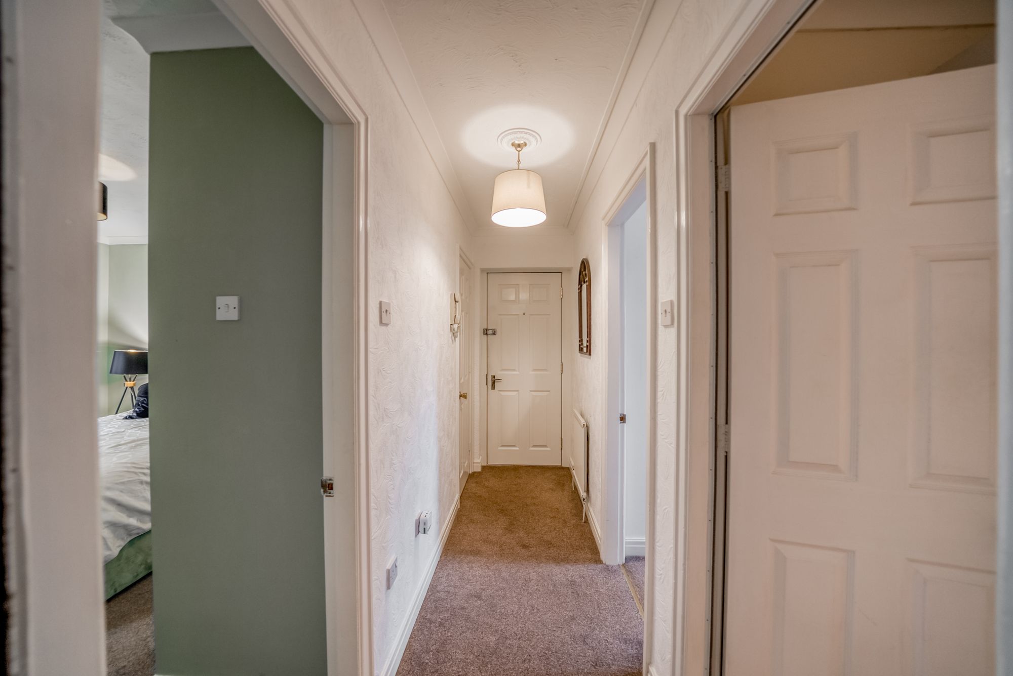 The property is accessed via a secure communal entrance and well maintained stairwell shared with neighbouring residents. Internally, the flat comprises a welcoming entrance hallway, a tasteful bright and airy lounge, and a large modern fitted kitchen with integrated electric hob and oven, with plenty of counter level storage. There are two modern spacious double bedrooms, each offering ample natural light and built in wardrobes, and a well appointed bathroom fitted an electric shower over the bath, wc and vanity wash hand basin. The property comes with gas central heating and benefits from double glazing throughout. Additional practical features include a private lockable storage cupboard on the first floor landing perfect for bikes, tools, or personal items.