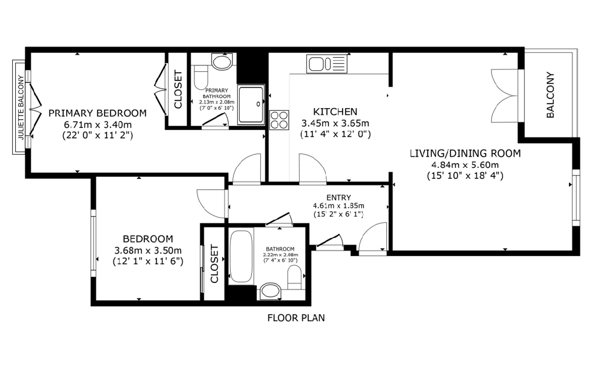 A welcoming entrance hallway leads to the spacious open-plan lounge and kitchen area, which is flooded with natural light. The modern kitchen is fitted with contemporary units and integrated appliances, while the lounge offers direct access to a private balcony—perfect for relaxing or enjoying a morning coffee.