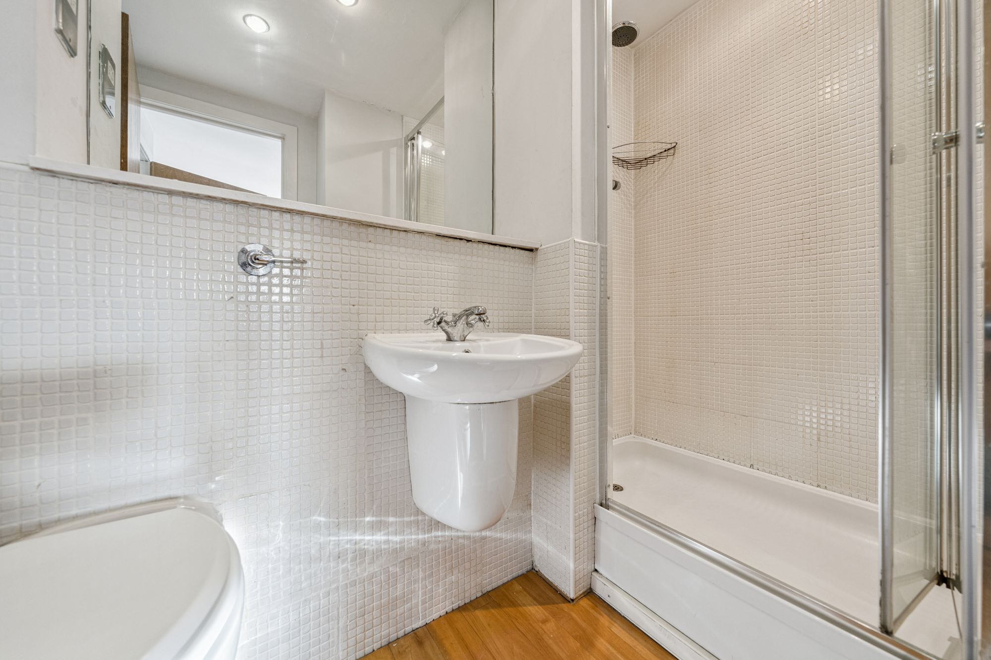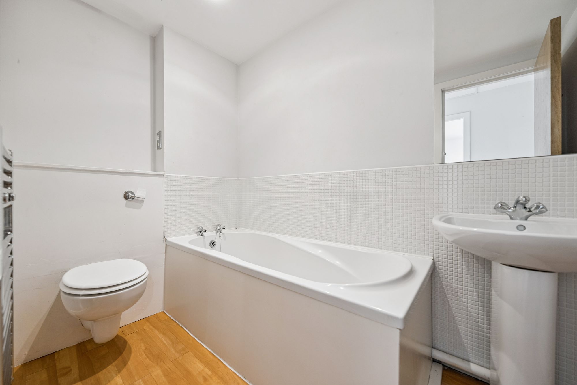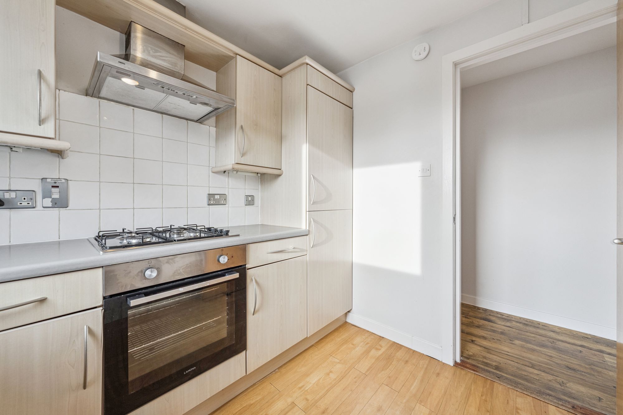 The modern fitted kitchen is well appointed with a range of wall and base mounted units, offering excellent storage and preparation space. The principal bedroom features integrated wardrobes and a private en-suite shower room, while the second double bedroom also benefits from built-in storage. Completing the accommodation is a well-presented bathroom, fitted with a contemporary three-piece suite and shower over bath.