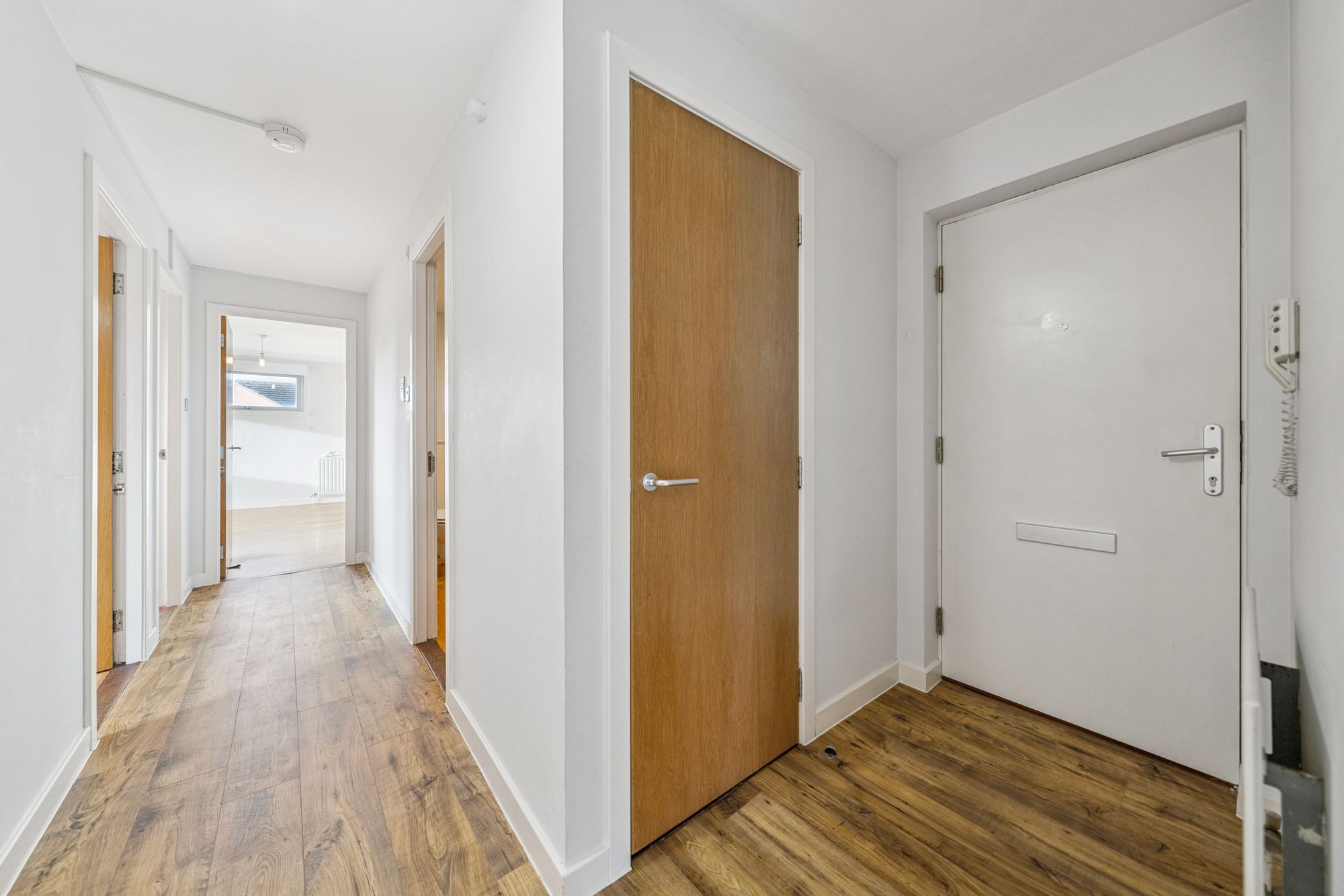 Internally, the property offers bright, well-proportioned accommodation throughout. The entrance is via a communal hallway leading to a welcoming reception hallway, which includes a large storage cupboard. The generous lounge is flooded with natural light and enjoys attractive open views towards the river, creating a relaxing and airy living space.