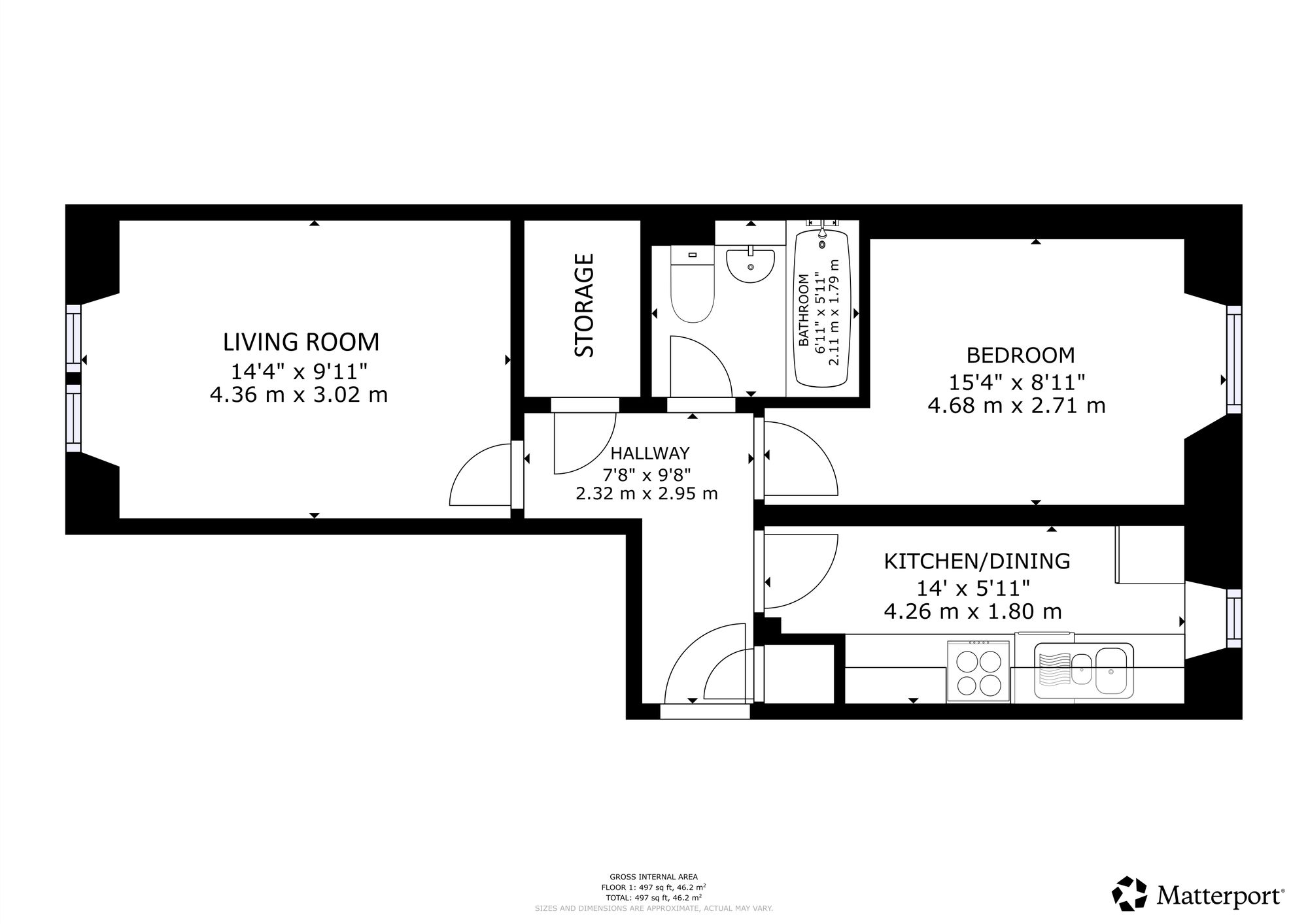 The attached photographs, floor plan and HD video tour will give a good indication to the size and layout of the flat. However, in brief the accommodation extends to; welcoming entrance hallway with two storage cupboards off, including a large walk in cupboard. There is a bright front facing lounge with ample space for dining, a spacious double bedroom a galley style kitchen with appliances. The accommodation is completed by a tiled family bathroom with three-piece suite and shower.