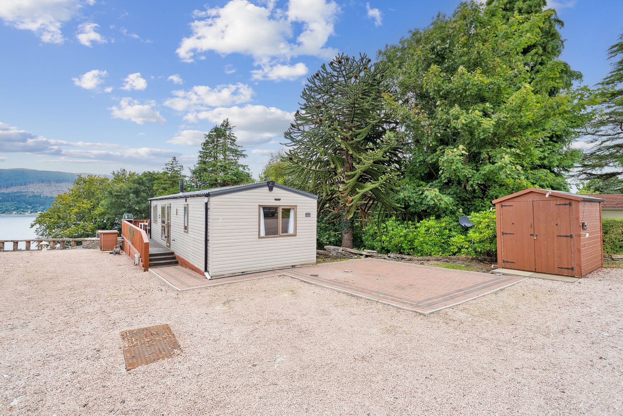 Within Auchengower Park, on the shore of Loch Long, this delightful two bedroomed modern park home/chalet offers full residential status with a lifetime lease and would be perfect as a holiday retreat or as a low maintenance, high specification and low cost main home. The property enjoys a large decked terrace that affords all day long sunshine and wraps around the property. The property is finished to a very high specification, being modern, well presented and attractively decorated throughout.