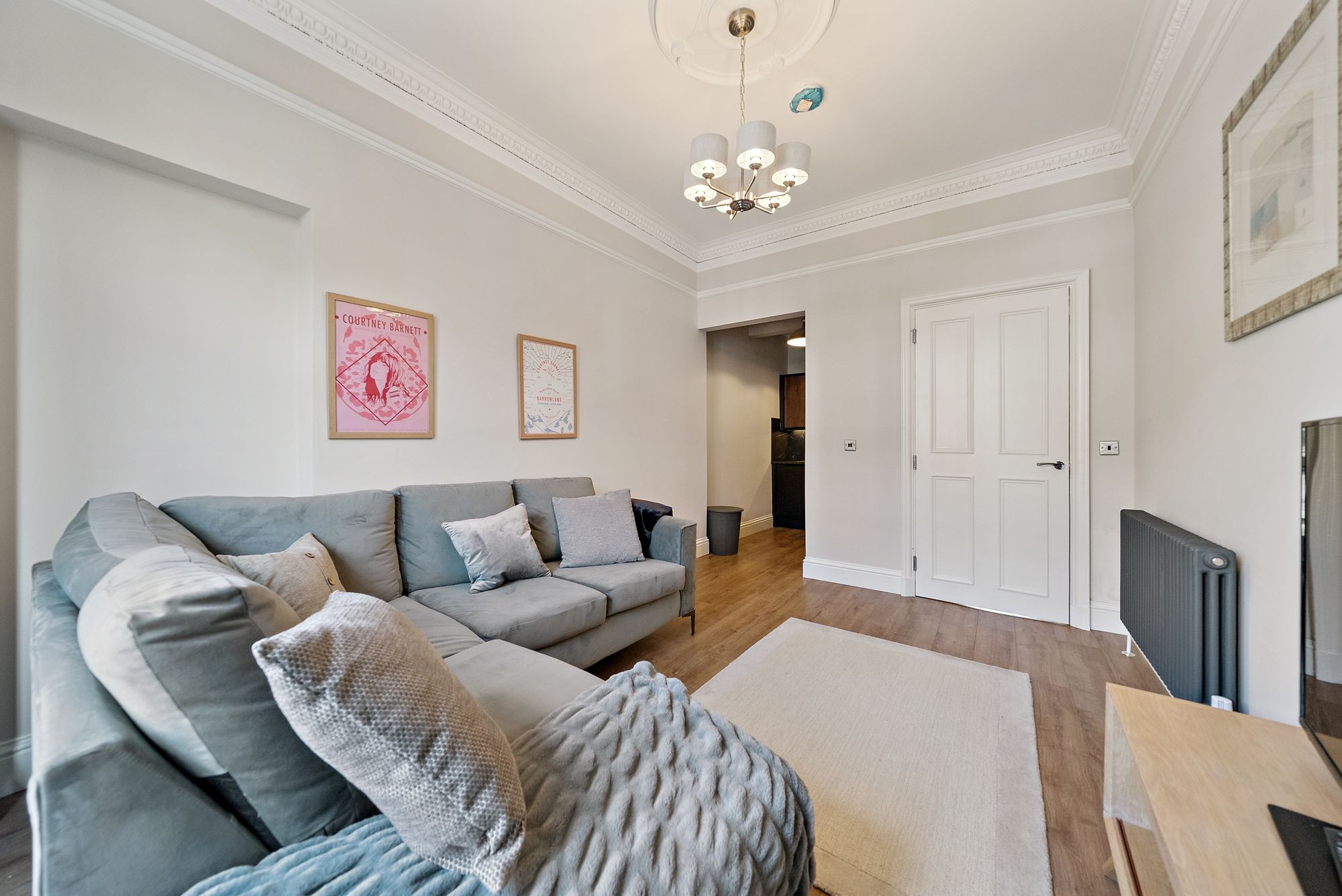 This super-stylish and comprehensively upgraded one-bedroom period apartment occupies a prime position on the preferred first floor of a handsome red sandstone tenement, perfectly located to enjoy the vibrant local amenities on offer. The property blends traditional charm with contemporary finishes, offering an exceptional standard of accommodation throughout.