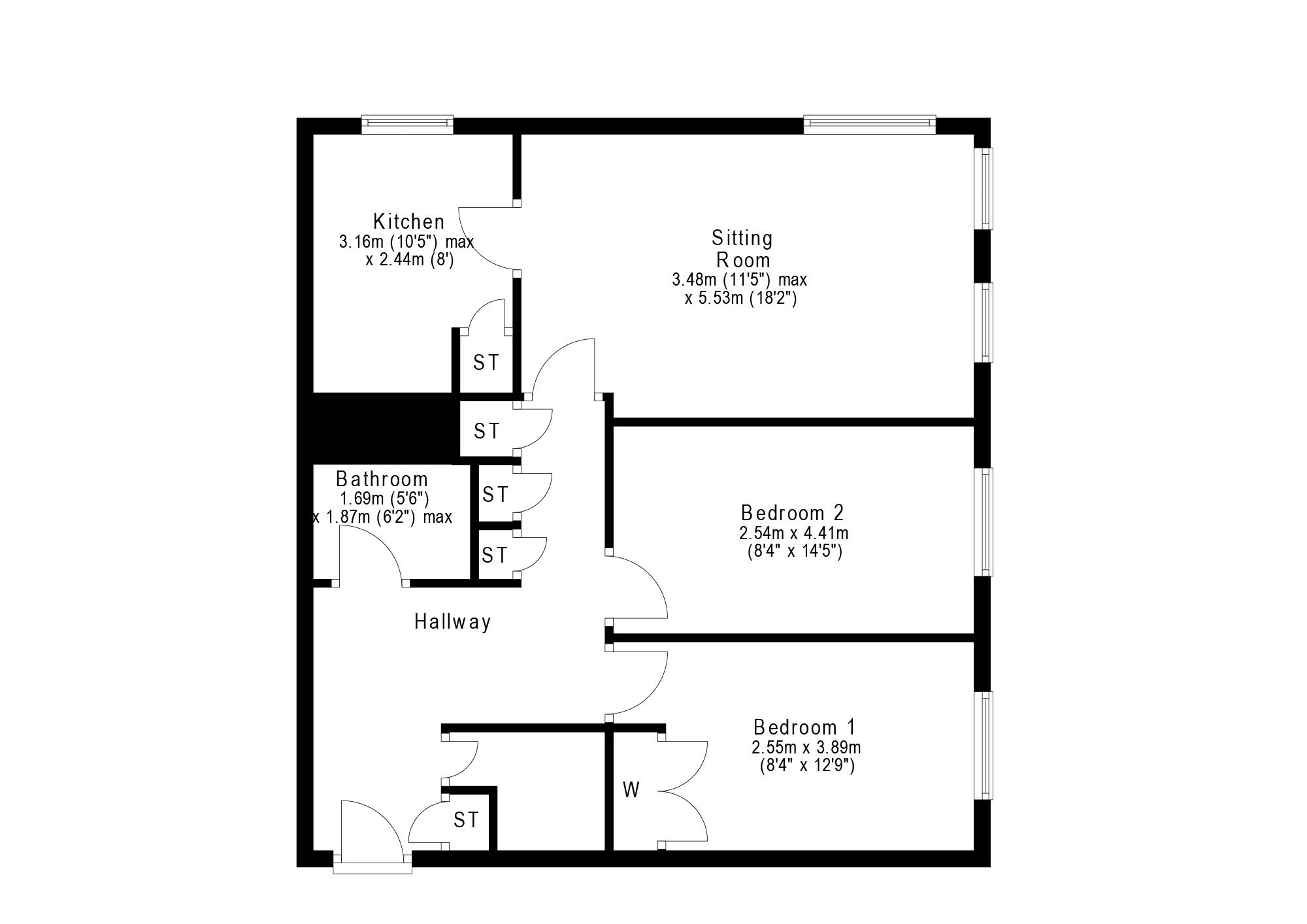 Bedroom Two - 14’5” x 8’4” 4.39m x 2.54m