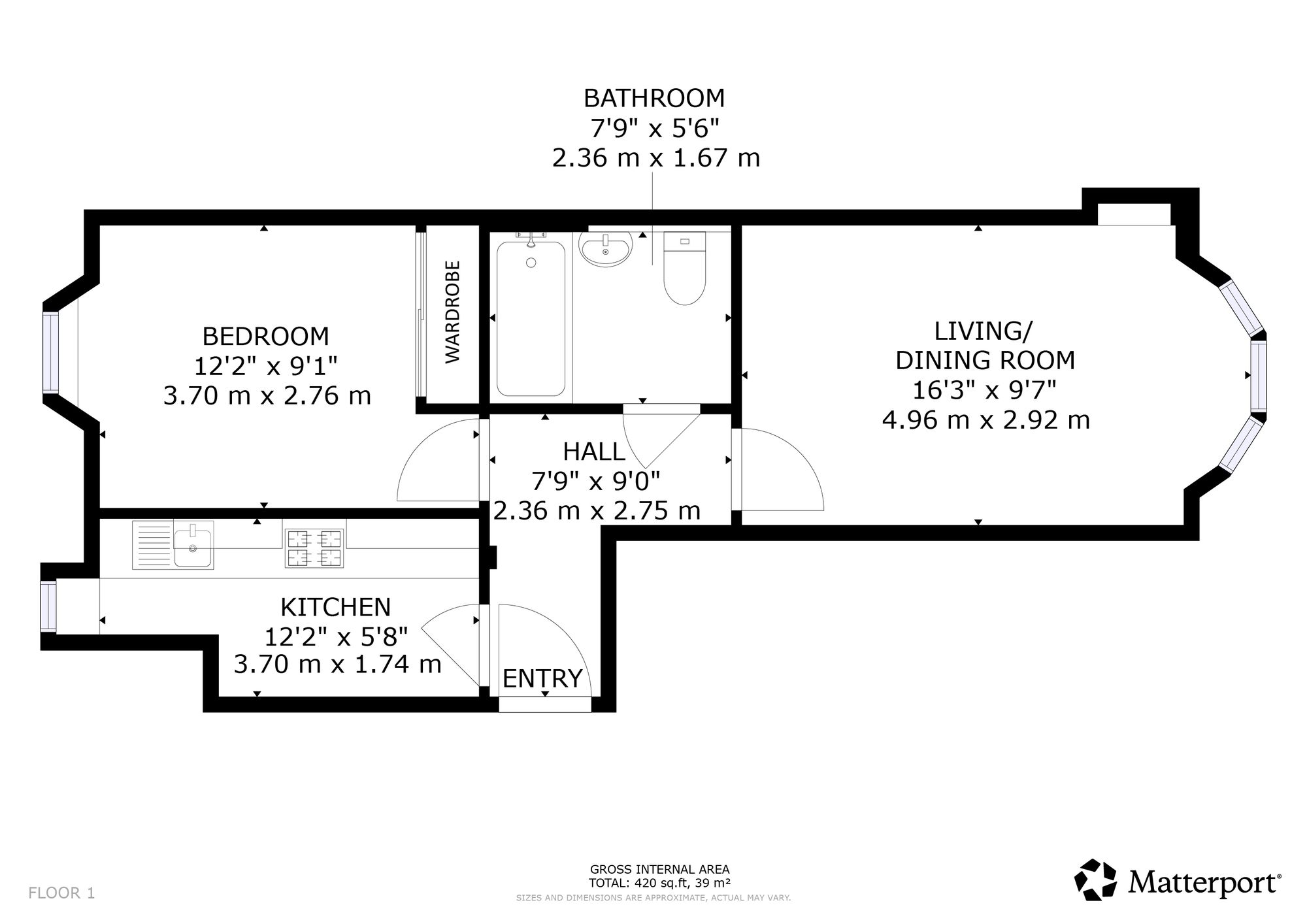 The attached photographs, floor plan and HD video tour will give an indication to the size and layout of the flat. However, in brief the accommodation extends to; welcoming entrance hallway, bay windowed living room with space for dining, broad galley kitchen, spacious double bedroom with built in storage. The accommodation is completed by a bathroom with three piece suite and shower over the bath. To the rear of the building there are communal gardens with a drying area, and parking is available on-street or in a car park circa 50 yards from the property.