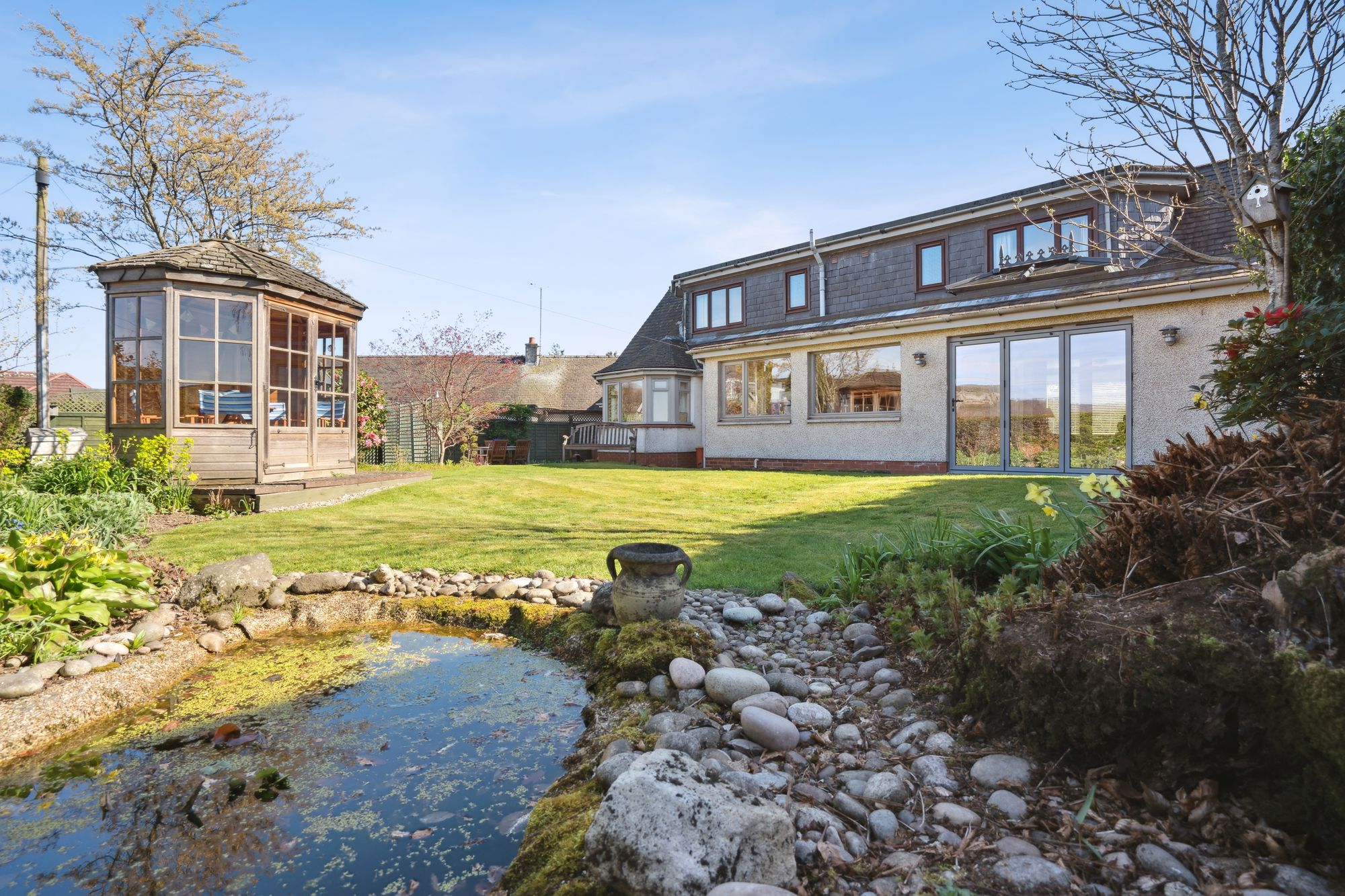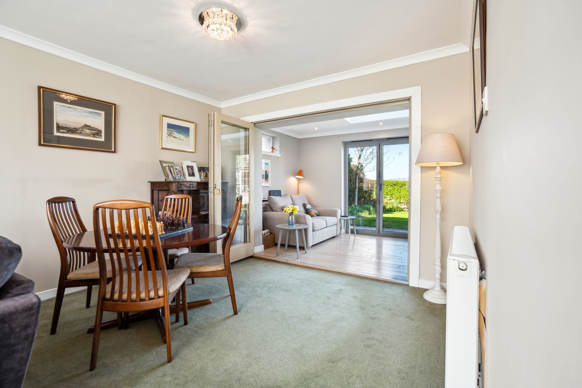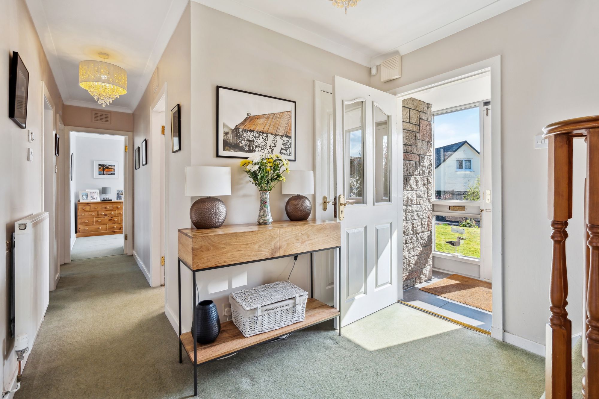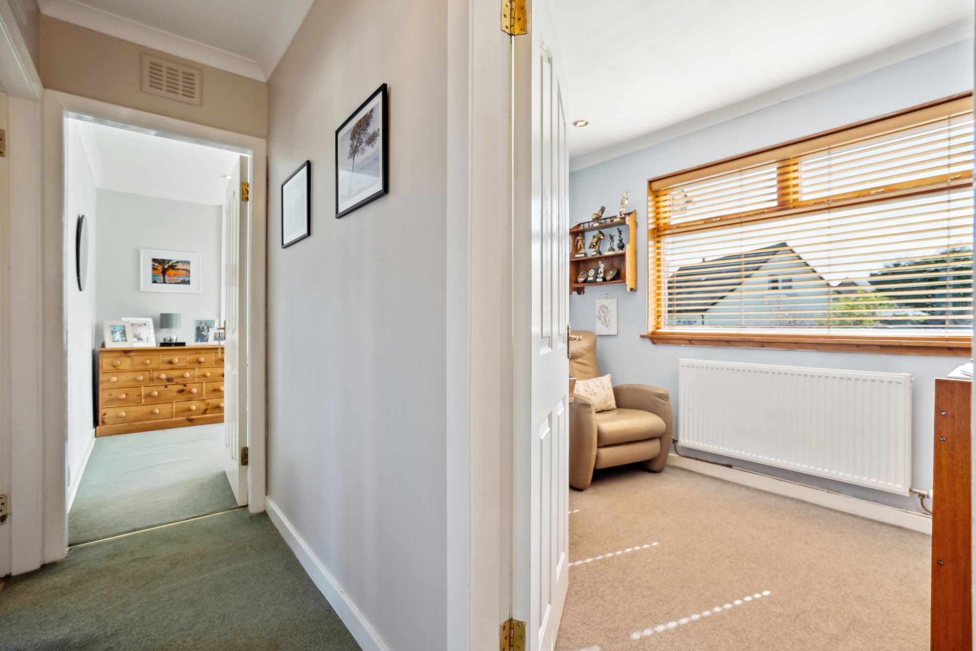 The ground floor begins with an entrance vestibule leading into a central hall which provides access to the principal living spaces. The open-plan kitchen, diner and sitting area is a key feature of the home, creating a bright and sociable environment ideal for both everyday family life and entertaining. This space flows effortlessly and benefits from excellent natural light, while the adjacent lounge and dining area offers a more formal yet inviting setting. A striking cupola enhances this room, drawing light down into the space and framing superb views over the Wallace Monument, adding a real sense of character and distinction.