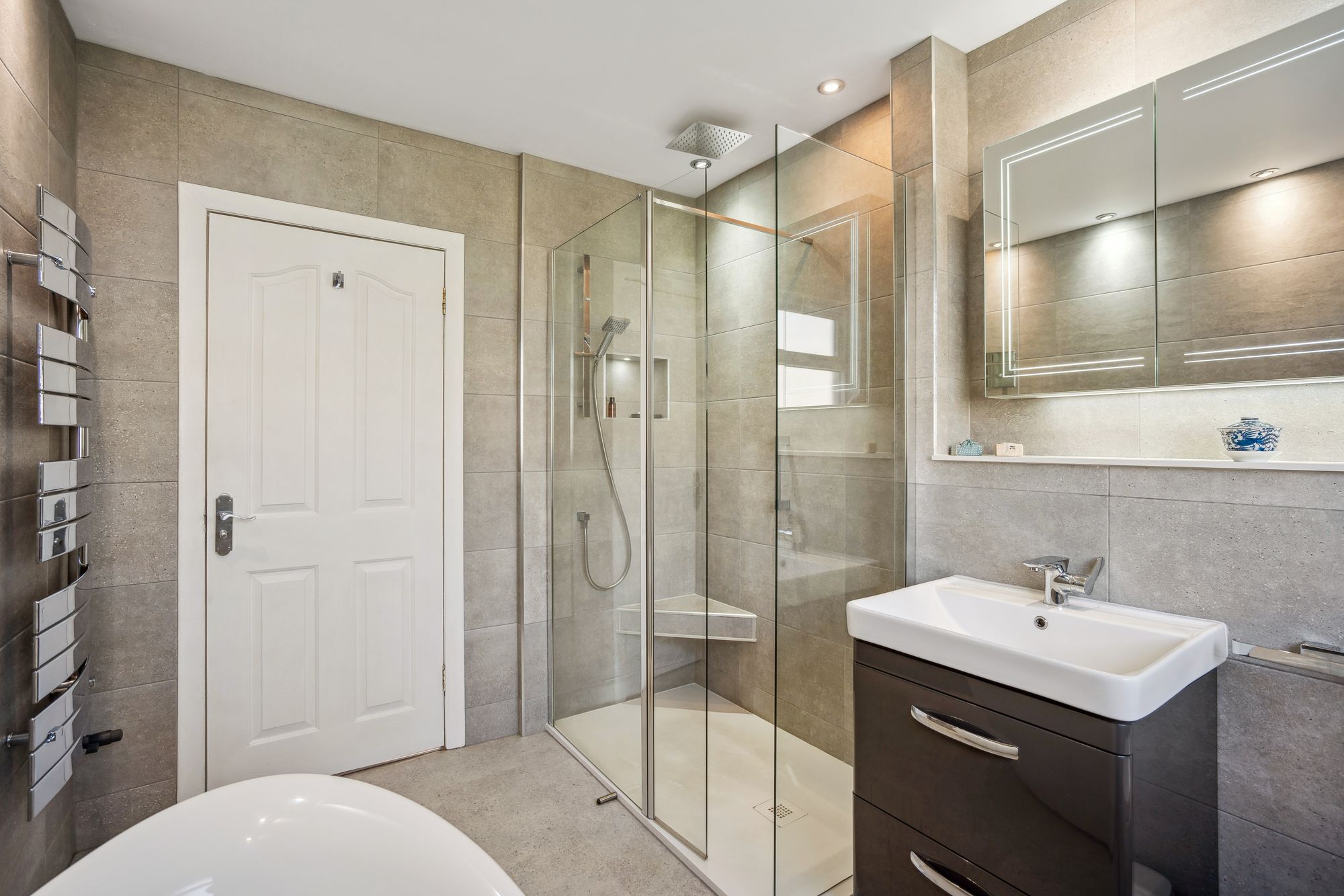 The attic floor continues the sense of quality and space, with a bright upper hall leading to an impressive principal bedroom complete with a walk-in wardrobe and a contemporary ensuite shower room. A further generously sized bedroom also benefits from its own ensuite shower room, making this level ideal for older children, guests or multigenerational living while maintaining privacy and comfort.