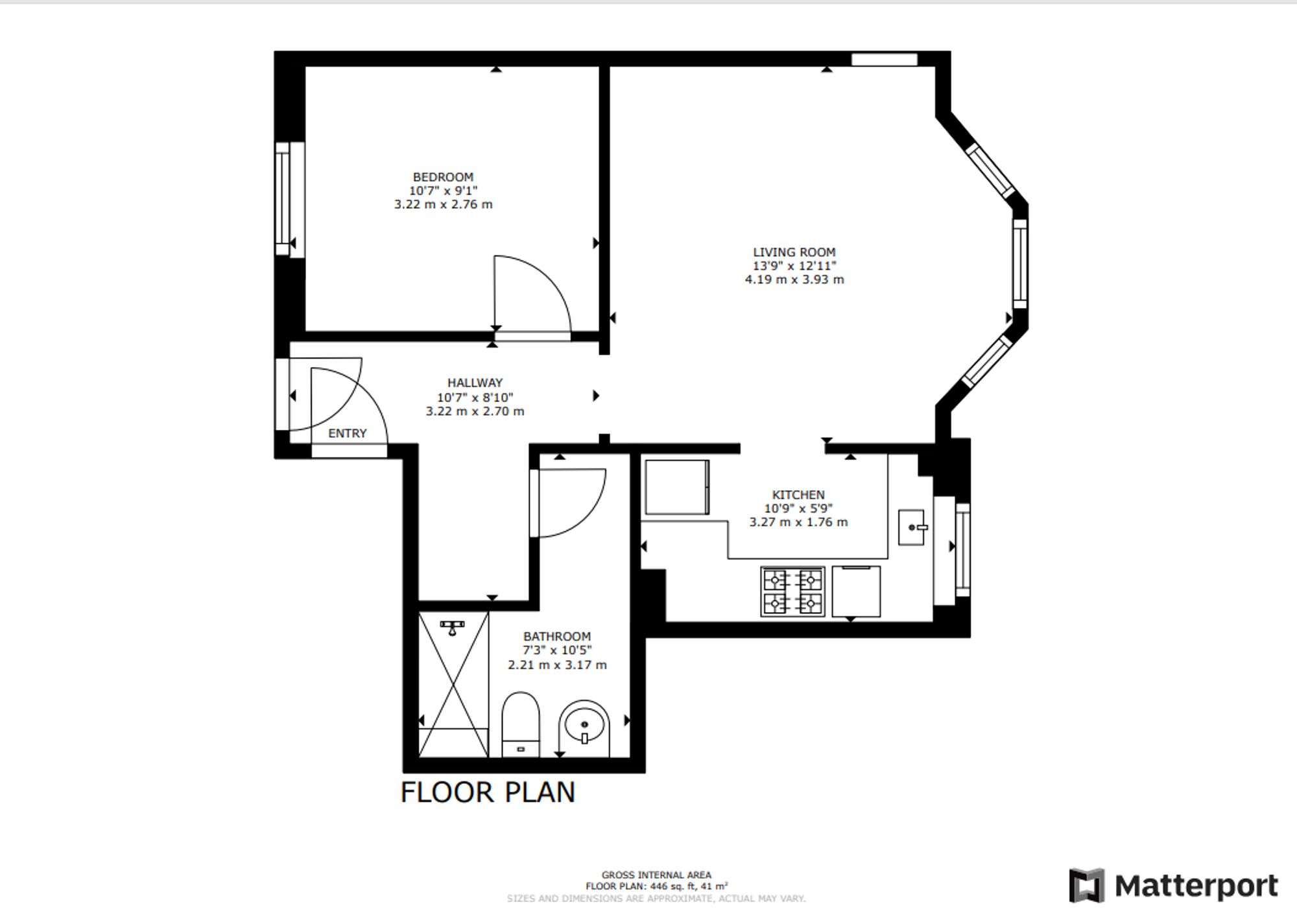 The accommodation comprises of a welcoming entrance hall with storage cupboard, modern bathroom, semi open plan kitchen, bay windowed lounge and a double bedroom.