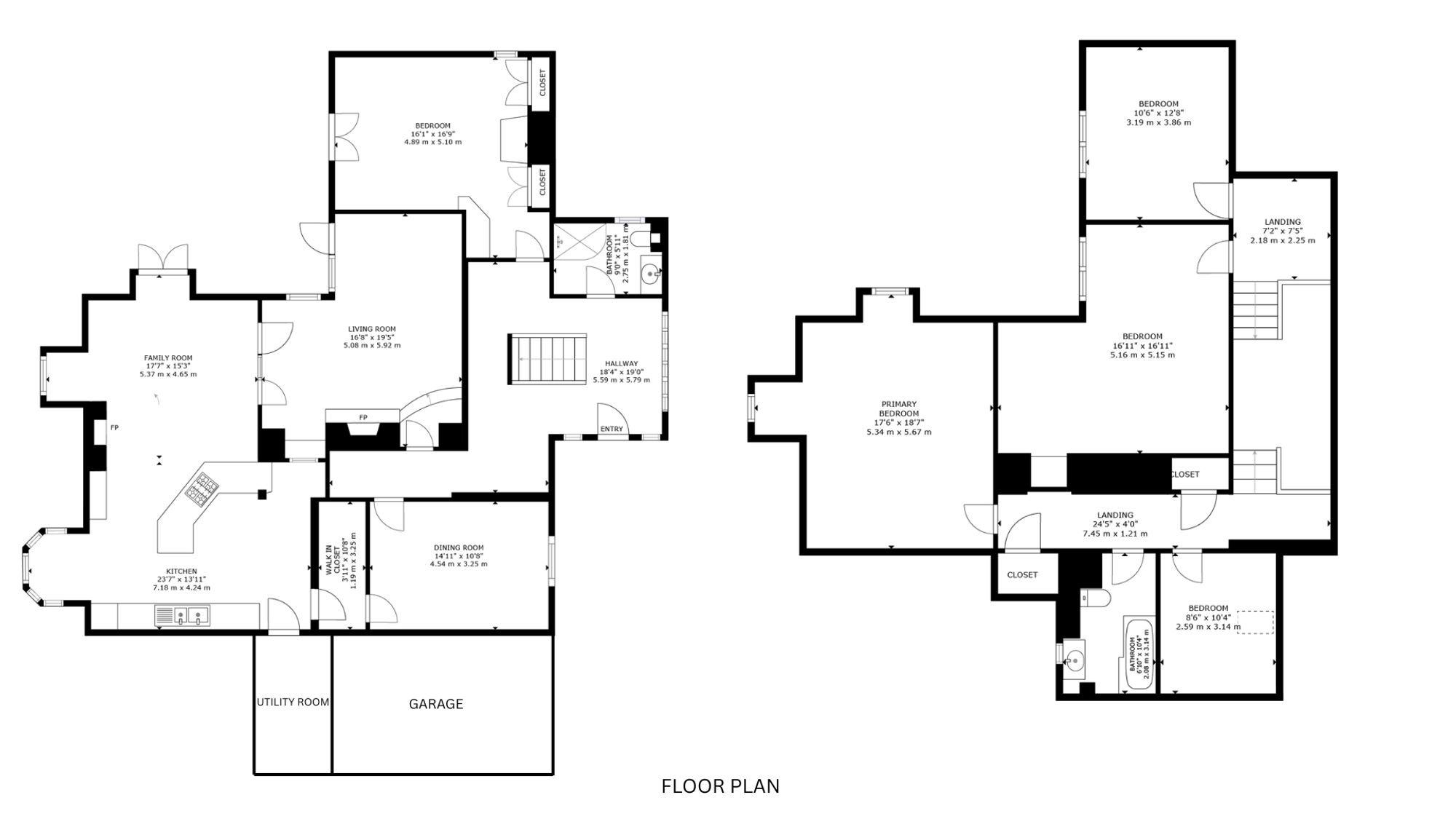 The first floor is thoughtfully divided via a split staircase into two separate bedroom areas, enhancing both privacy and flexibility. One side of the upper level accommodates two well-proportioned bedrooms, while the opposite side offers two further bedrooms together with a family bathroom. All bedrooms benefit from excellent natural light and generous proportions, making the layout particularly well suited to family or multi-generational living.