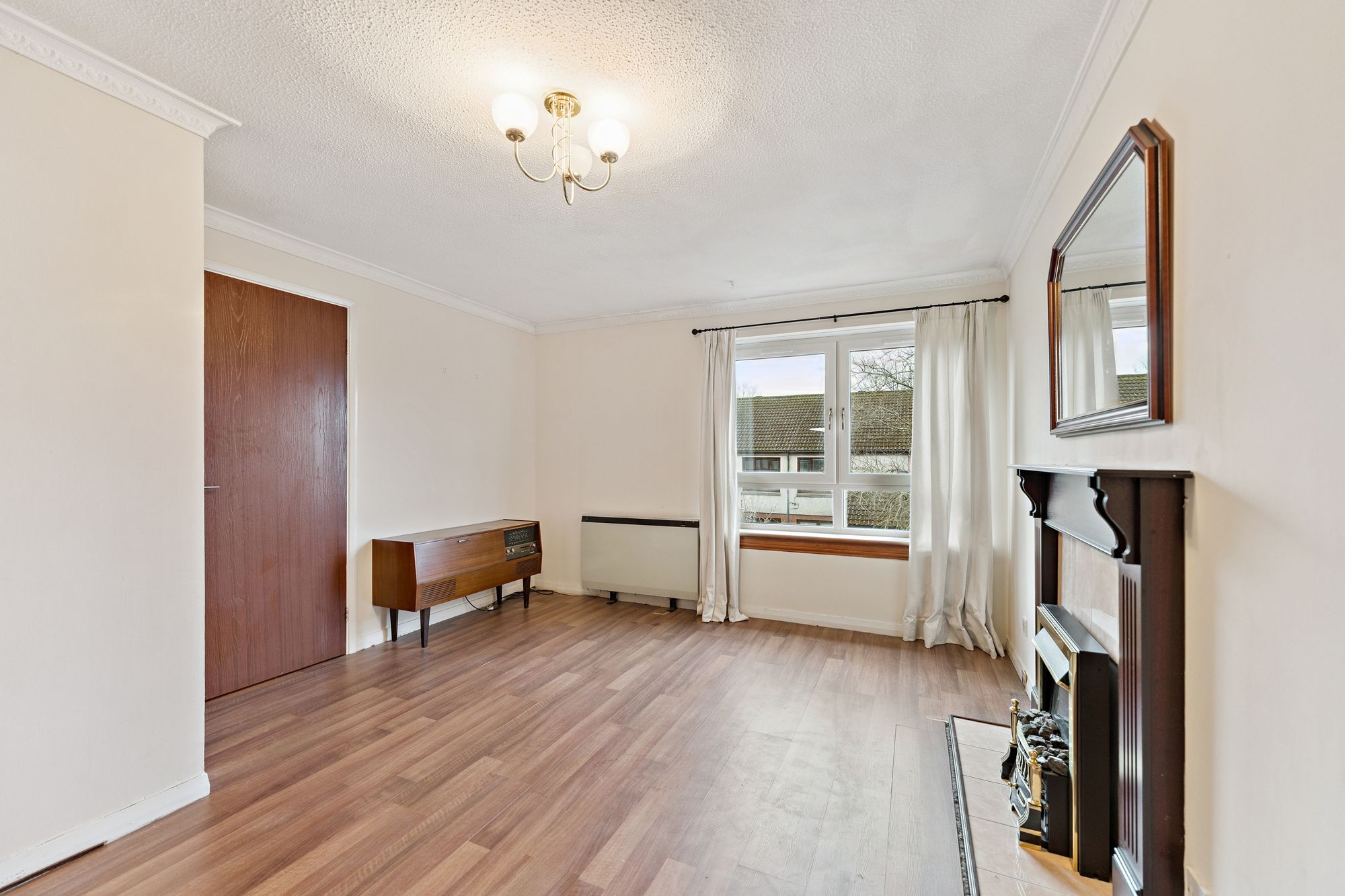 Located within the ever popular Mains Estate and positioned in a particularly quiet cul-de-sac close to local schooling and transport links, this one-bedroom, first floor, main door flat enjoys shared lawned gardens.