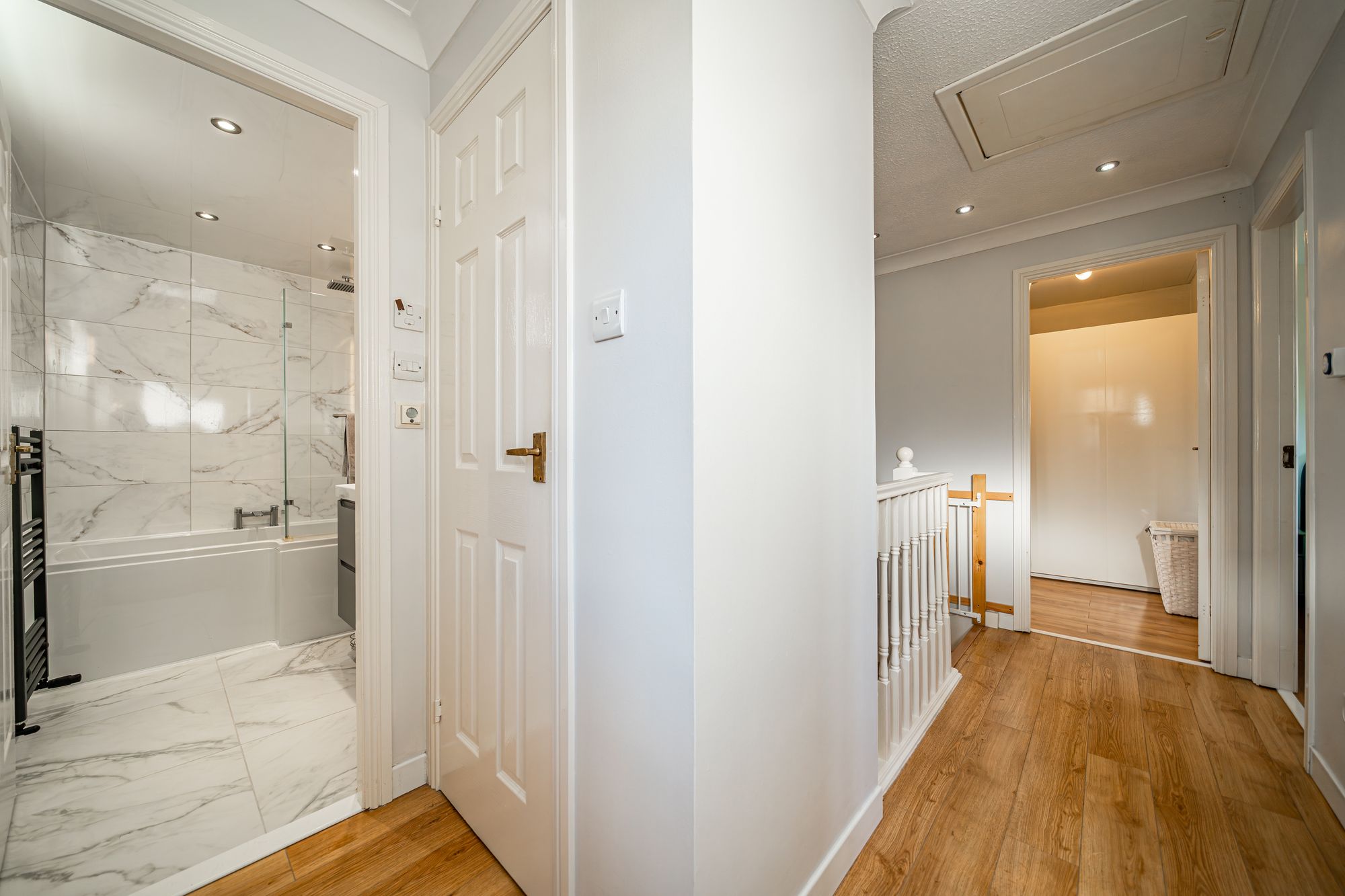 The upper level of the property has a central landing with a storage cupboard and access to all three bedrooms which comprise of two doubles (the principal benefitting from an ensuite shower room, and a further well proportioned single room. Completing the accommodation is the family bathroom which comprises of a fitted, plunge pool bath with shower above, WC and wash hand basin.