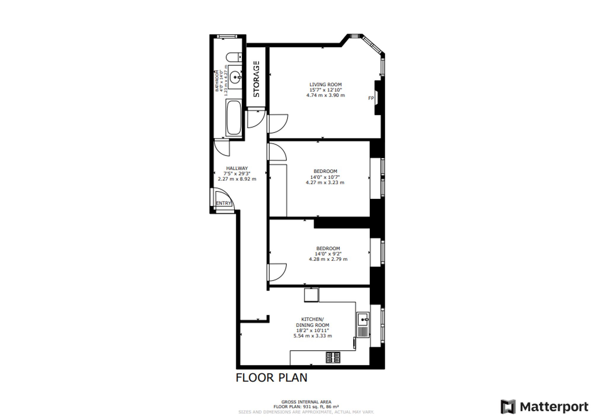 The accommodation comprises an entrance hall with two storage cupboards off, two generously sized bedrooms, an impressive bay-windowed lounge, a bathroom with shower over bath and a dining-sized kitchen fitted with a range of base and wall-mounted units.