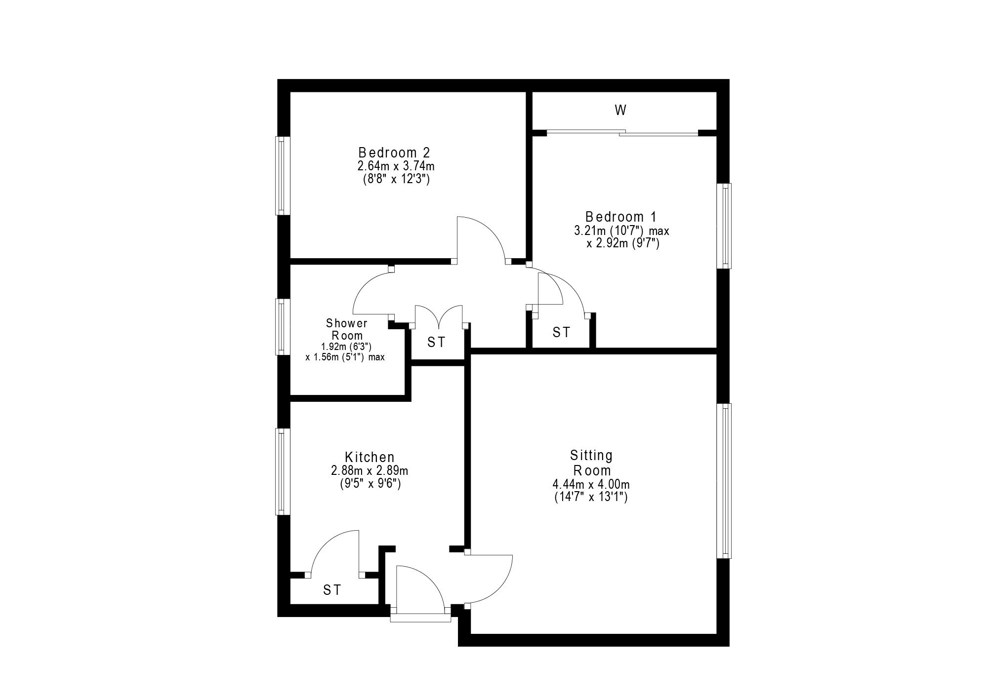 Bedroom Two 12’3” x 8’8” 3.73m x 2.64m