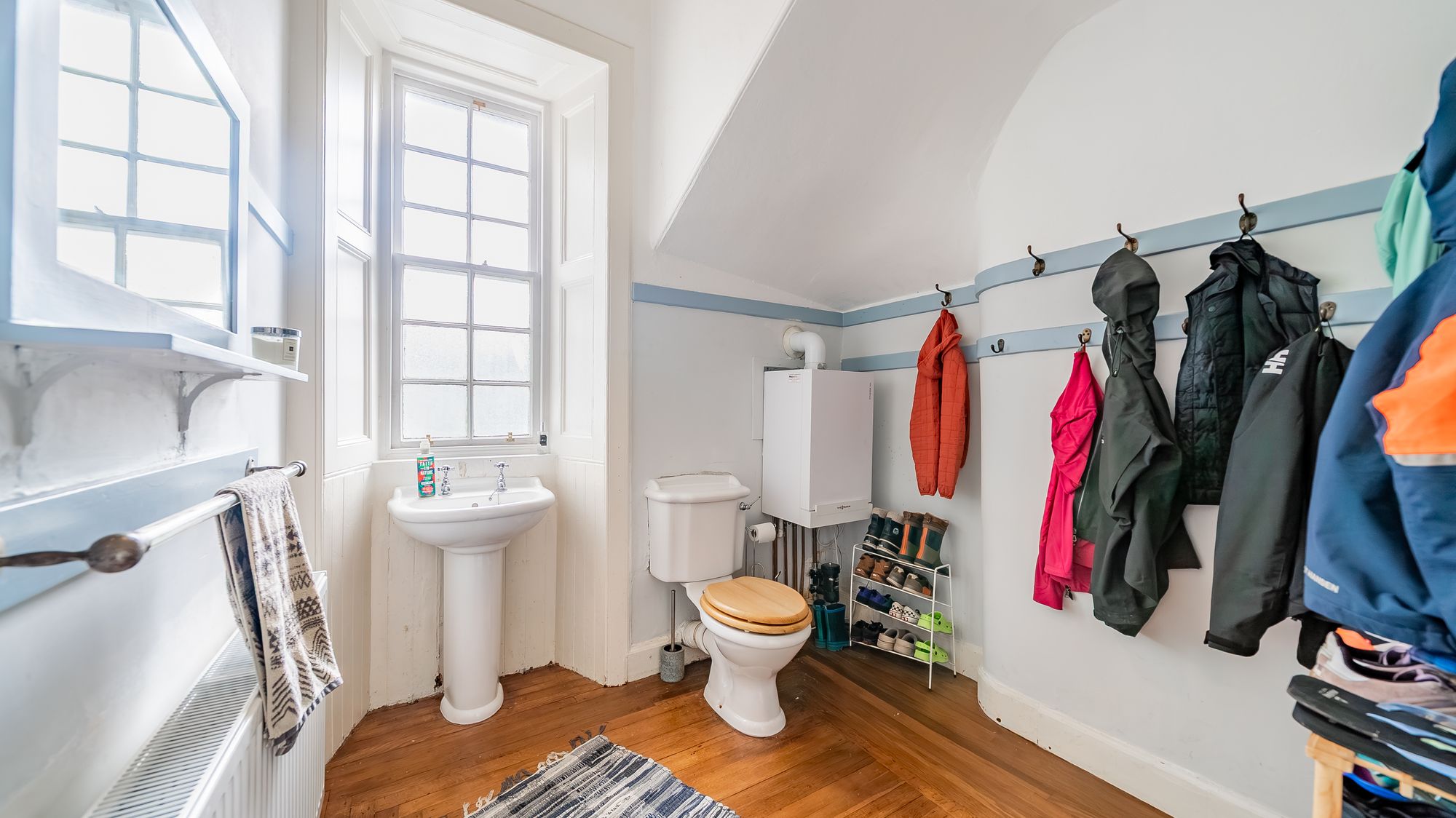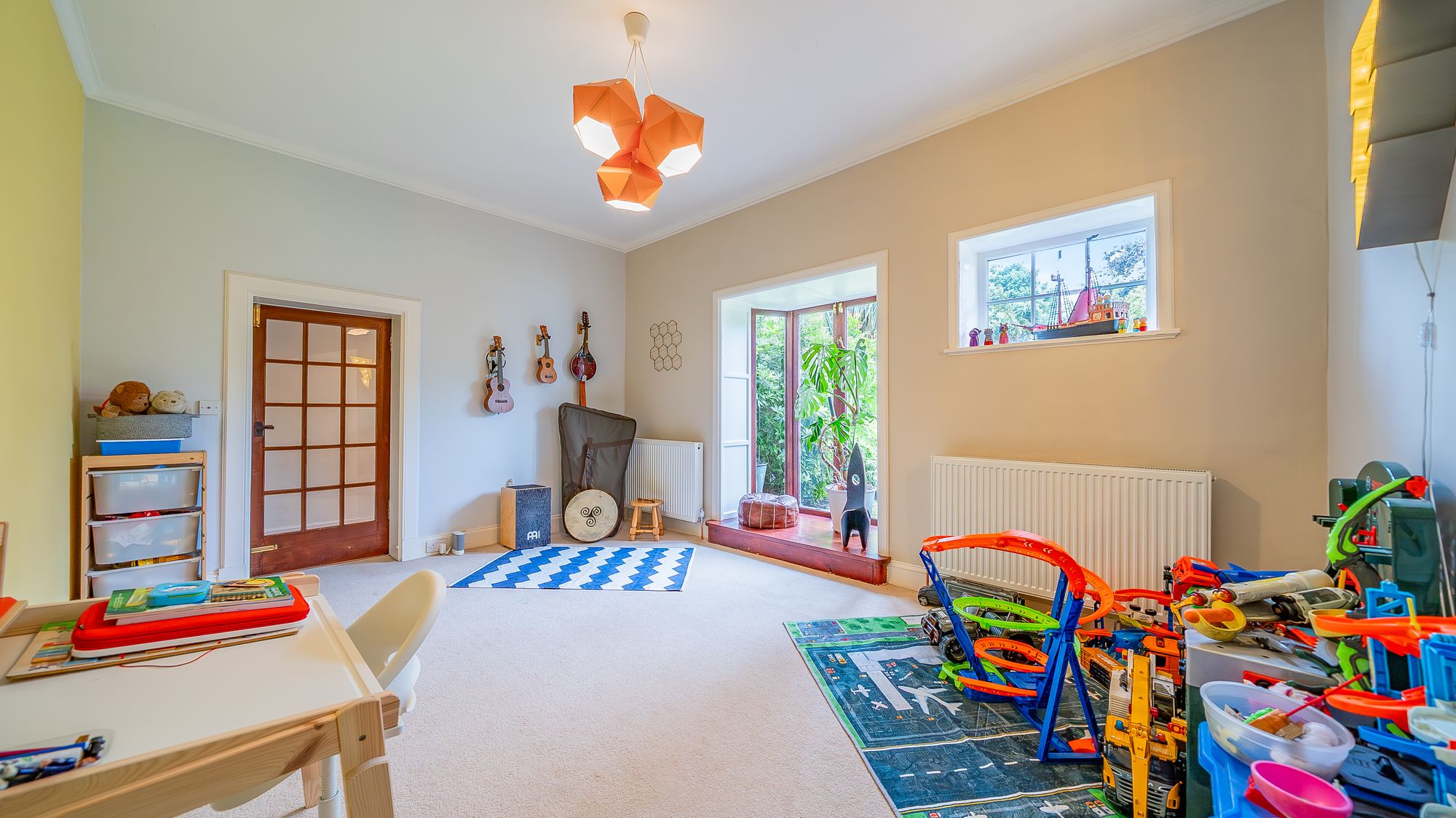 Stepping in to the property from a lovely well kept porch is a large open hallway where natural light flows through the home, leading you effortlessly to each thoughtfully designed room. Directly ahead, you'll find under stair storage space, ideal for family living. To the left, a large and bright bay windowed lounge features a log burner at its focal point and exceptional views over the garden. Across the hall lies the heart of the home, a generous open plan kitchen and dining area, featuring another beautiful bay window with garden views. The kitchen is fully equipped with wall mounted and counter level units, Belfast sink and a traditional AGA at its centre. To the rear of the kitchen is a further storage area with wall-mounted cupboards for practical organisation and additional storage. A few steps down from here leads to a large versatile room which could be used as a gym or even further storage space. Beyond this is a small hallway leading through to a small utility room, with washer and dryer. Also on this level is another sizeable and bright public room, currently being used as a children’s play room, with patio doors out on to the mature garden grounds, an ideal indoor-outdoor space for families. Moving back to the main reception hall is a spacious downstairs wc/cloakroom with wash hand basin and wc, plenty of room to hang outdoor jackets and it also has a traditional sash window. Lastly on this floor is a large study area, which could also be used as a spacious fourth bedroom. This room has a traditional large sash window overlooking West King Street and off here is a further room for storage, again perfect for family living.