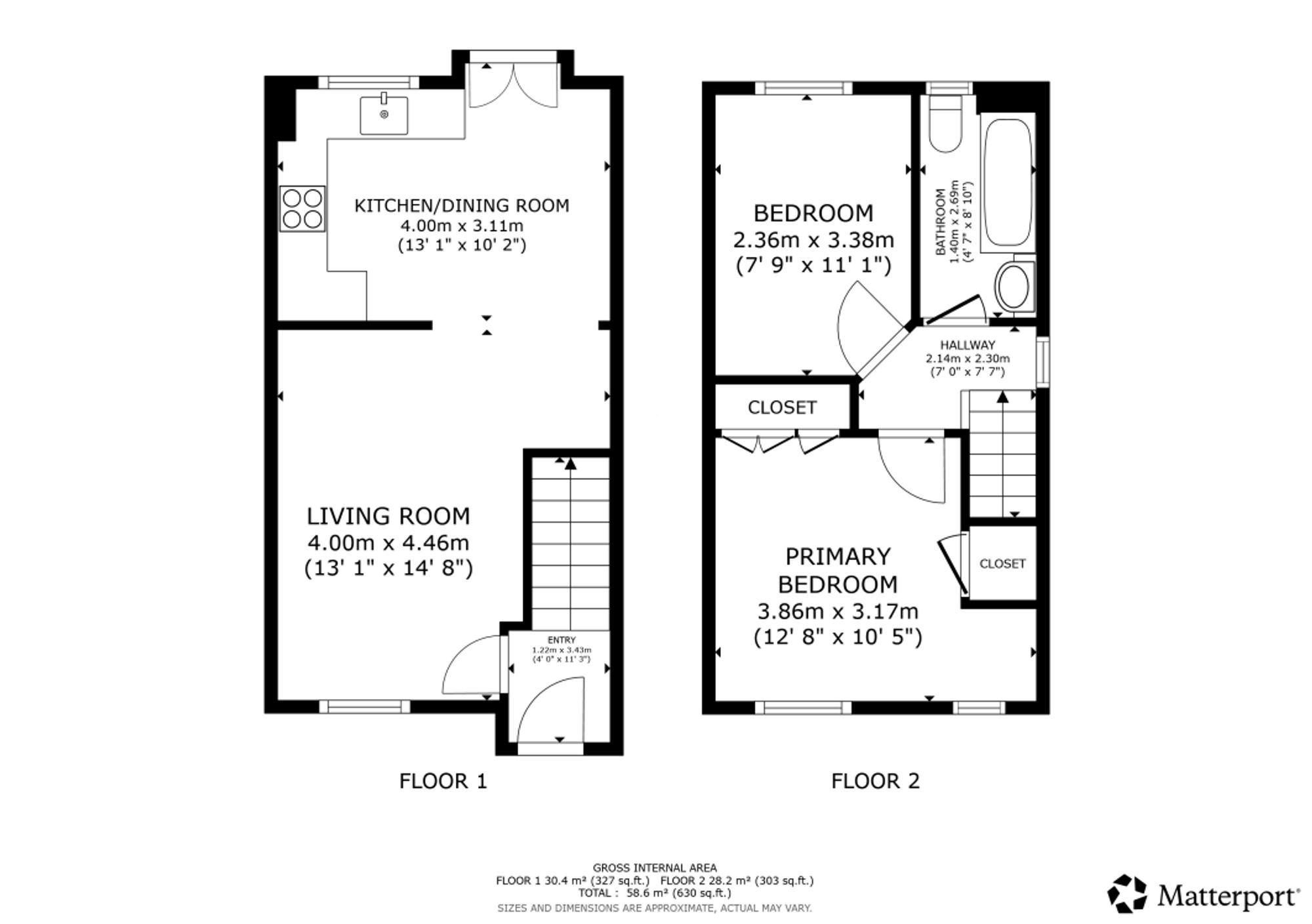Upstairs, the property offers two generous double bedrooms, each providing ample space and natural light. The family bathroom completes this level, featuring a three-piece suite with a shower over the bath for added convenience.