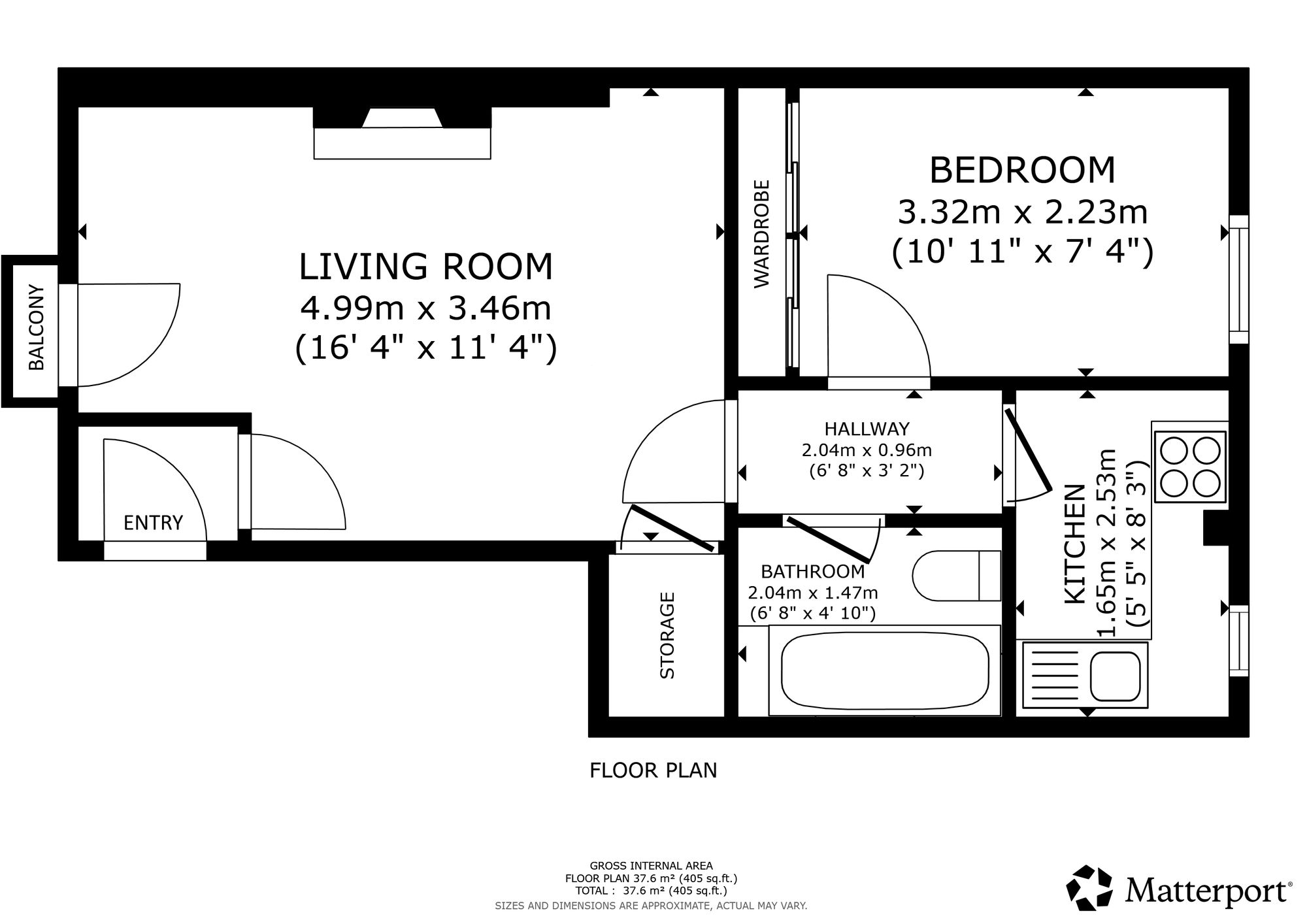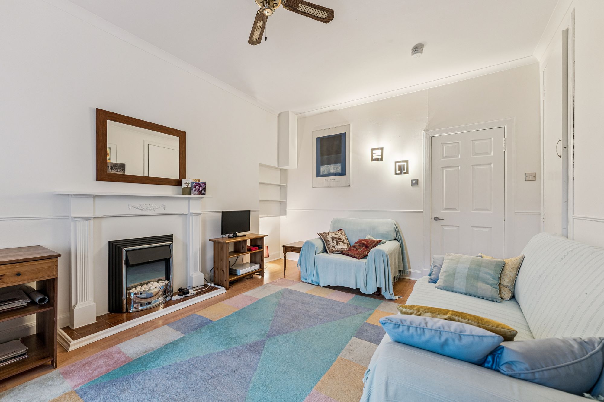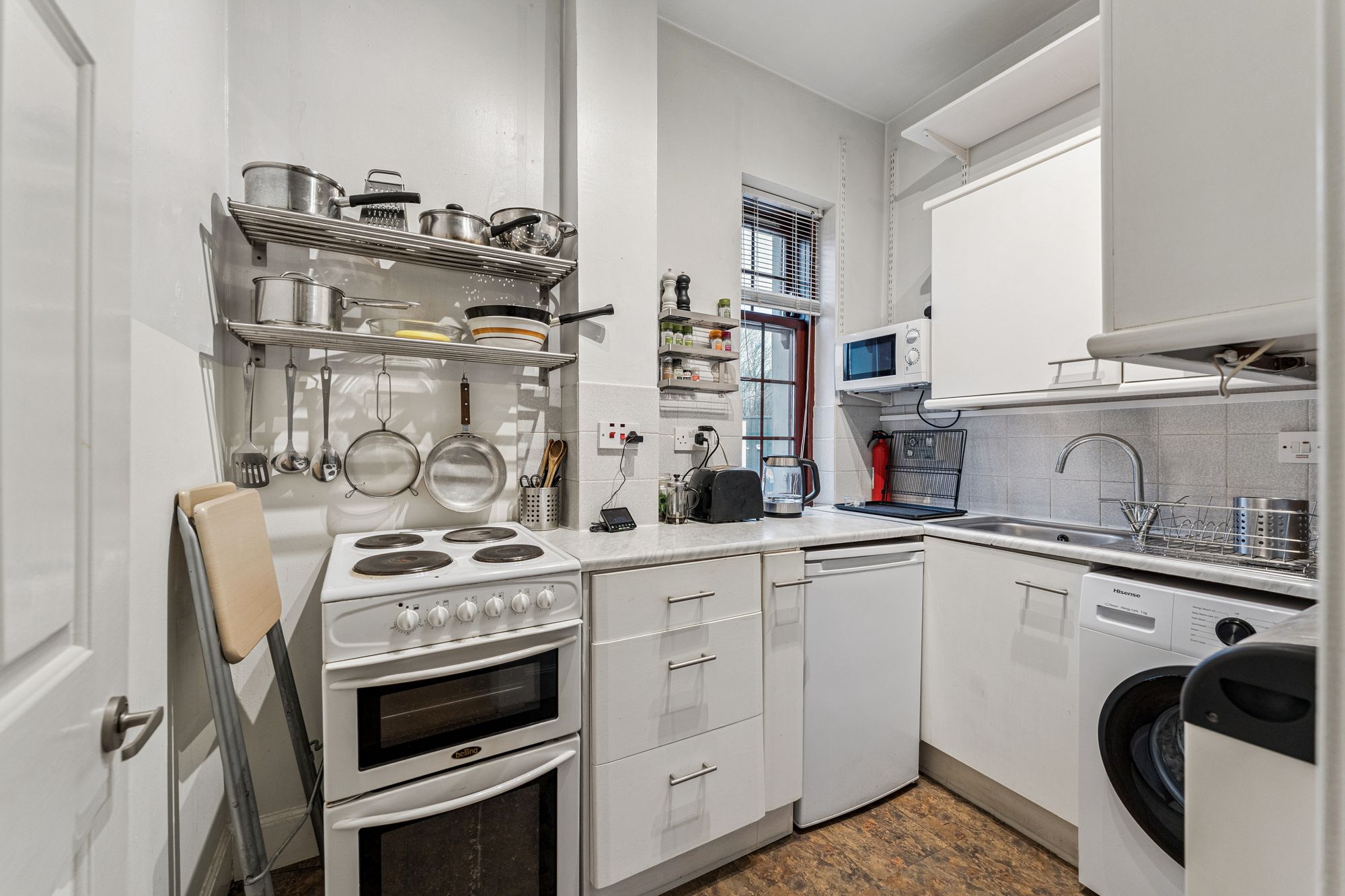 The attached photographs, floor plan and HD video tour will give an idea to the size and layout of the flat. However, in brief the accommodation extends to; spacious living room with ample space for dining, and a balcony off. There is a bathroom with three piece suite and shower over the bath, a double bedroom with built in storage and the accommodation is completed by a kitchen with base and wall mounted units.