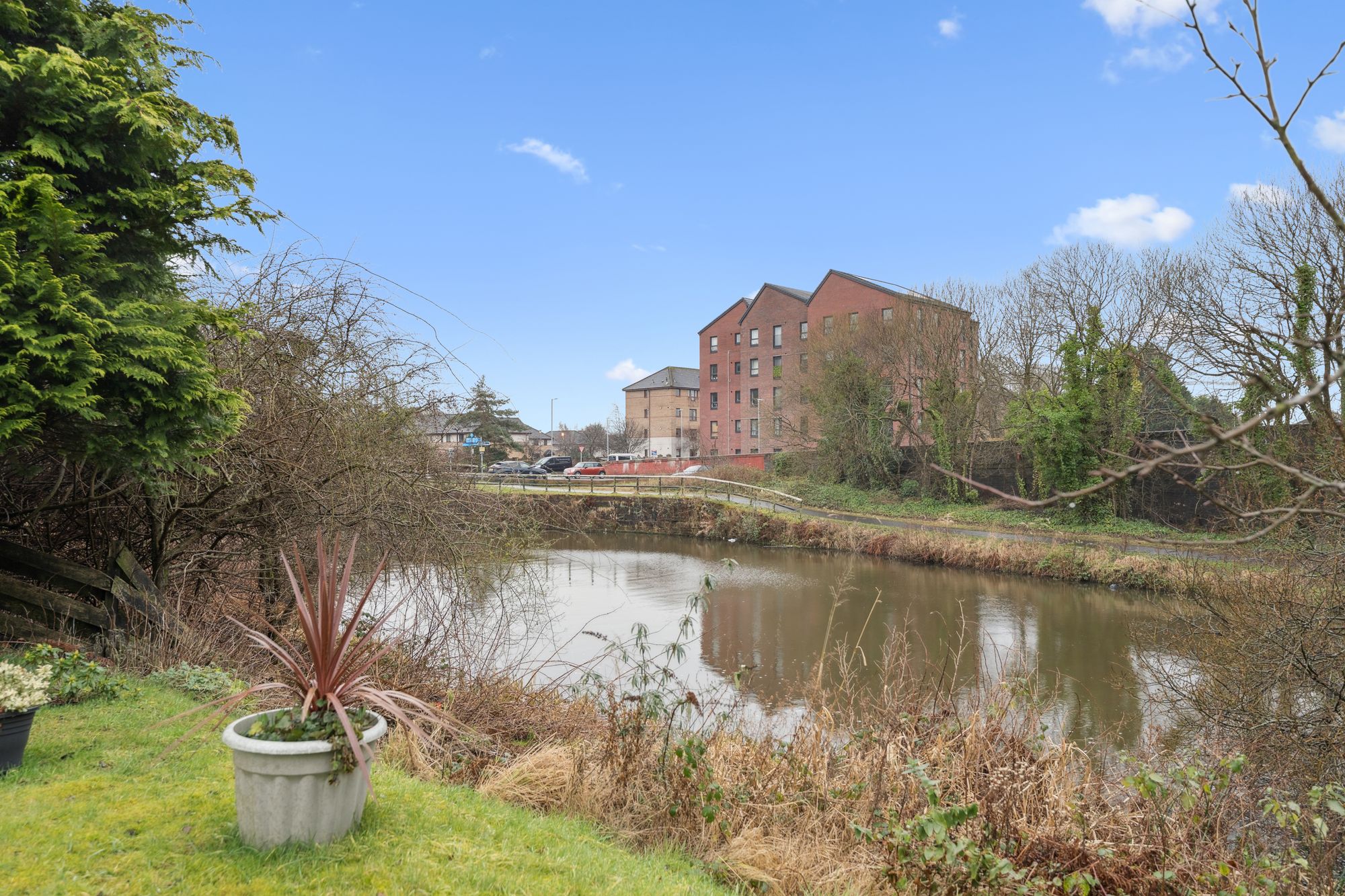 The development backs towards the Forth & Clyde Canal and as such it is possible to gain quick access to the tow path for evening walks or weekend cycles, there is also an area of grass where residents can relax by the canal. The building itself is accessed via a secure entry system with stairs providing access to the first floor.
