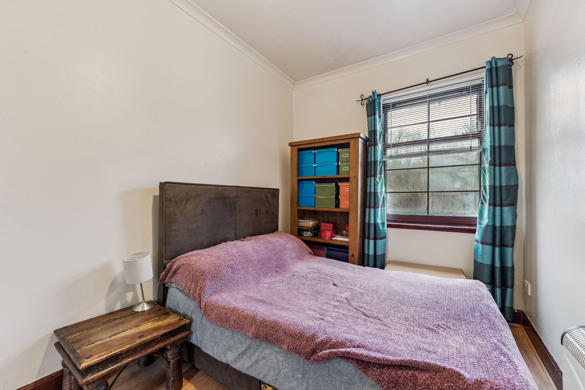 Benefitting from a peaceful position, on the edge of the Forth and Clyde canal this one bedroom first floor flat offers bright and spacious accommodation with the added advantage of off-street parking.