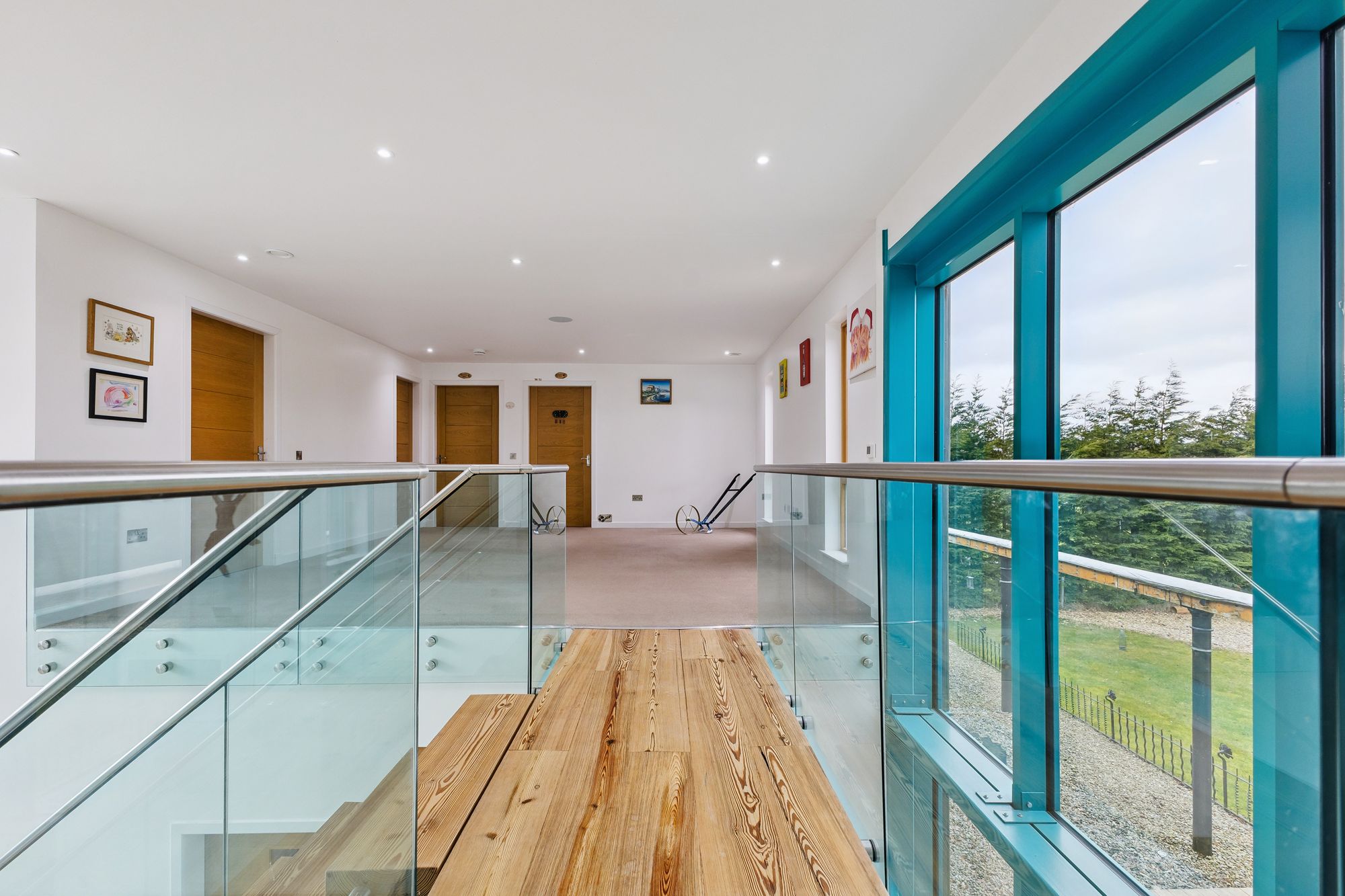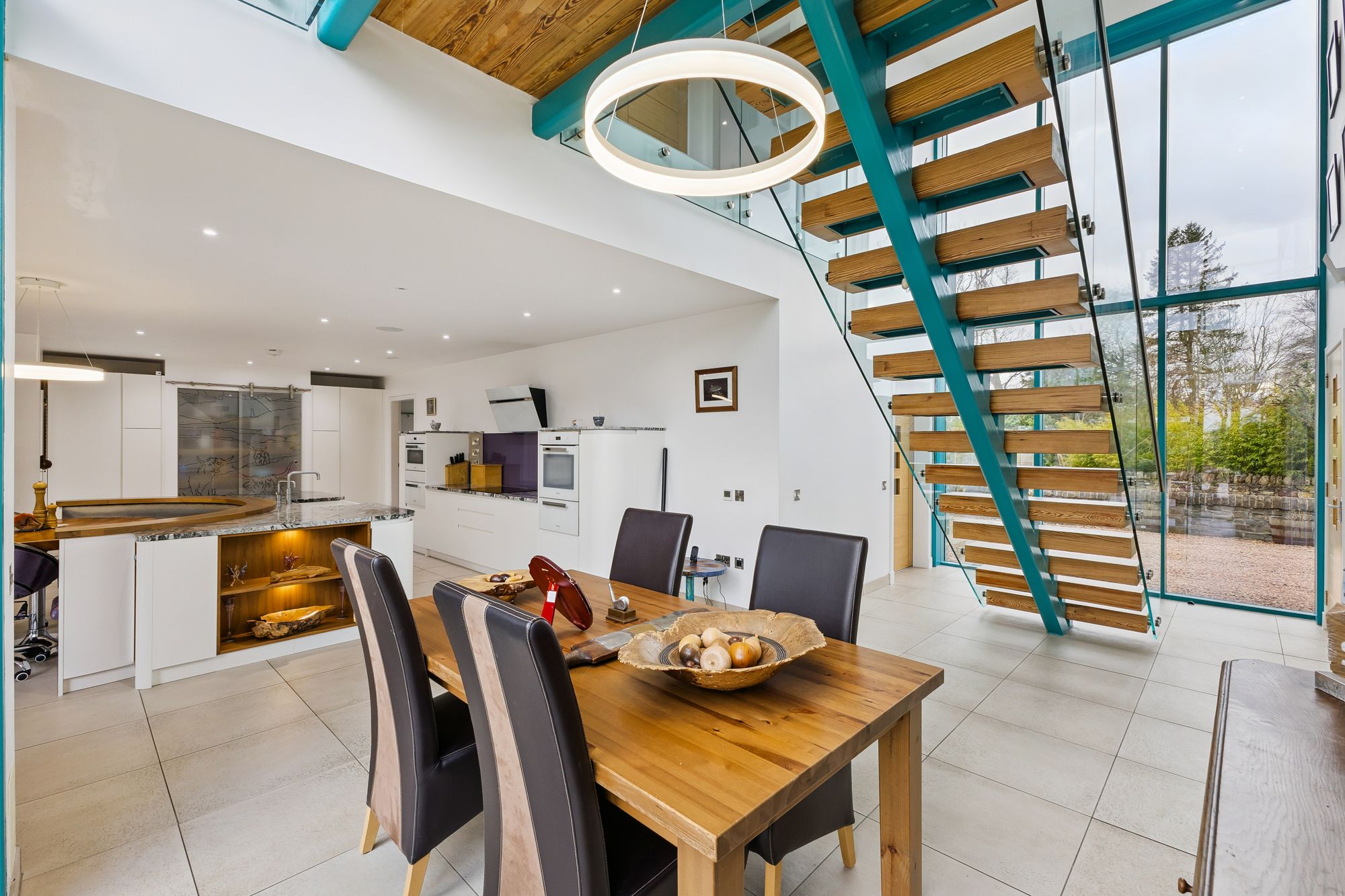 Ryehill Oaks is an impressive architecturally designed five-bedroom detached family home, set in a quiet rural setting between Coupar Angus and Blairgowrie in Perthshire. The contemporary home has many striking and bold design features, making this a truly unique property.