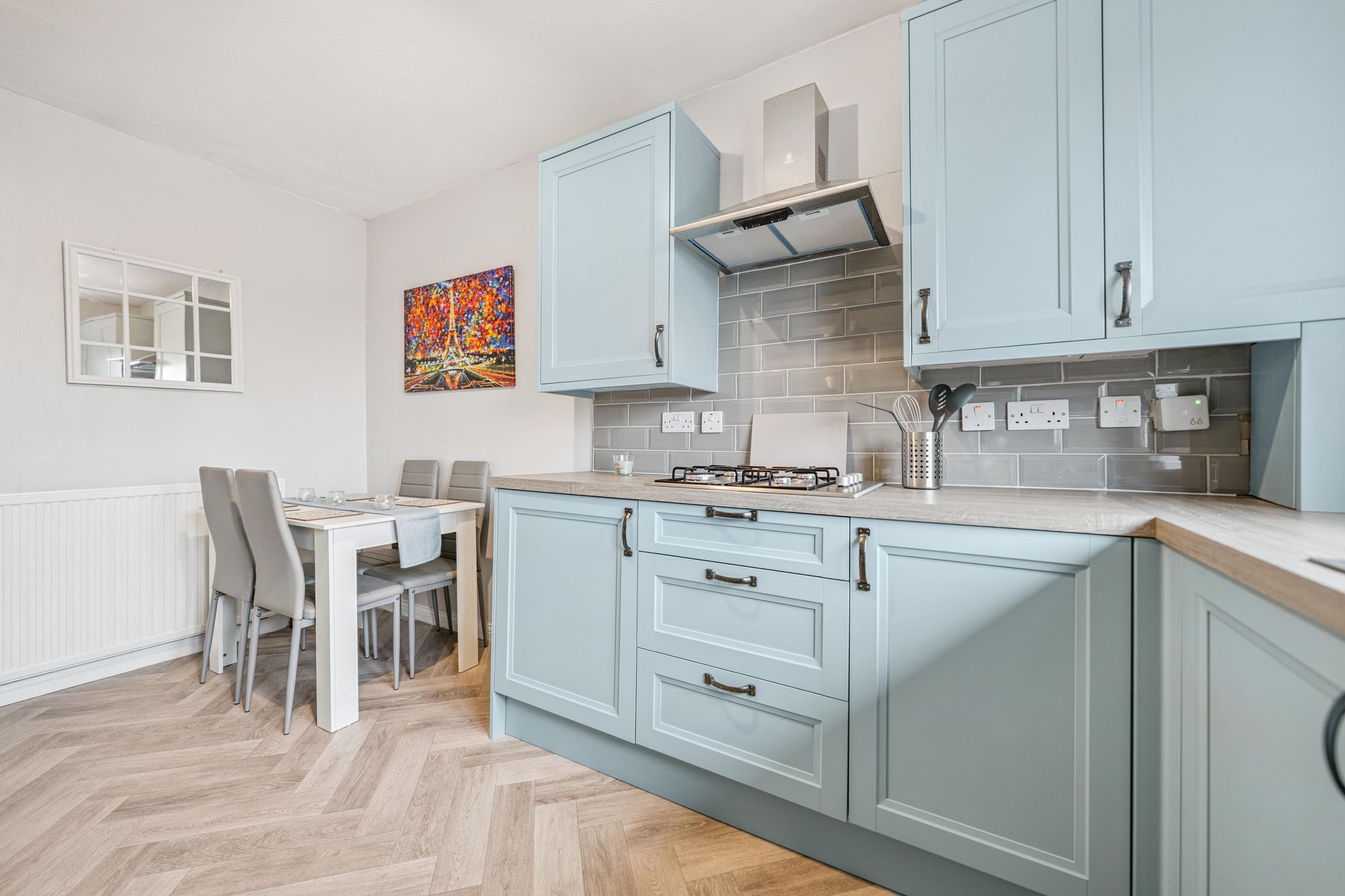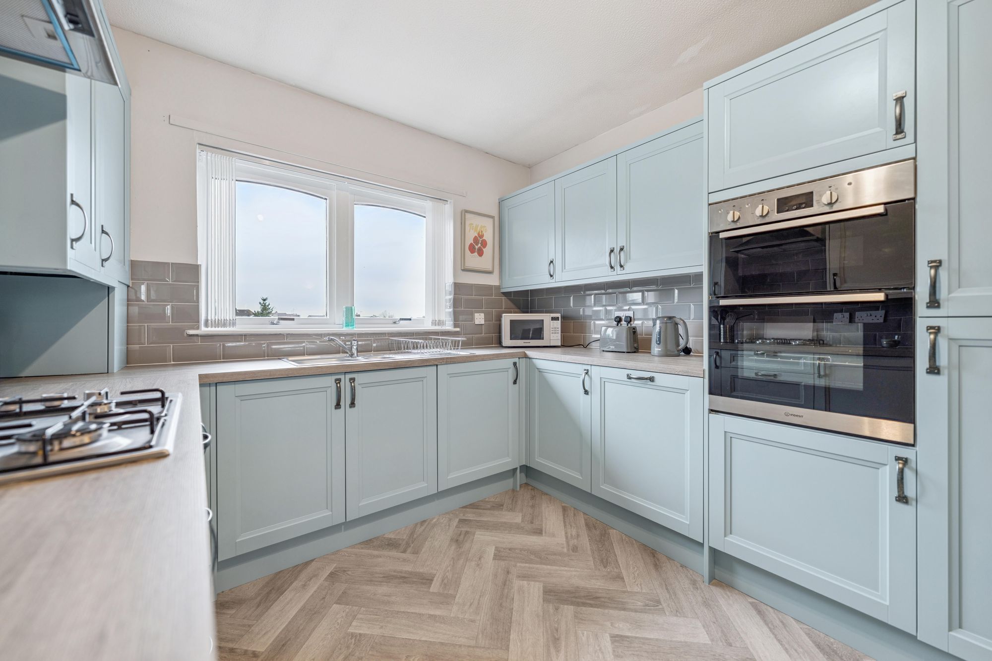 Internally, the accommodation comprises a welcoming reception hallway with a large storage cupboard off. The bright and spacious lounge enjoys a charming square bay window formation with a delightful open outlook, creating an excellent main living and entertaining space. The stunning modern kitchen is dining-sized and fitted with a range of sleek base and wall-mounted units, integrated appliances, and ample space for a dining table and chairs.
