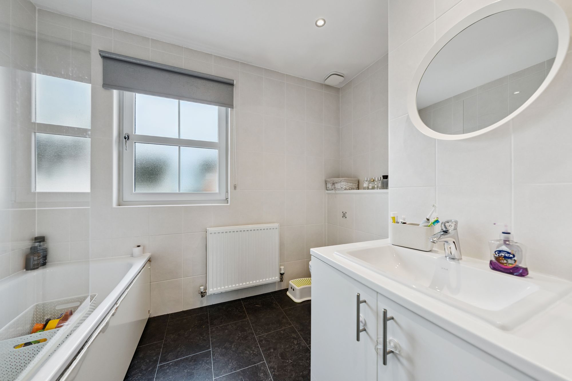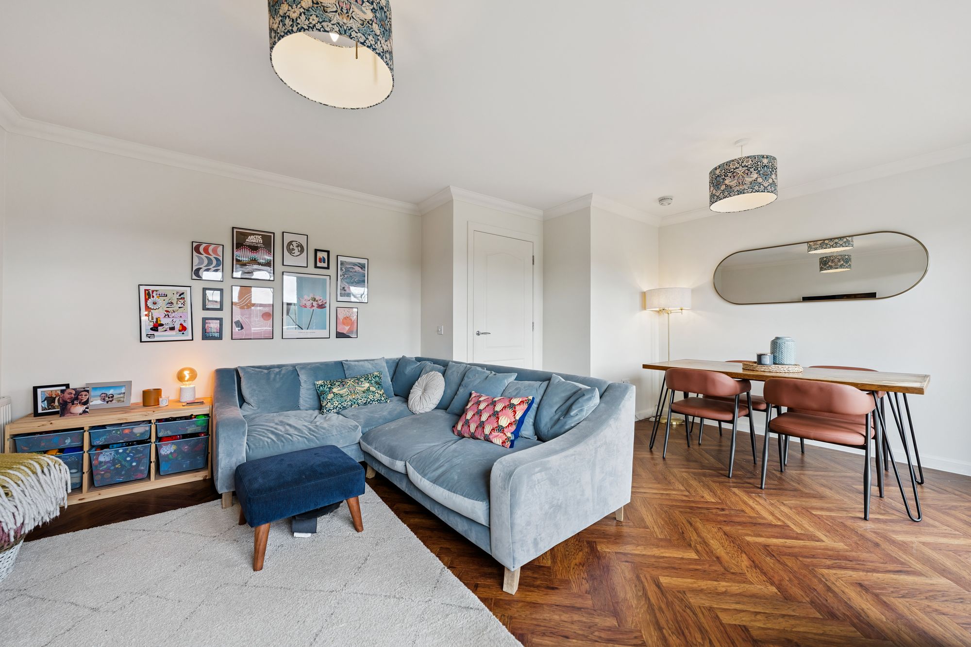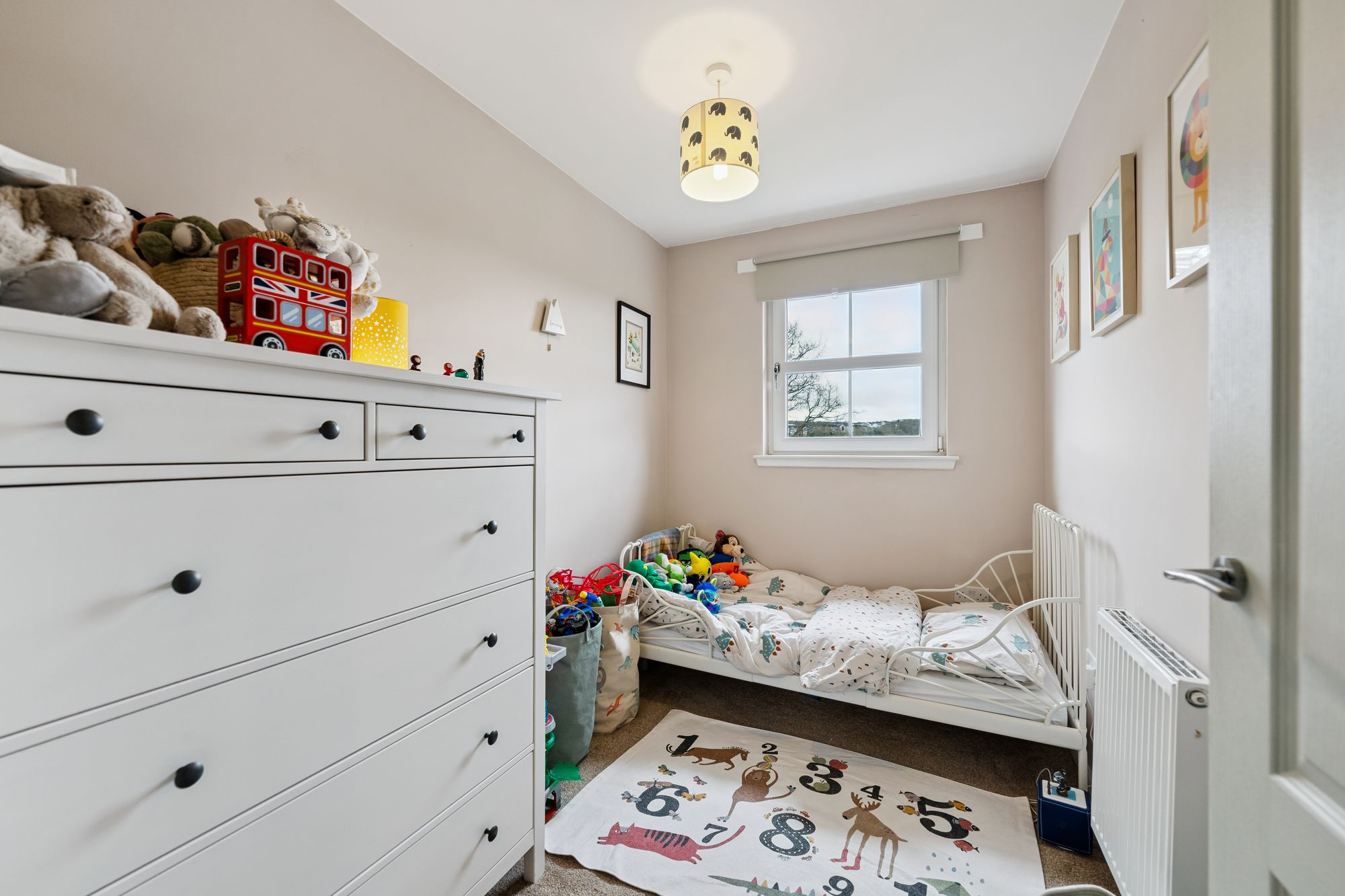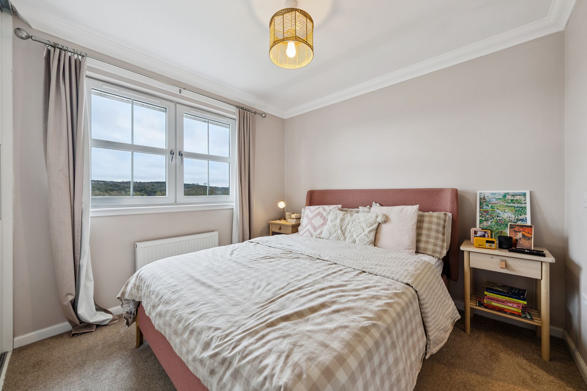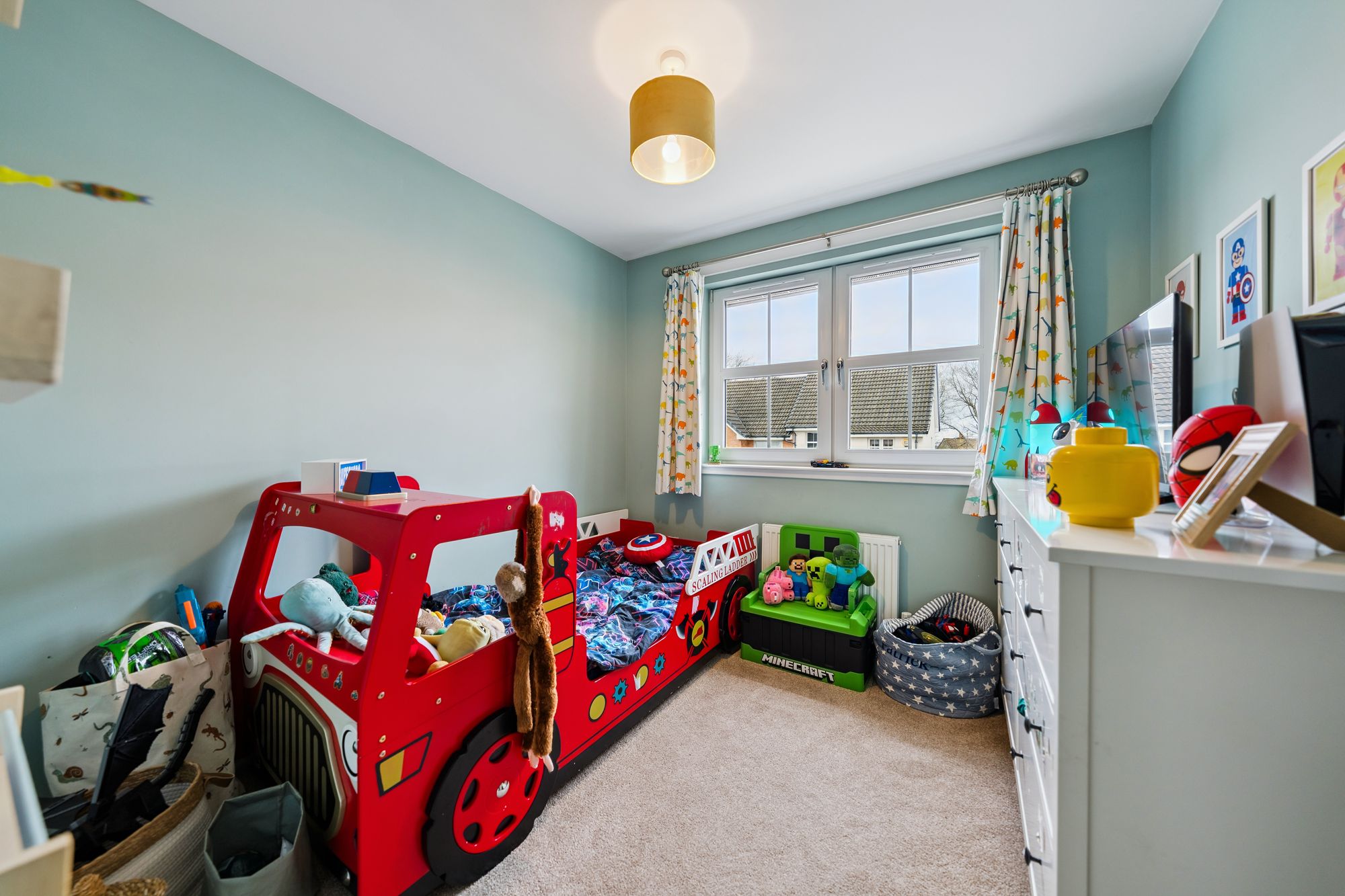 On the upper level, a landing with additional storage leads to three well-proportioned bedrooms. Two are generous doubles, both benefiting from in-built storage, with the principal bedroom further enhanced by a sleek en-suite shower room. A third bedroom offers flexibility as a child’s room, home office, or guest space. Completing the accommodation is a beautifully presented family bathroom, fitted with a three-piece suite and shower over bath.