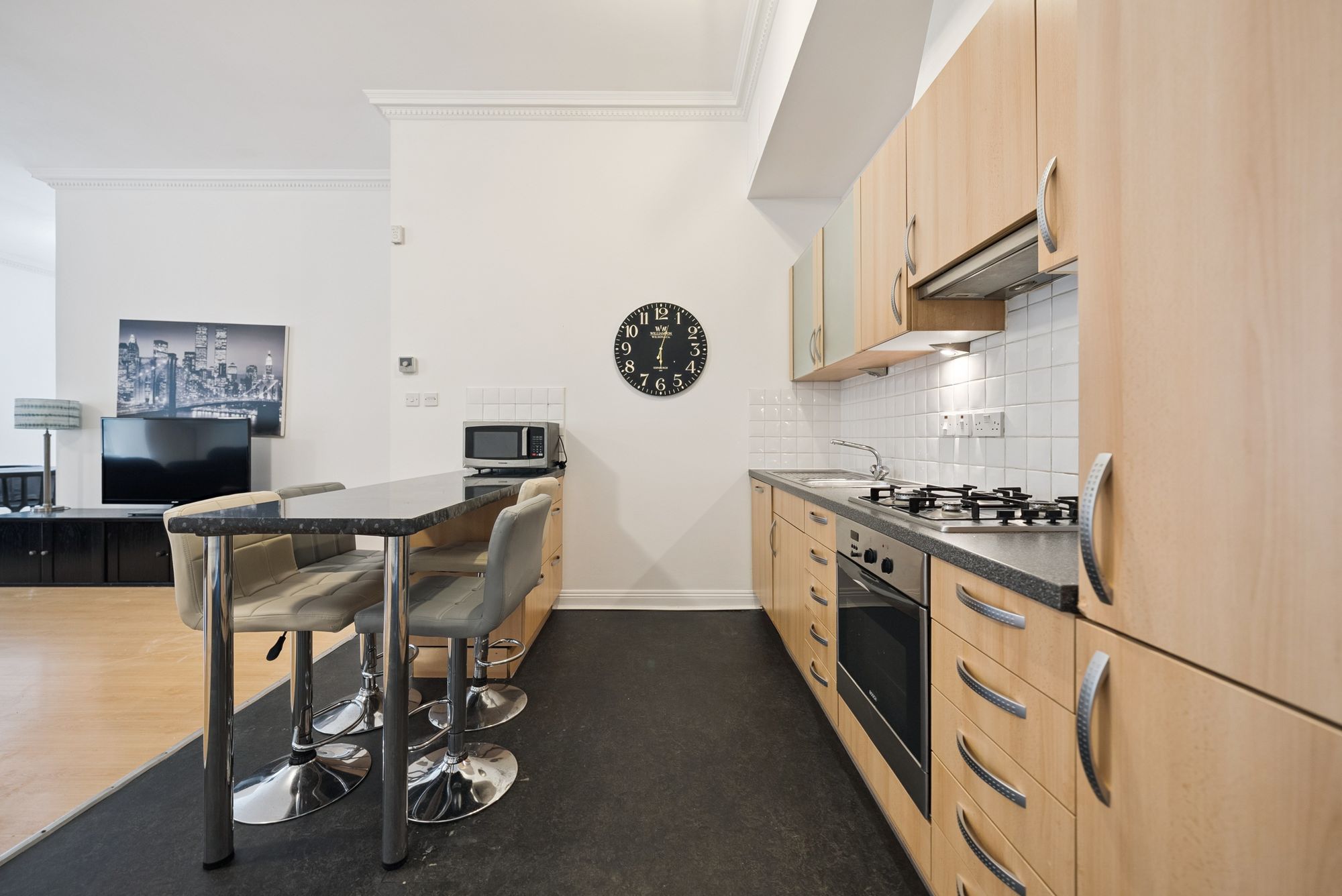 The area has seen significant improvement in recent years with a mix of both residential and commercial redevelopment and this flat offers an incredibly convenient City Centre address, located between Ingram Street and Argyle Street, the property is exceptionally well placed for everyday shopping and there are excellent transport links including Queen Street Station and Glasgow Central Train Station together with access to The University of Strathclyde and Glasgow Caledonian University.