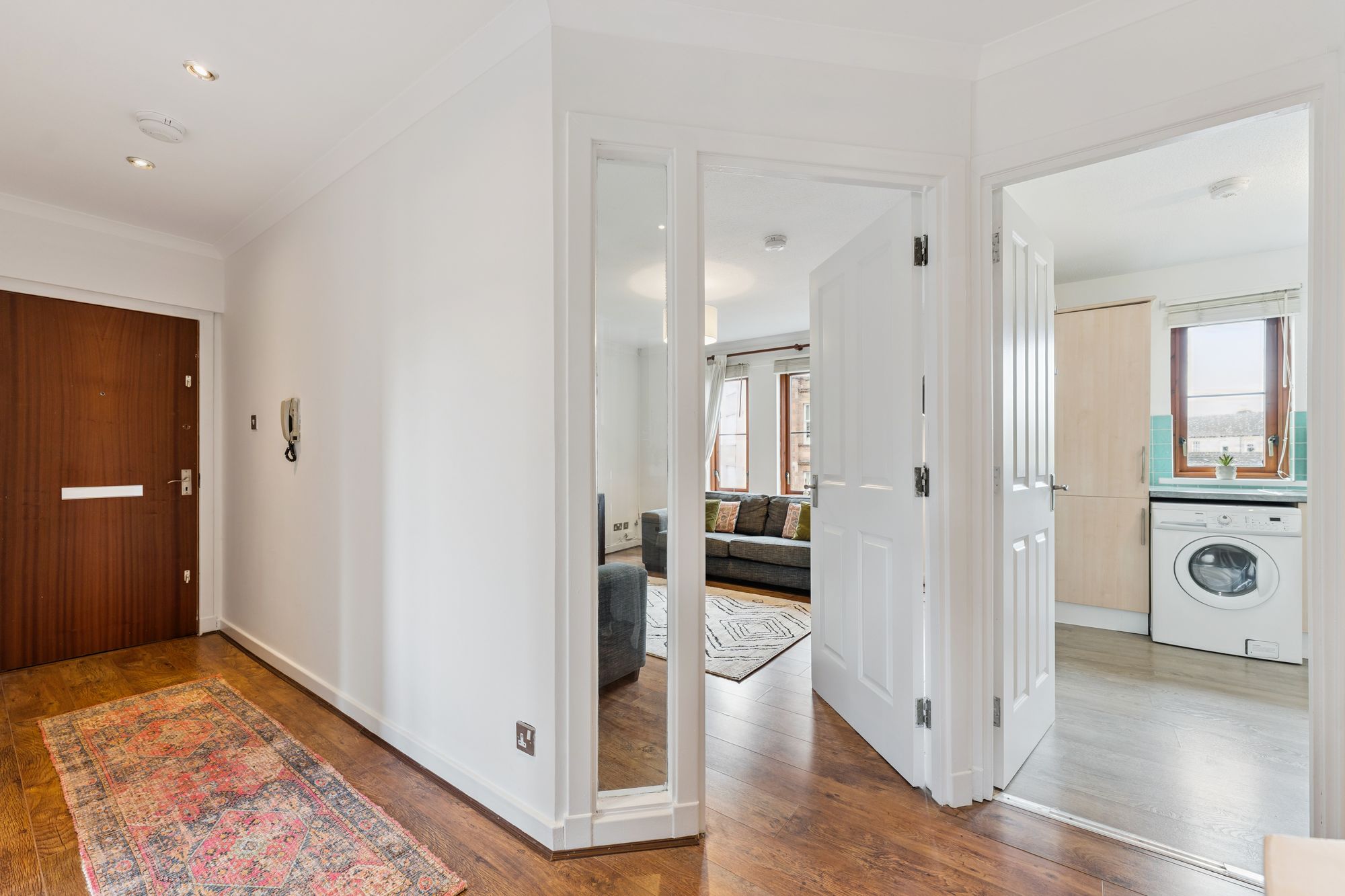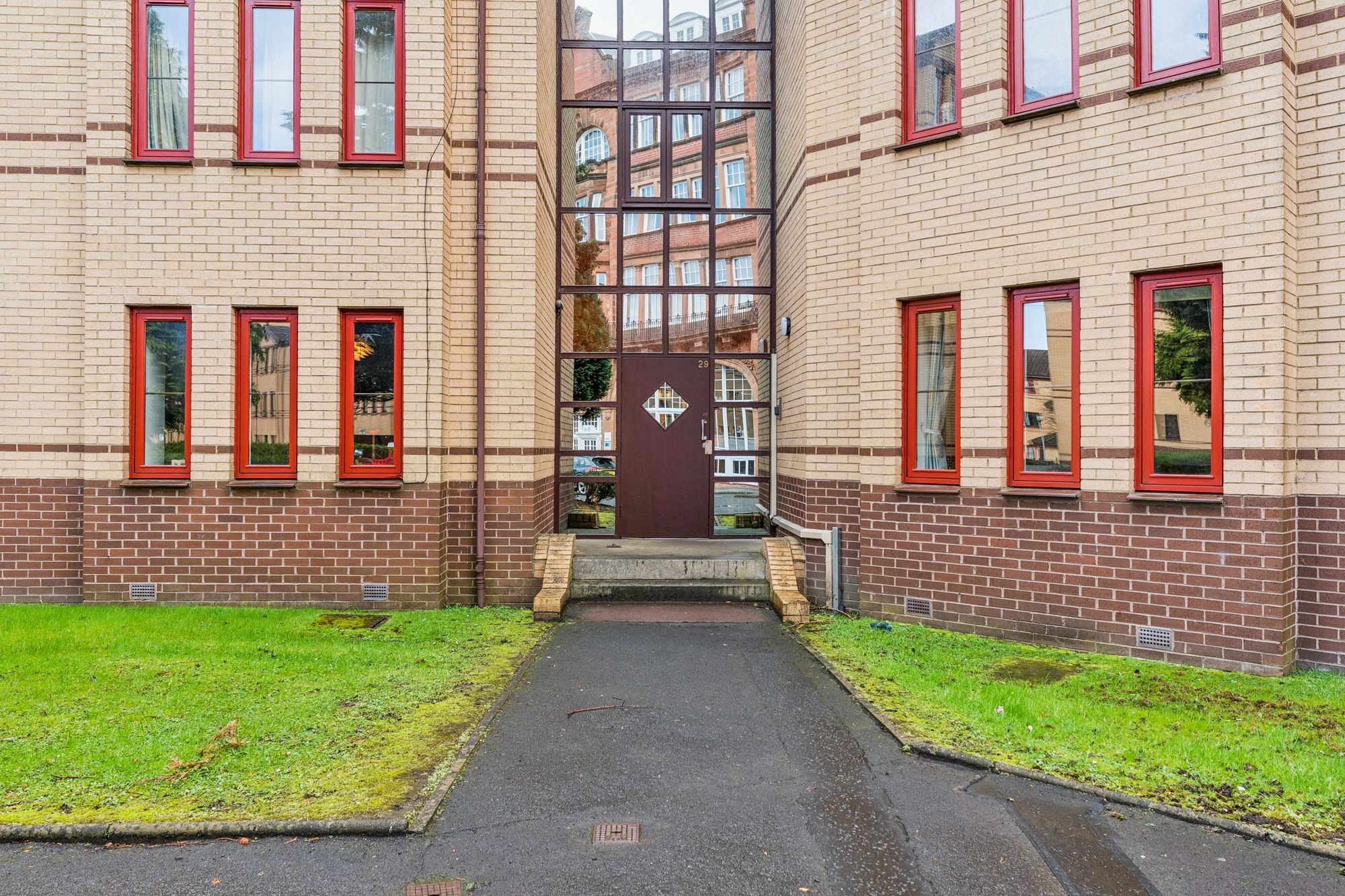 A variety of public transport services are also readily available with multiple bus routes running along Great Western Road. The home for sale is held on the top floor within a modern low-rise apartment block and externally is found in superb condition thanks to the appointed factor. Access into number 29 is via a secure door with buzzer entry system. At the rear of the building, you will find refuse stores and a private car park.