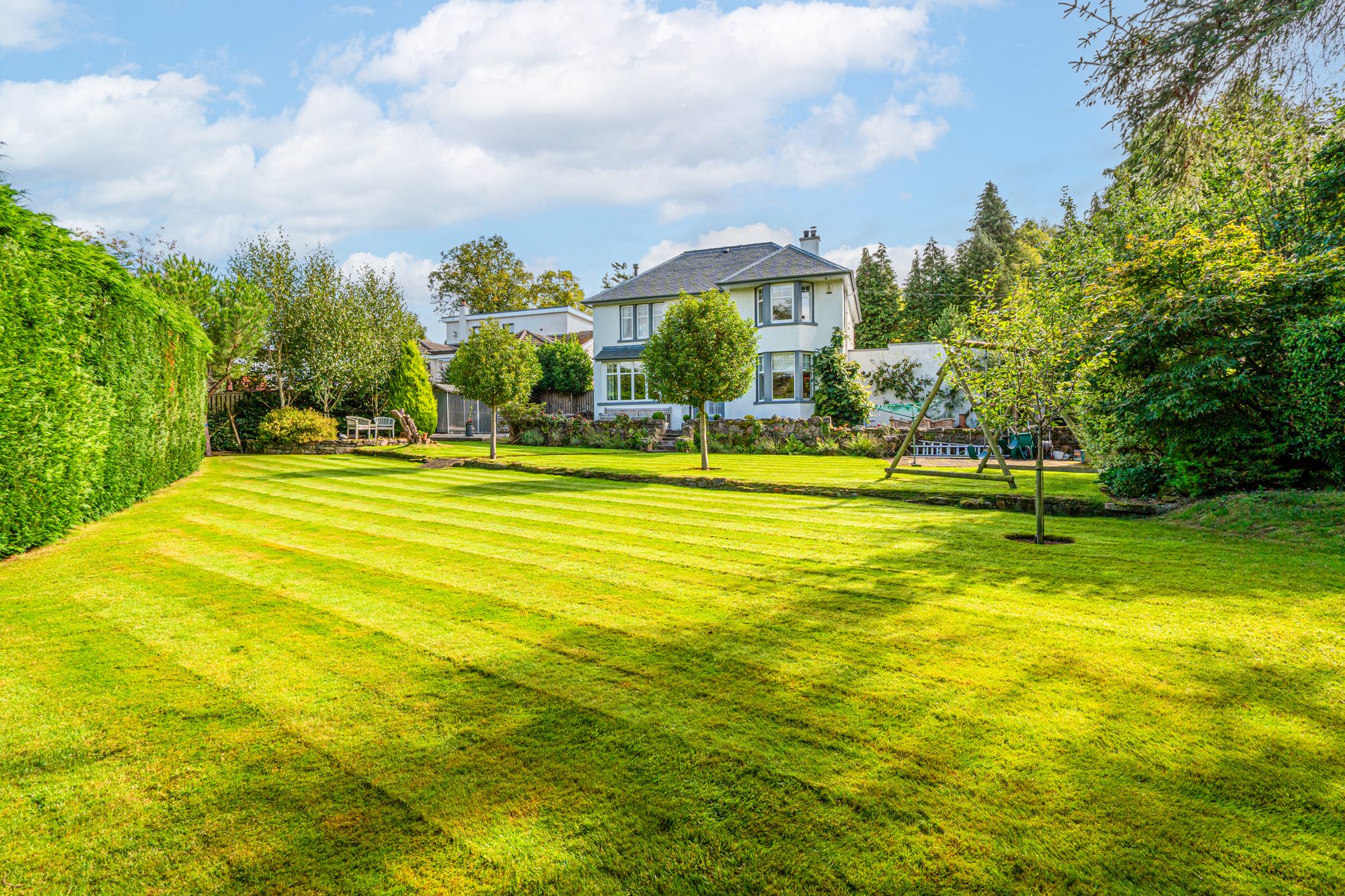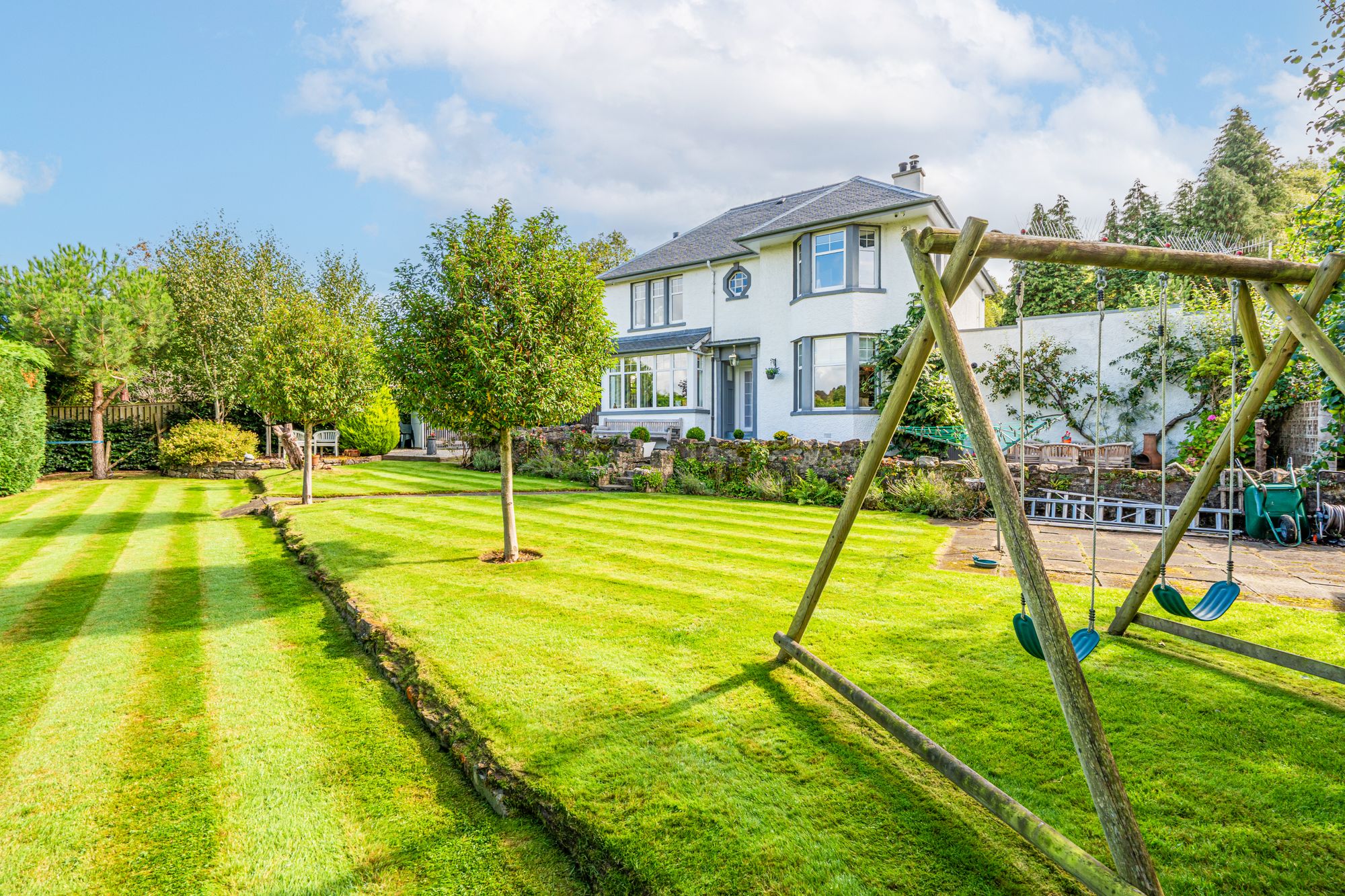 Externally, Strathview sits within beautifully maintained private garden grounds. The gardens offer a mix of mature lawns, established planting, and seating areas, all bounded by original stone walls and hedges that provide a high degree of privacy. The rear garden is west-facing, allowing the property to enjoy sunshine throughout the day.