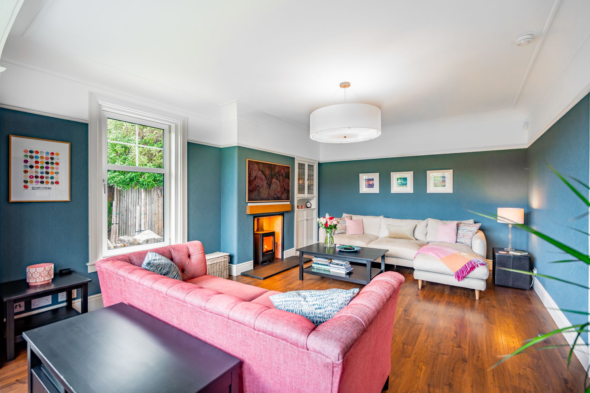 A formal dining room sits adjacent, ideal for entertaining or family meals, while the well-appointed kitchen provides excellent storage and workspace, with direct access to the rear vestibule and garden beyond. Also on this level is a versatile room that can be used as a ground-floor bedroom or home office, along with a conveniently located toilet.