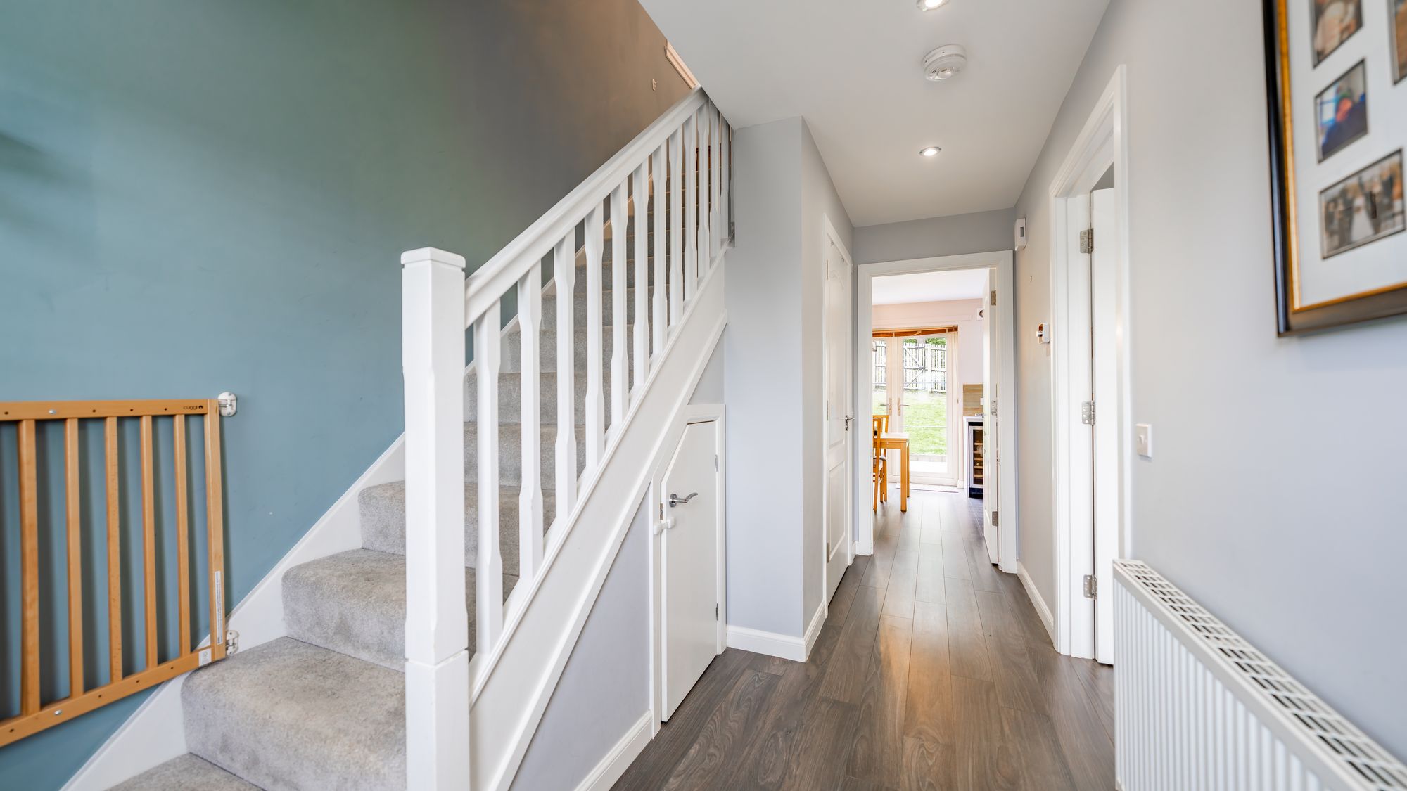 Upstairs, you'll find the master bedroom with built-in wardrobes and a stylish en-suite shower room with a walk-in shower. The second double bedroom also benefits from integrated wardrobes, while the fully tiled family bathroom offers a modern three-piece suite with a vanity unit. There is one further bedroom which could be a fantastic home office for those who now find themselves working from home.