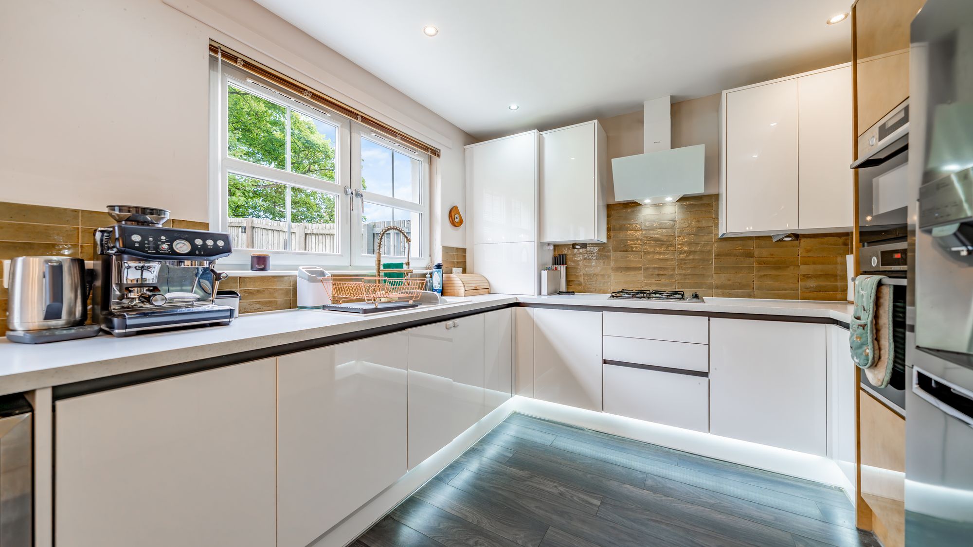 Additional features include double glazing, gas central heating and high-quality flooring throughout. The home is decorated in a contemporary, neutral style, providing a move-in ready feel.