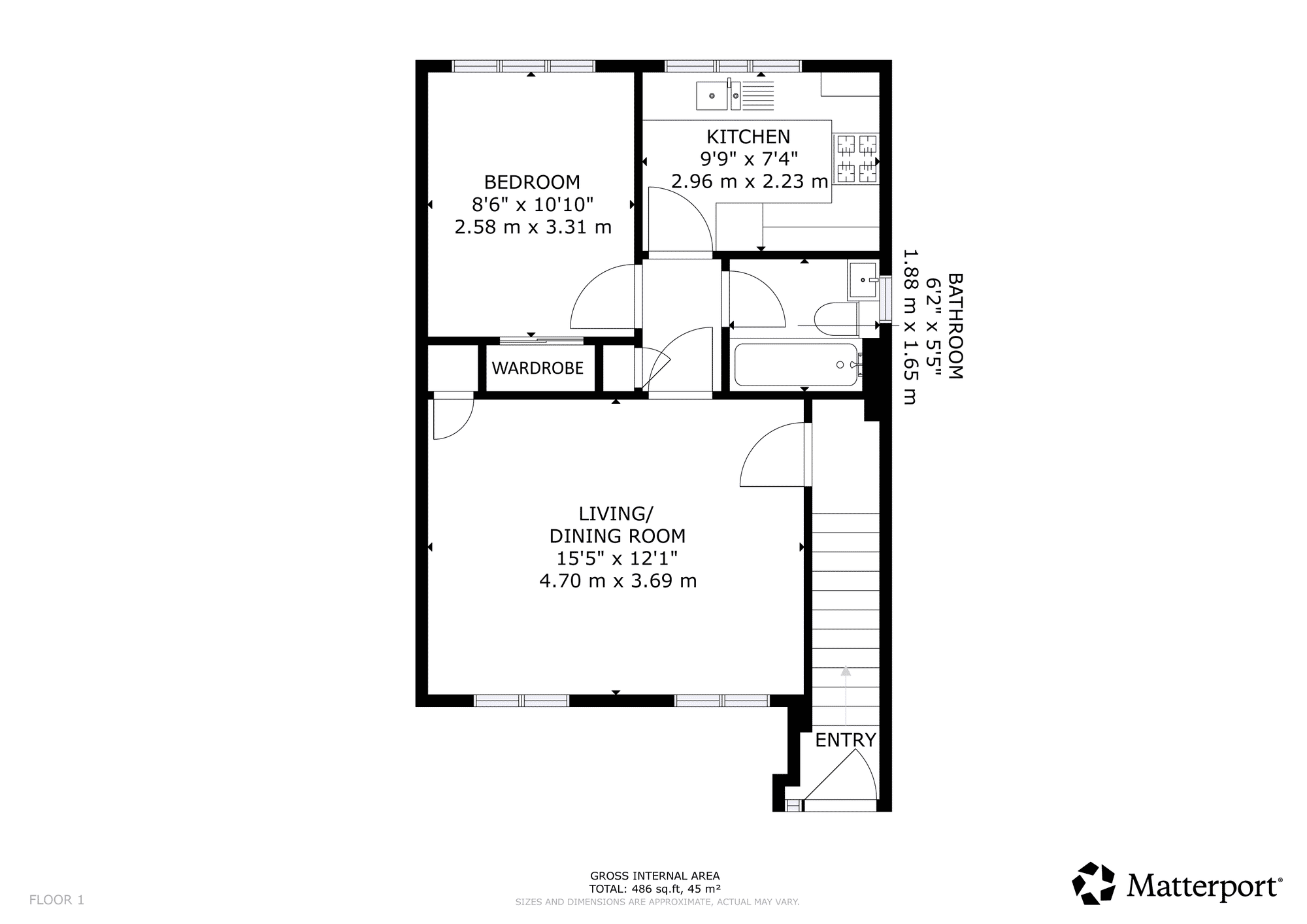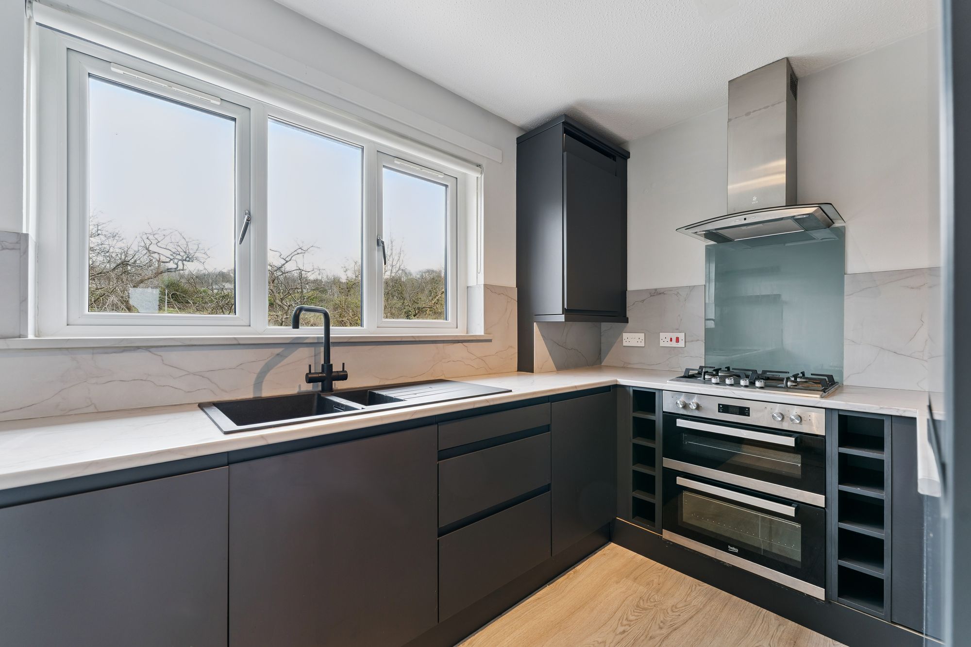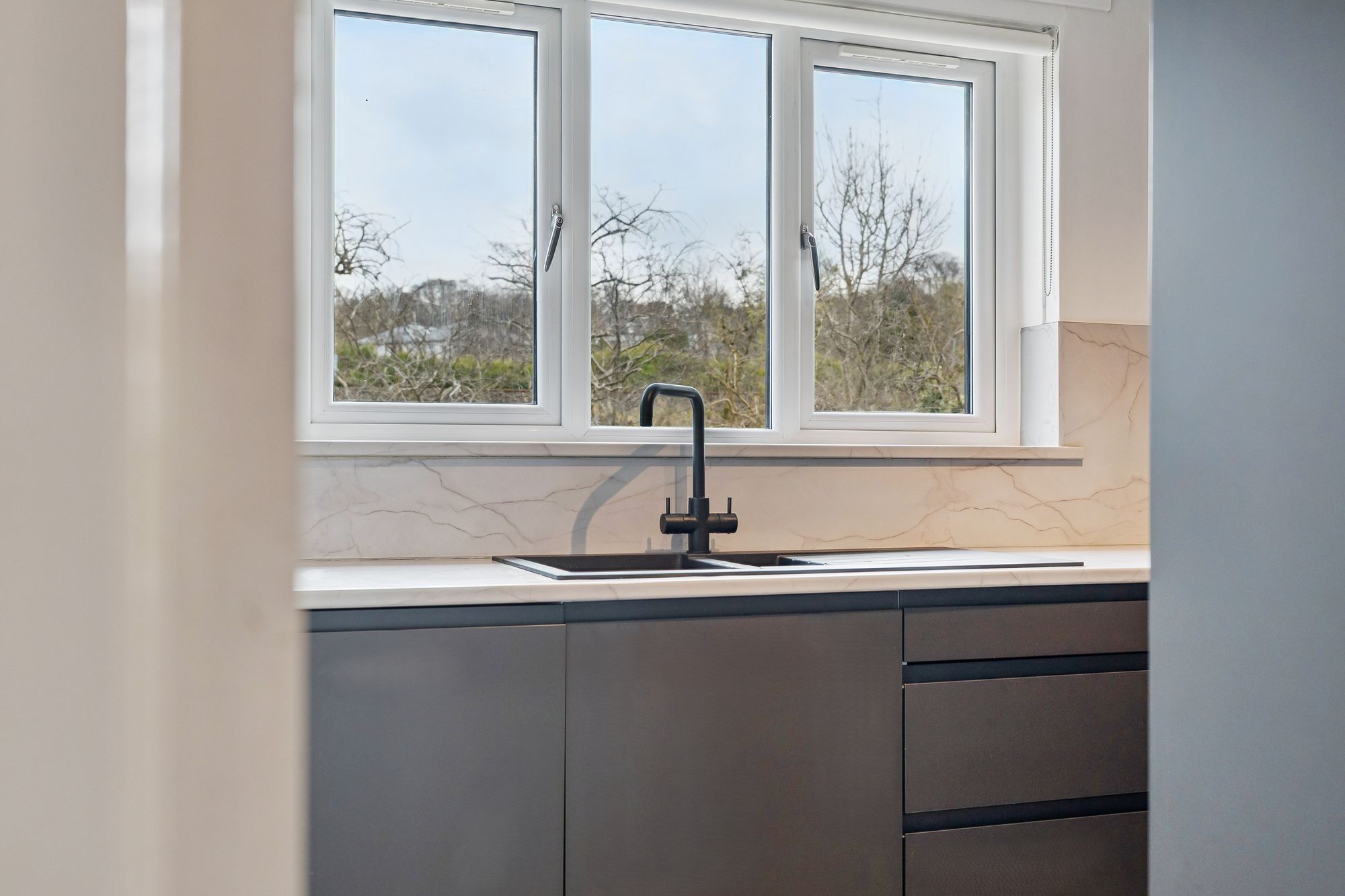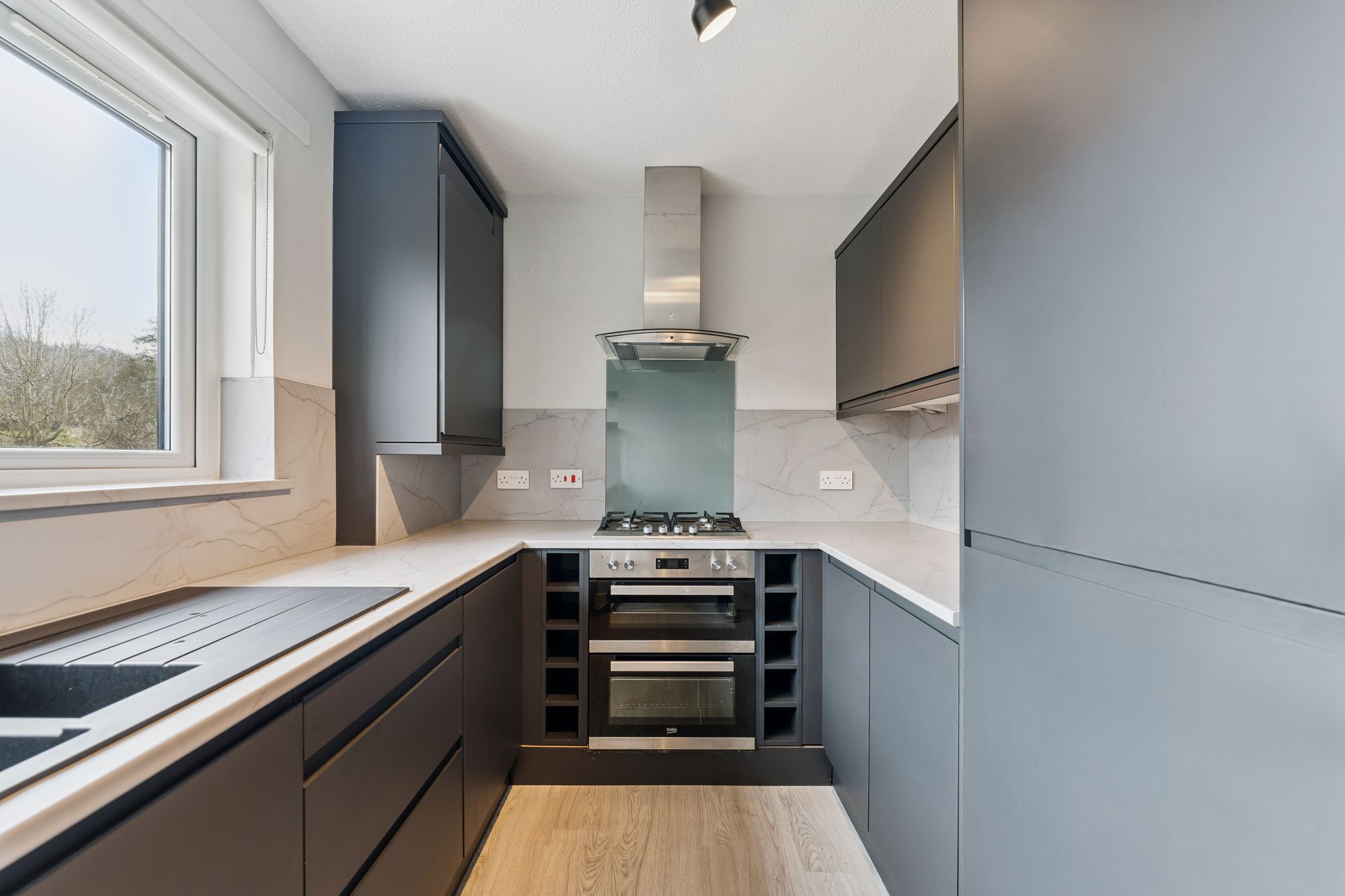 Internally, the flat is modern and well finished and has been completely upgraded by the current owner. In brief, the accommodation extends to; entrance hallway, spacious living room with ample space for dining and storage off, a modern kitchen with a full range of integrated appliances and marble effect worktop/splash back. There is a spacious double bedroom with built in mirrored wardrobes and the accommodation is completed by a fully tiled bathroom with three piece suite and shower over the bath, LED mirror and heated towel rail. To the rear of the property, there is a fantastic private garden made up of slabbed patio area and a section of lawn.