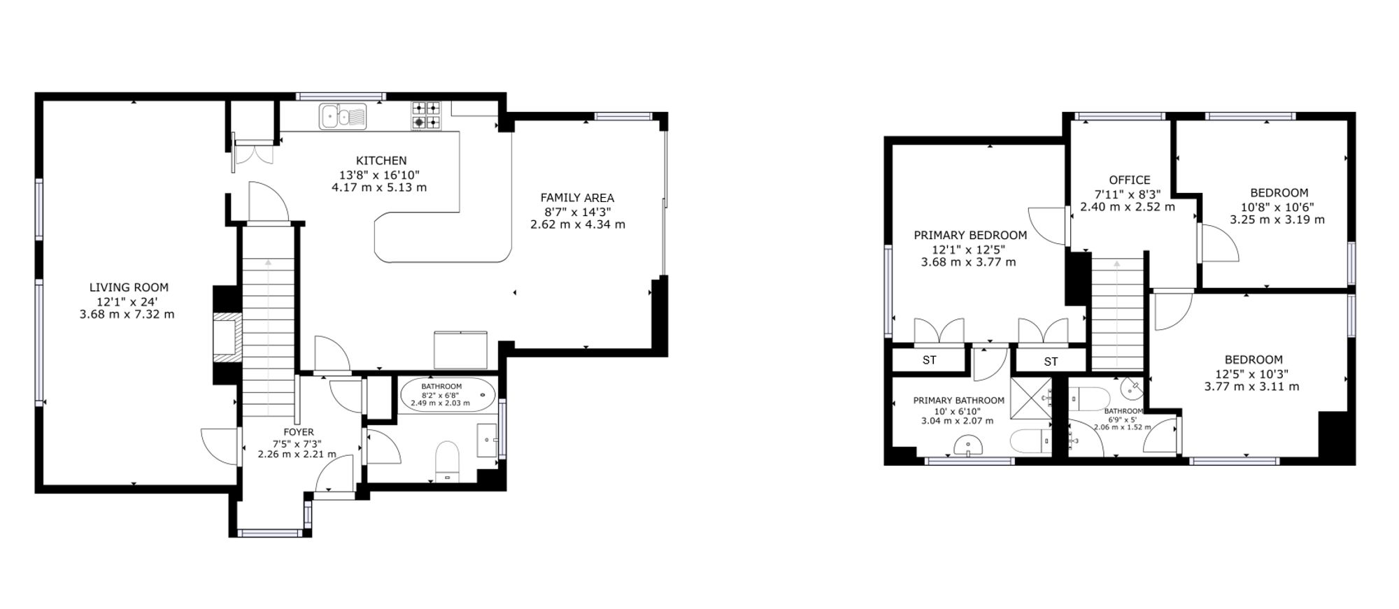 Upstairs, the first-floor landing gives access to three generously sized bedrooms. The master bedroom benefits from a modern ensuite shower room, while the guest bedroom also features its own private ensuite facilities. A third bedroom provides additional space for family, guests, or home office use.
