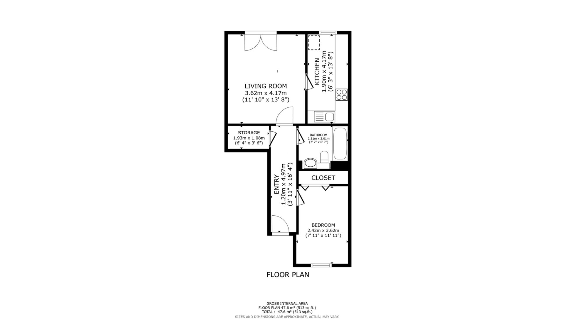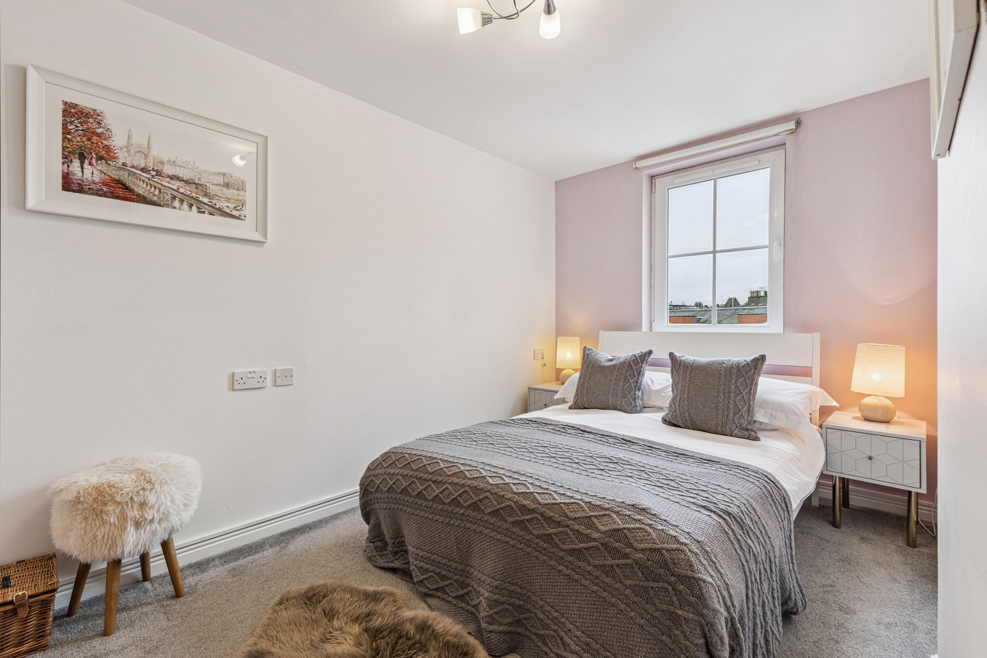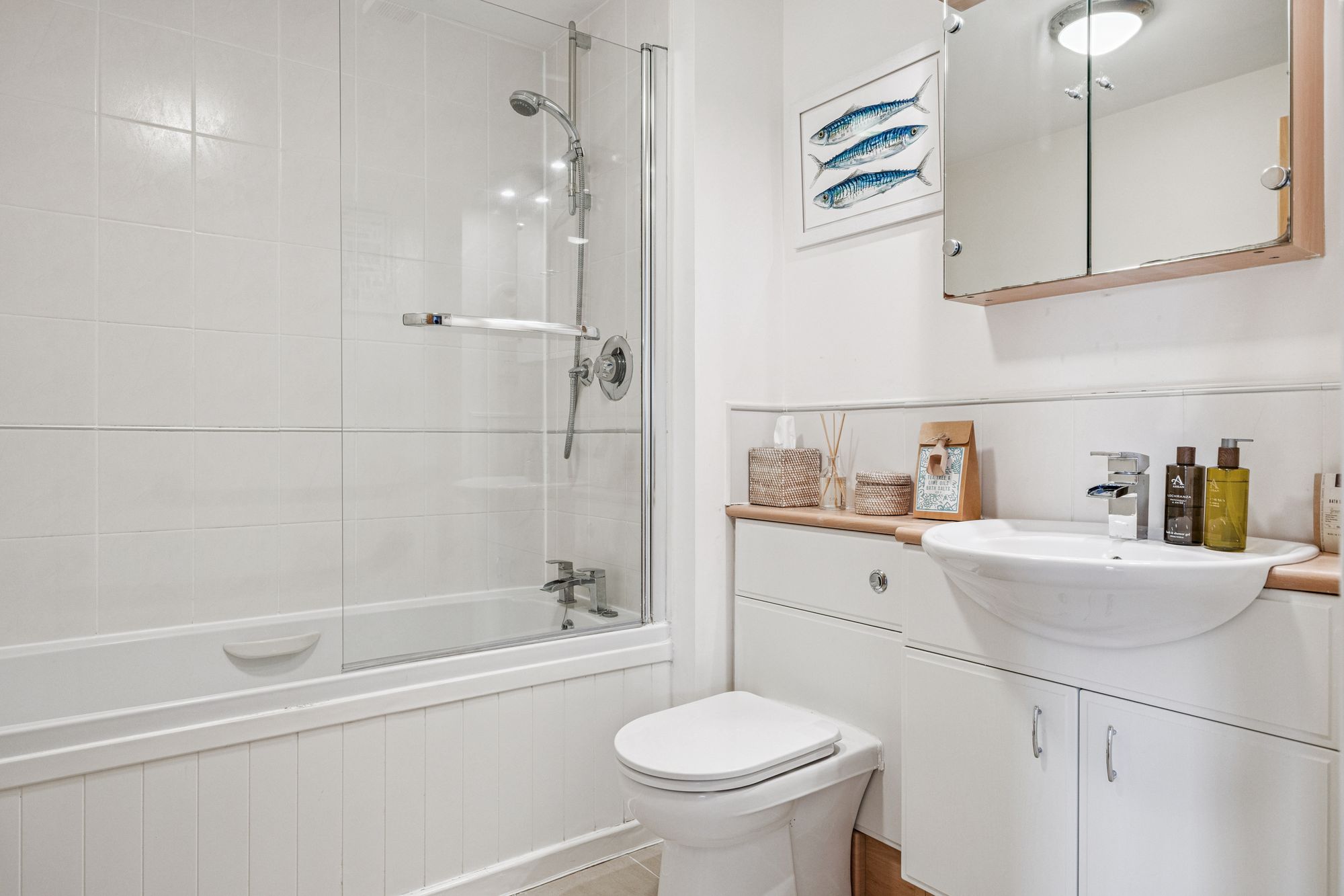 The generously sized double bedroom benefits from built-in storage and plush carpeting, providing a calm and comfortable retreat. Completing the accommodation is a well-appointed family bathroom, fitted with a shower over the bath, contemporary sanitary ware, a heated towel rail, and excellent storage. Additional practical storage is provided by a large cupboard housing the water tank and fuse board.